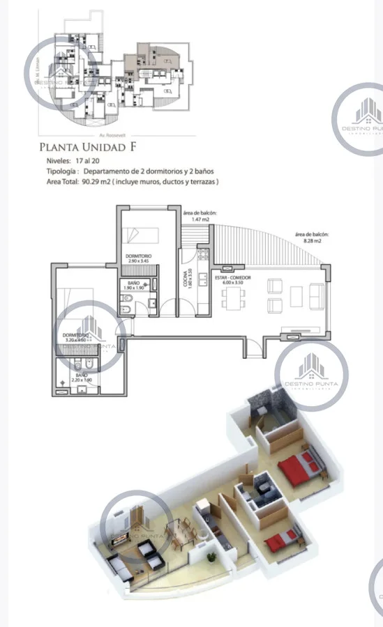 Cuenta con 2 dormitorios con 2 baños siendo el principal en suite. Living comedor con salida a cómoda terraza.