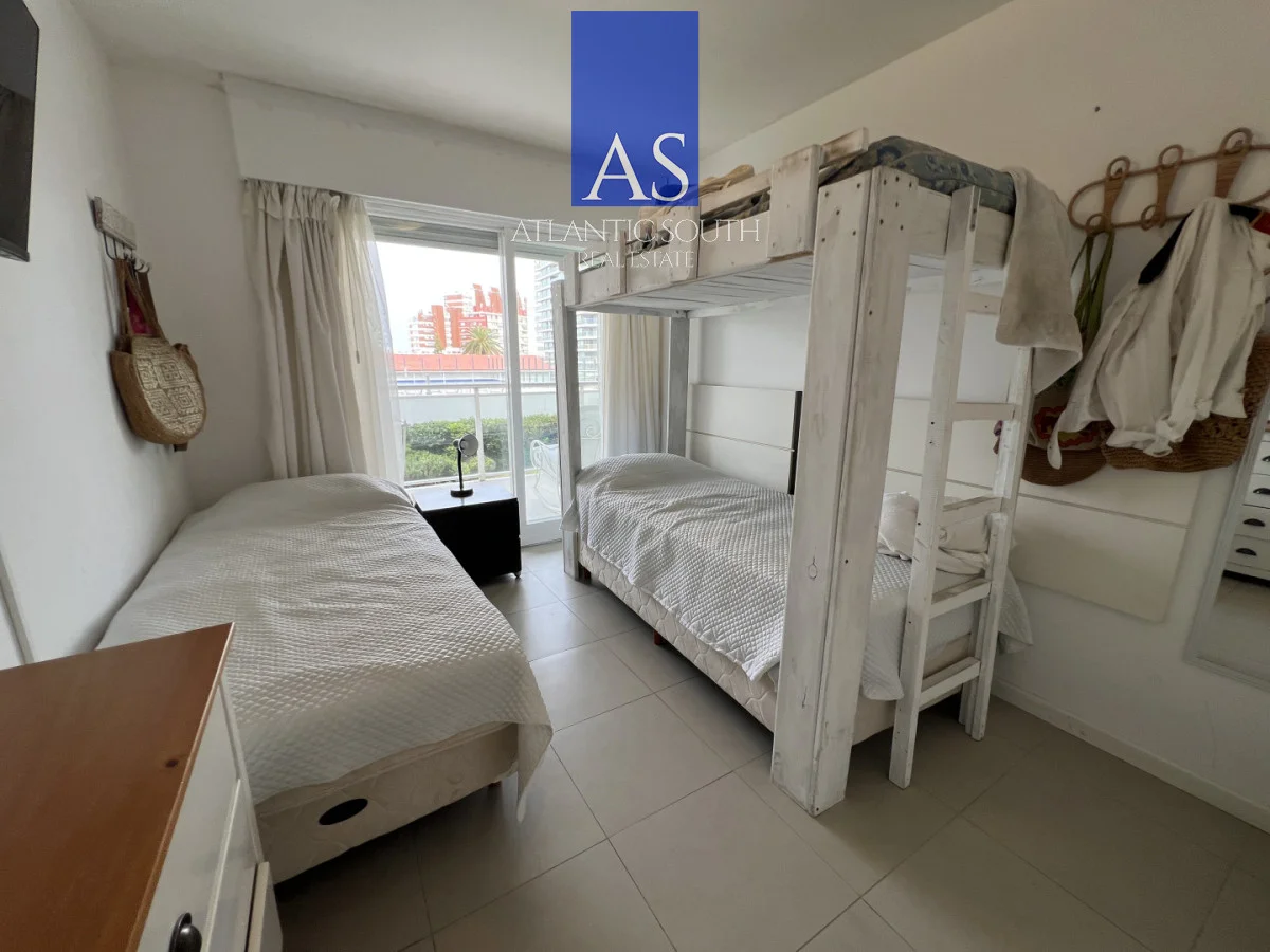 Cómodo y amplio apartamento en venta en la zona de Av. Chiverta, Punta del Este. Unidad de 2 dormitorios, 2 baños, uno en suite, con vestidor. Cocina definida. Amplio balcón con parrilla. Edificio con servicios. Garaje. Consulte para organizar visita.