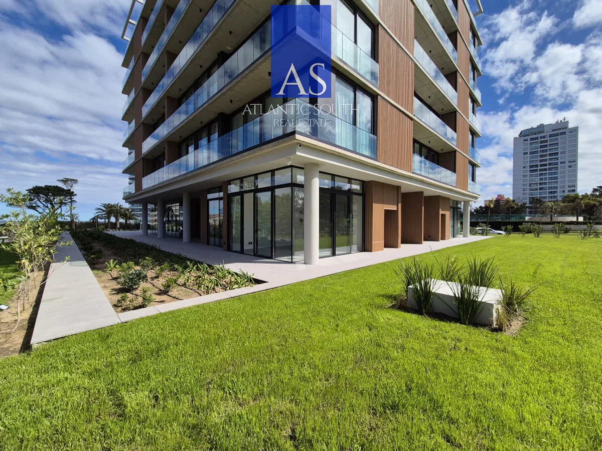 La planta se compone de 84m2 propios y 162m2 entre terraza y jardín, haciéndolo pracricamente una casa, pero con la seguridad y los servicios de un edificio de primer nivel. Se distribuye en living-comedor esquinero vidriado con una panorámica verde y amplia. Cocina integrada tipo americana decorada con buen gusto. Dormitorio principal en suite con walk-in closet. Segundo dormitorio cómodo, también con salida a la terraza.