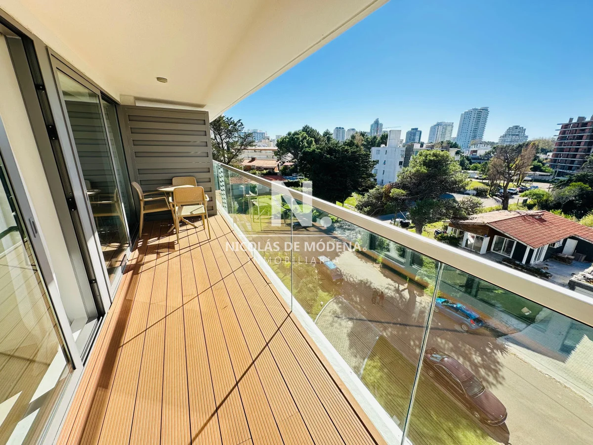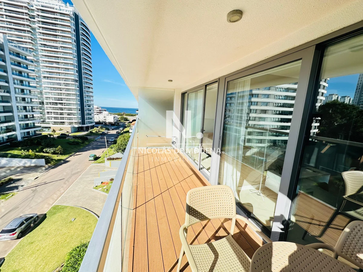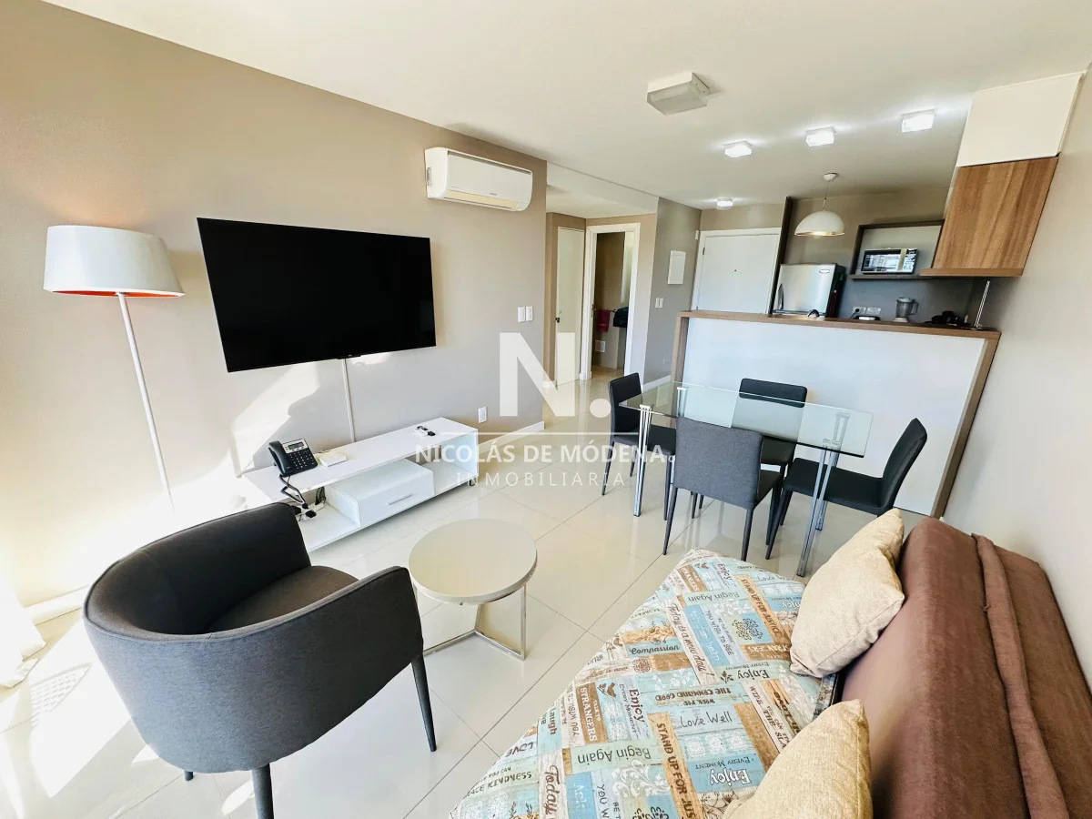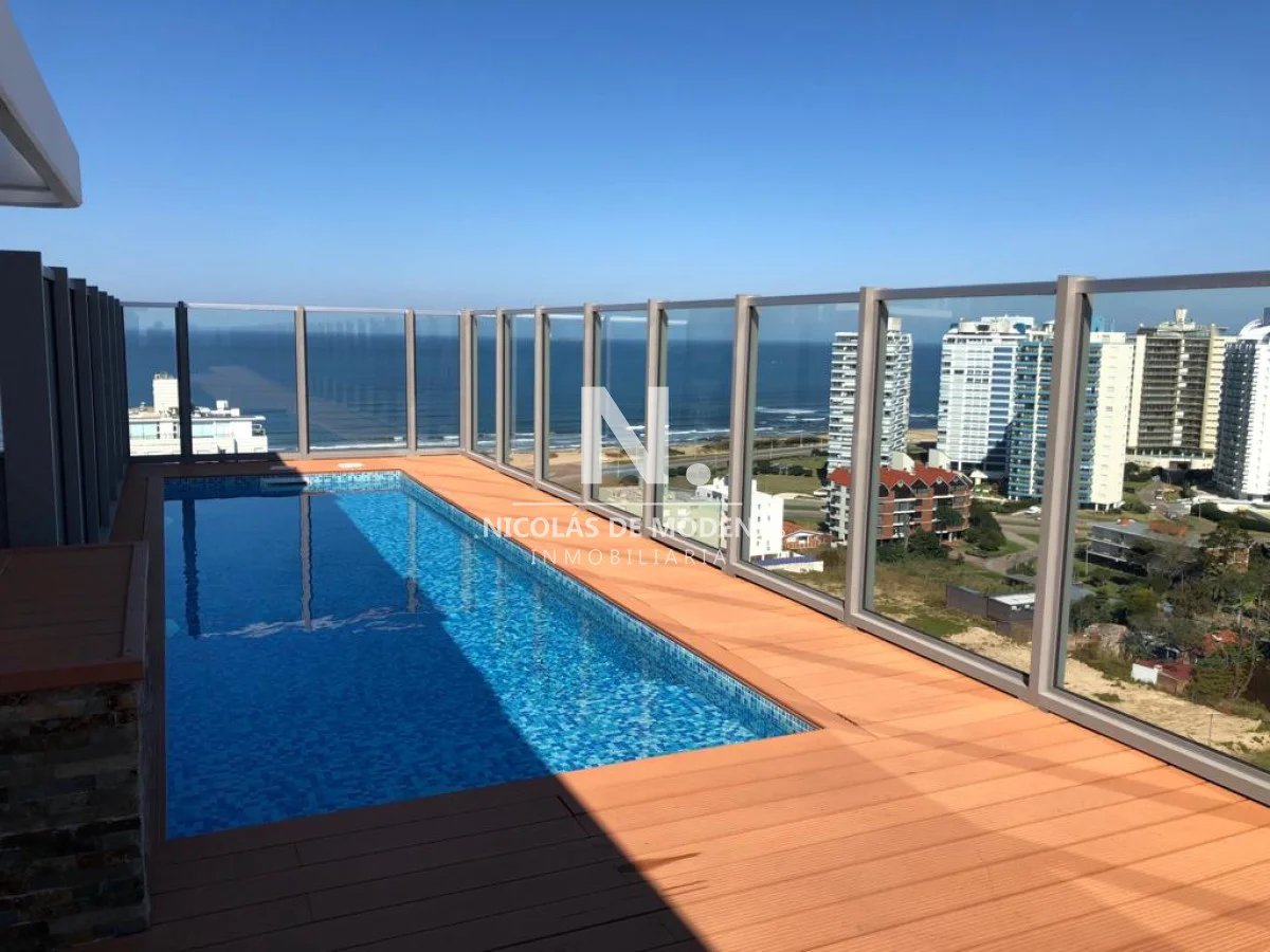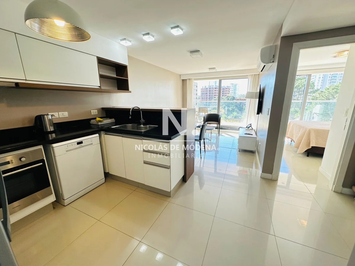 Apartamento de 1 dormitorio y medio, baño, cocina integrada, living-comedor, balcón y garage. Edificio con amenities, ubicado en la parada 6 de la Brava a 1 cuadra del mar.