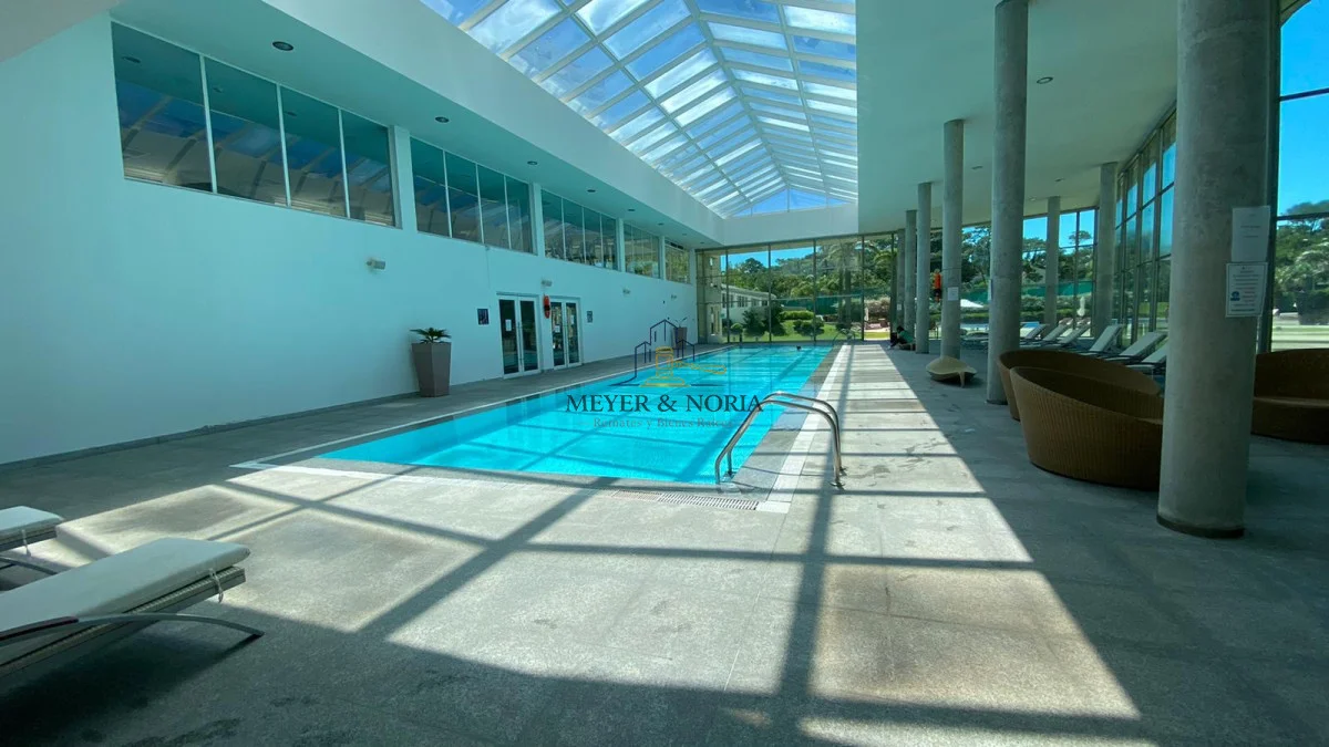 Piscina cubierta climatizada e integrada a la Torre mediante un pasaje cubierto