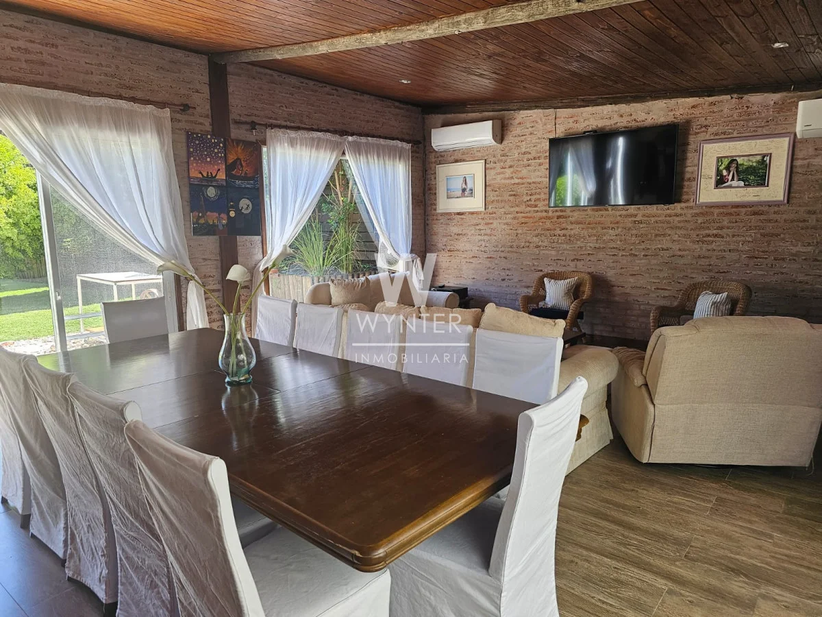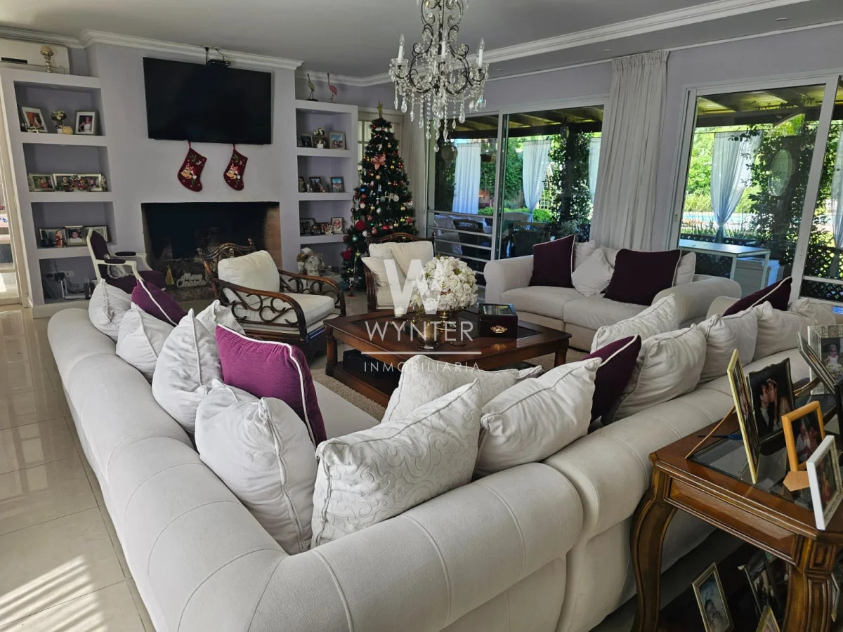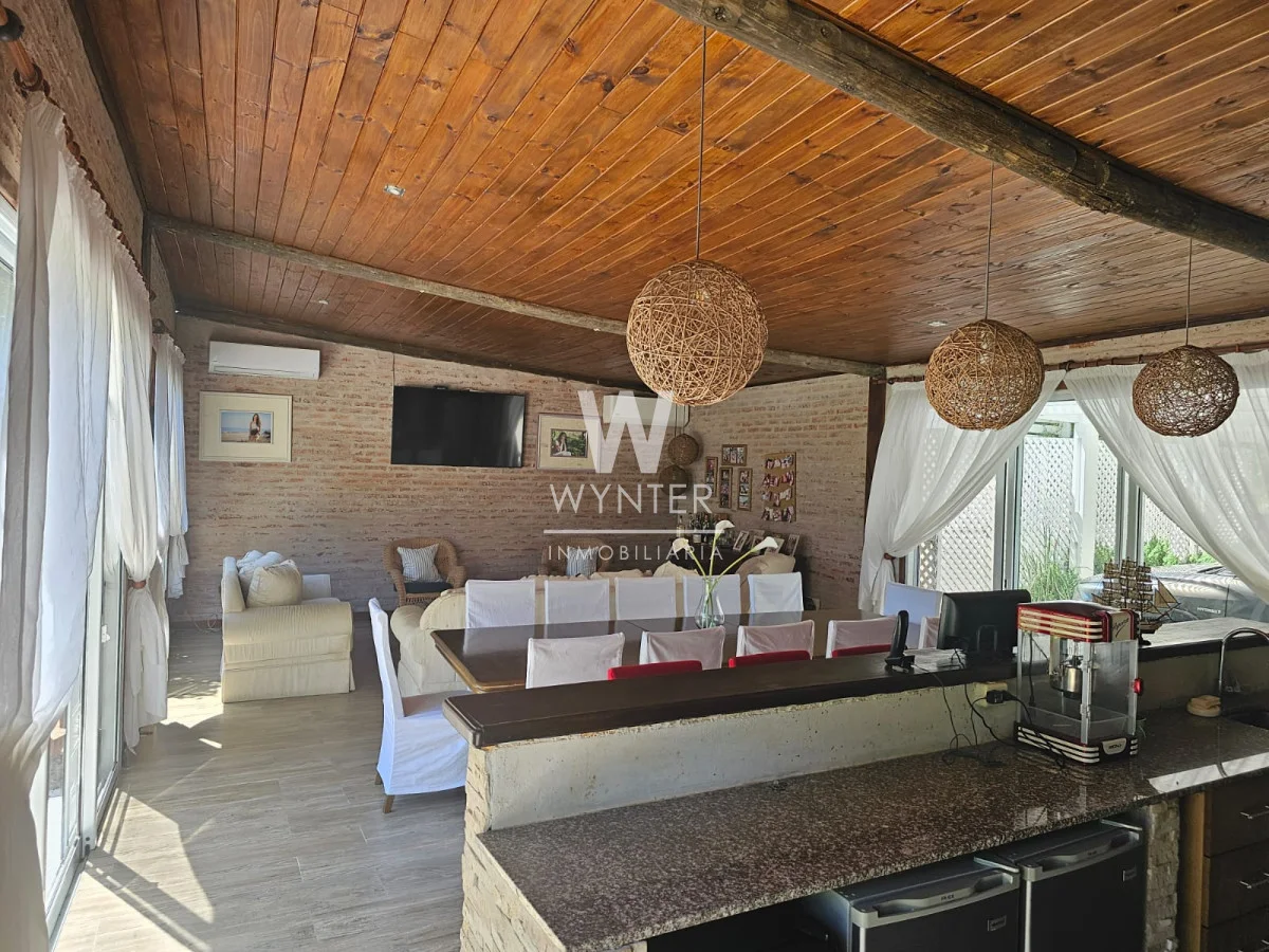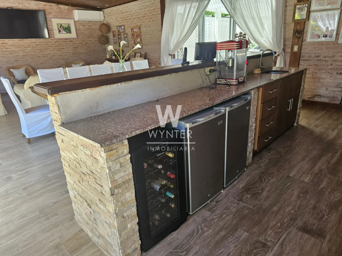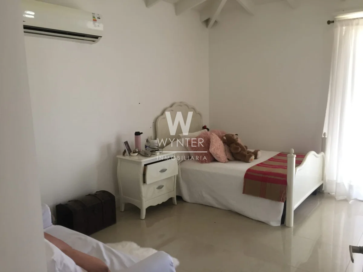 Cuenta con 5 dormitorios, 4 de ellos en suite con vestidores todos, 5 baños, uno con bañera doble , amplio living de 80 m2 con estufa a leña, comedor, sala de juegos, amplia cocina con isla, barbacoa de 100 m2 más lavadero y dormitorio de servicio además de estacionamiento para 4 autos. Todas las habitaciones cuentan con aire acondicionado frio-calor. Sistema de audio en pérgola y piscina.