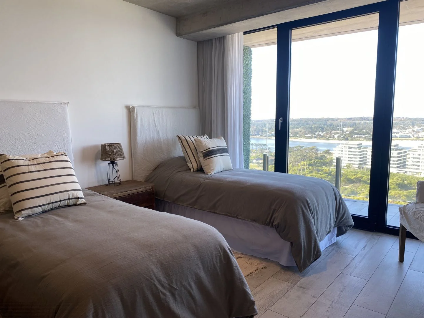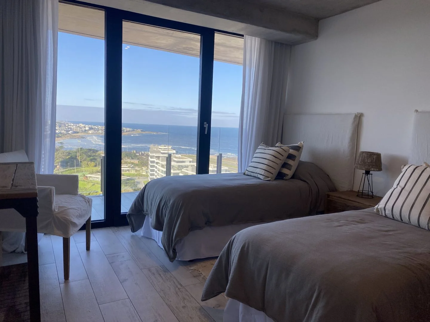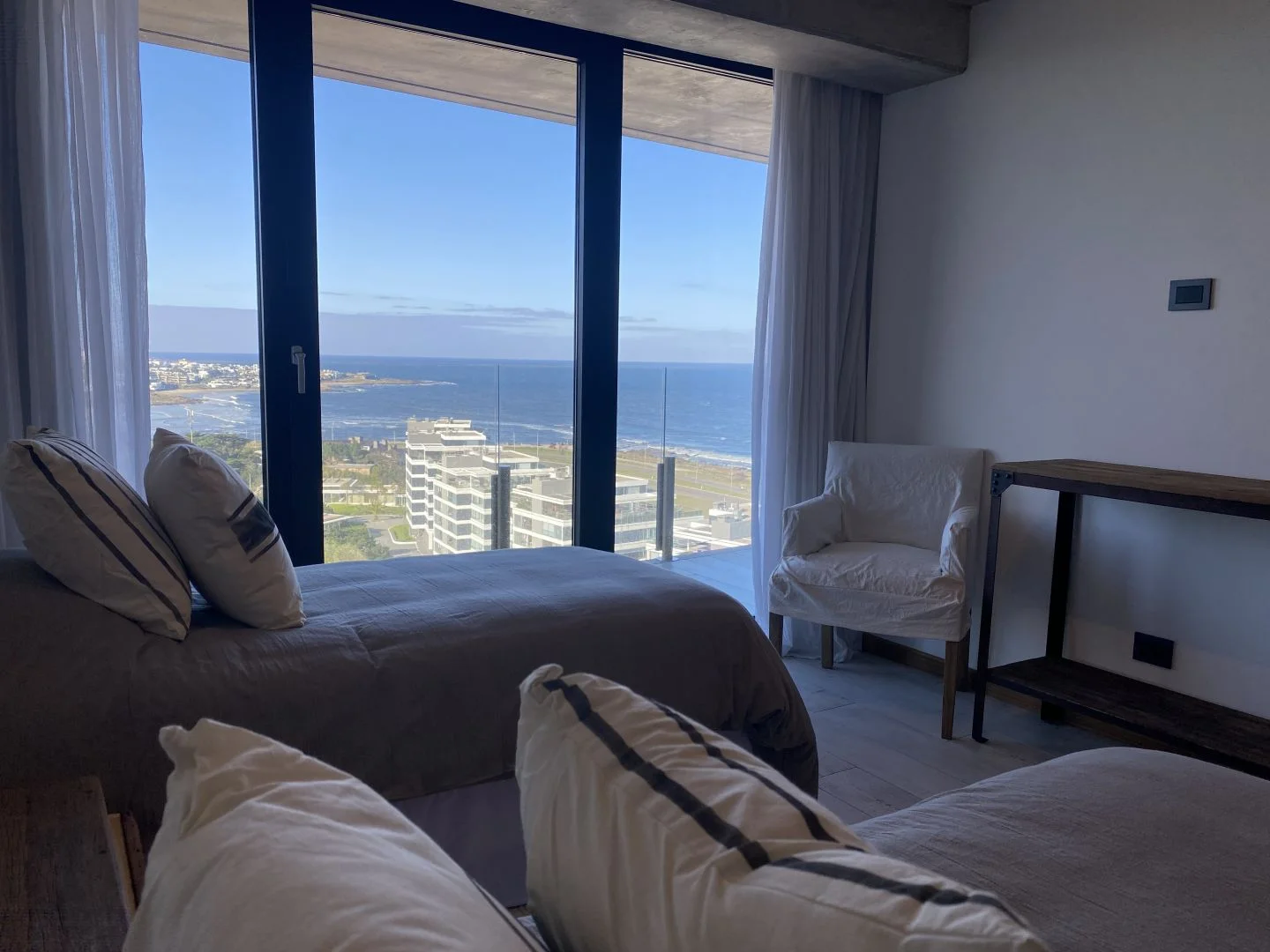 El dormitorio principal cuenta con un amplio vestidor y ofrece una vista imponente de Playa Brava, mientras que los otros dos dormitorios gozan de vistas directas a La Barra, creando un panorama de ensueño.