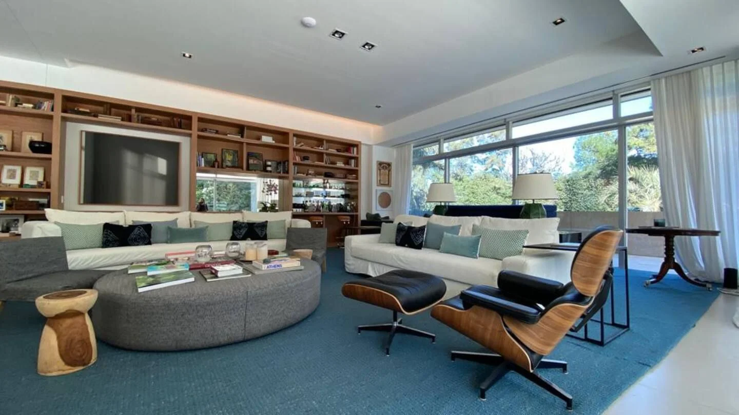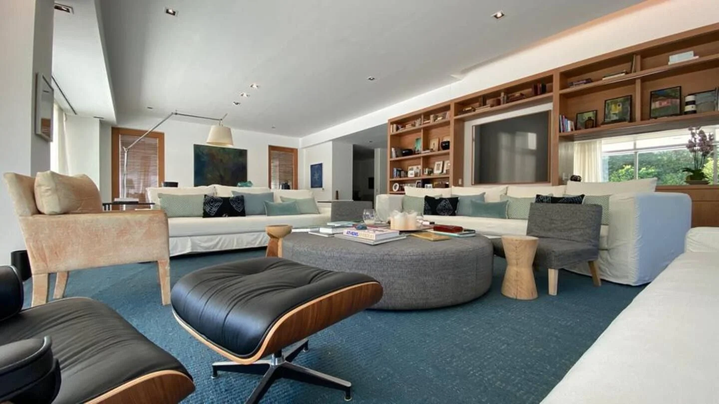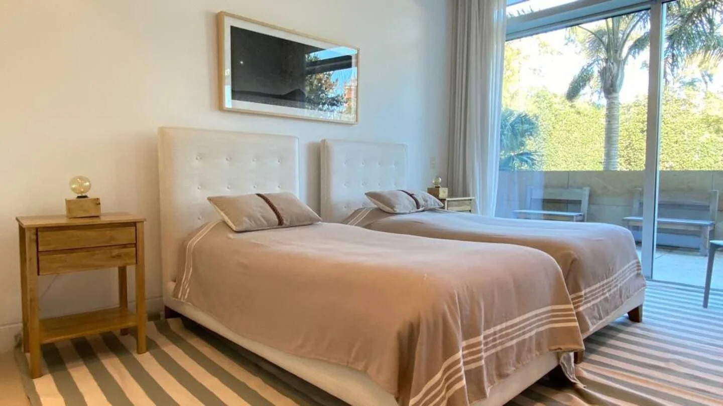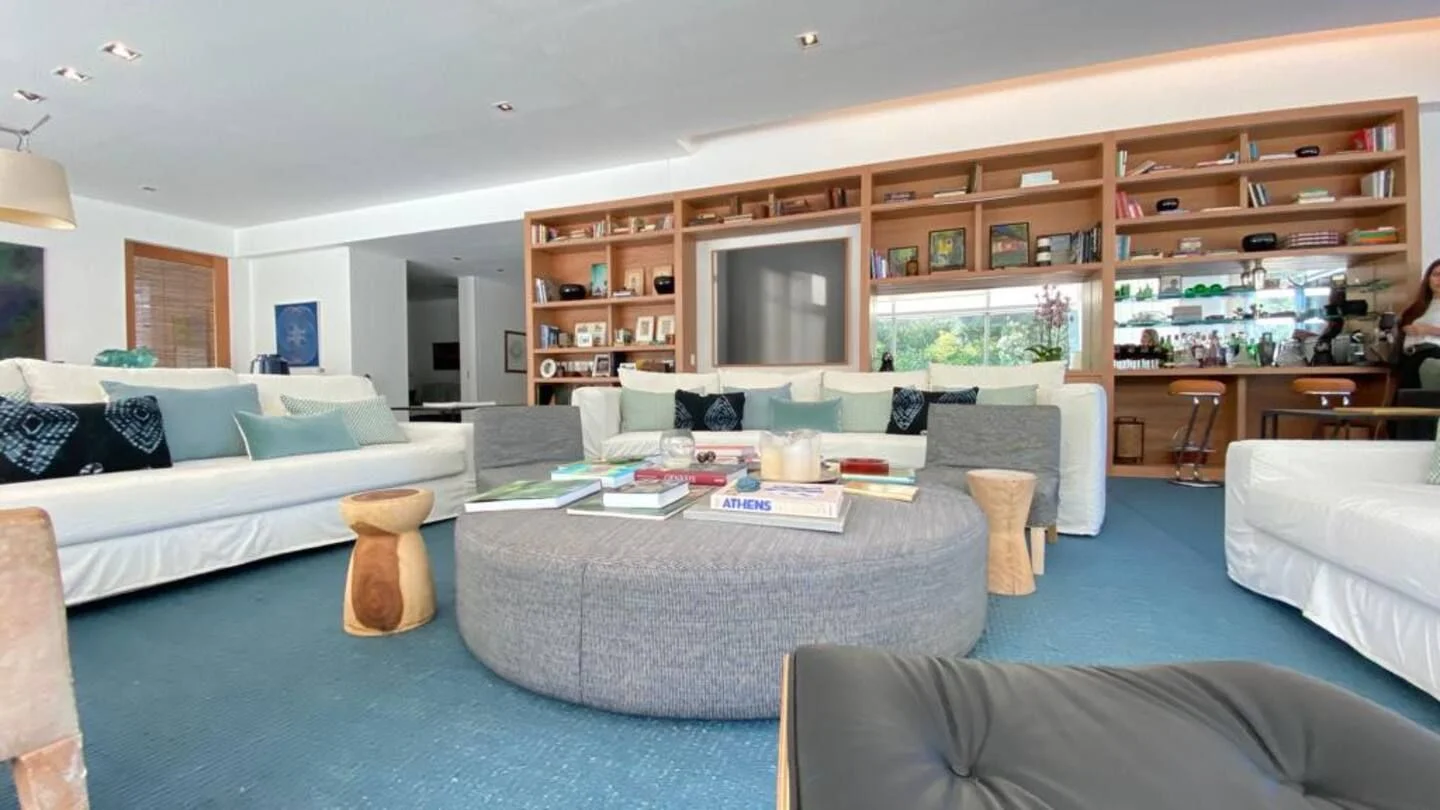 Amplia sala de estar, sala de juegos, cocina totalmente equipada. Tres suites, dos habitaciones que comparten un baño y una pequeña casa de huéspedes con sala de estar, habitación y baño. El complejo cuenta con servicio de mucama todos los días, spa, servicio de playa, piscina climatizada.