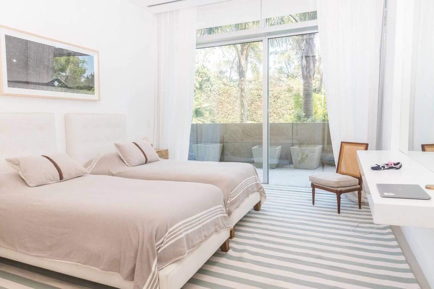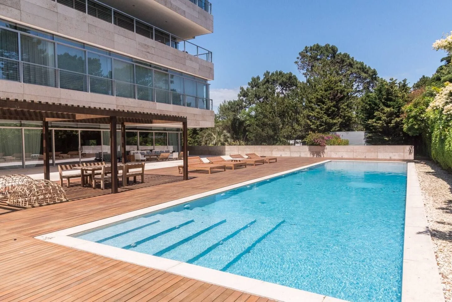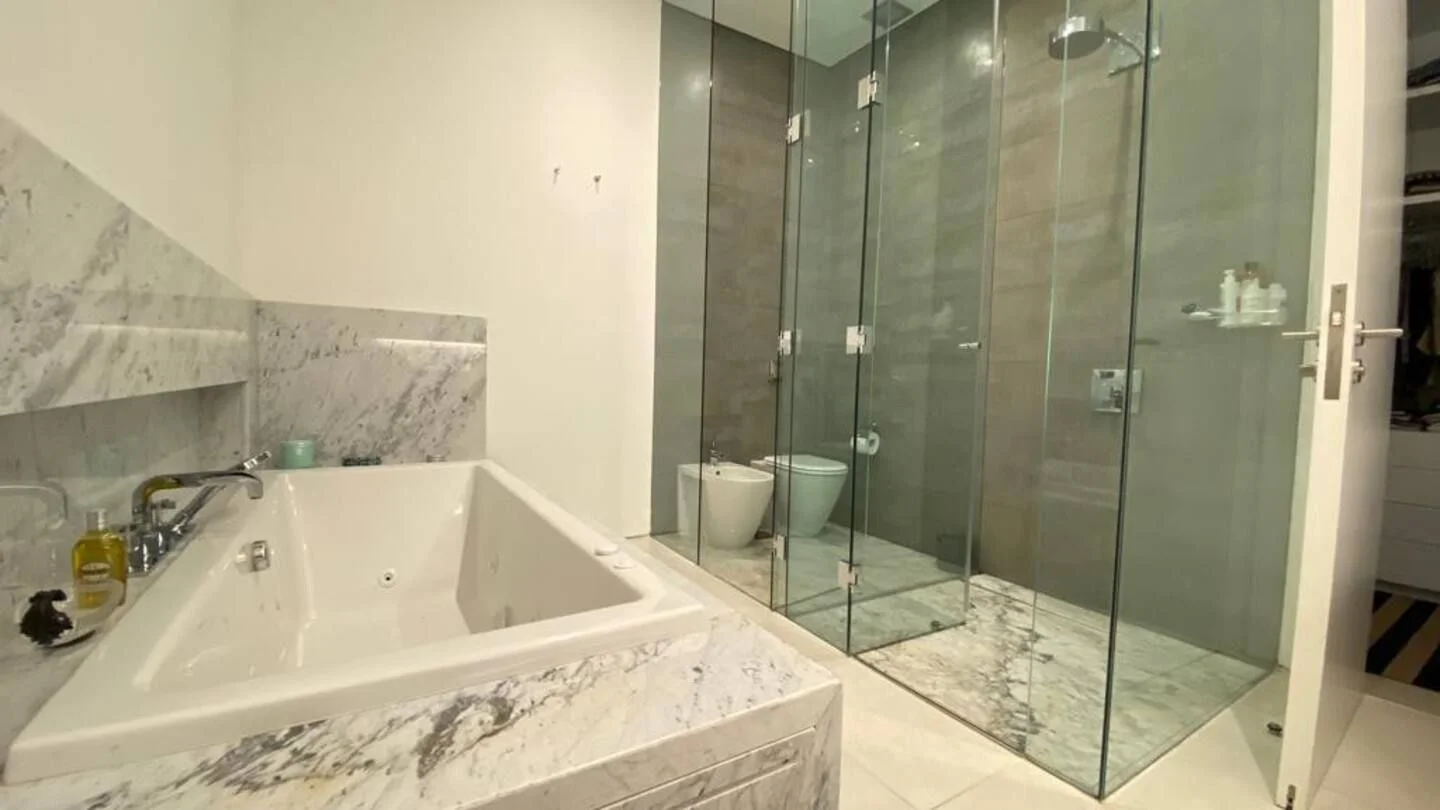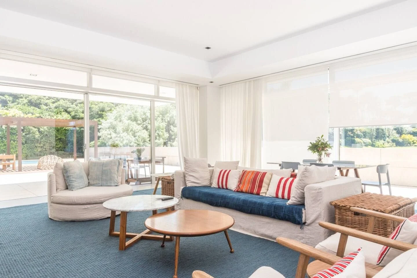 Amplia sala de estar, sala de juegos, cocina totalmente equipada. Tres suites, dos habitaciones que comparten un baño y una pequeña casa de huéspedes con sala de estar, habitación y baño. El complejo cuenta con servicio de mucama todos los días, spa, servicio de playa, piscina climatizada.