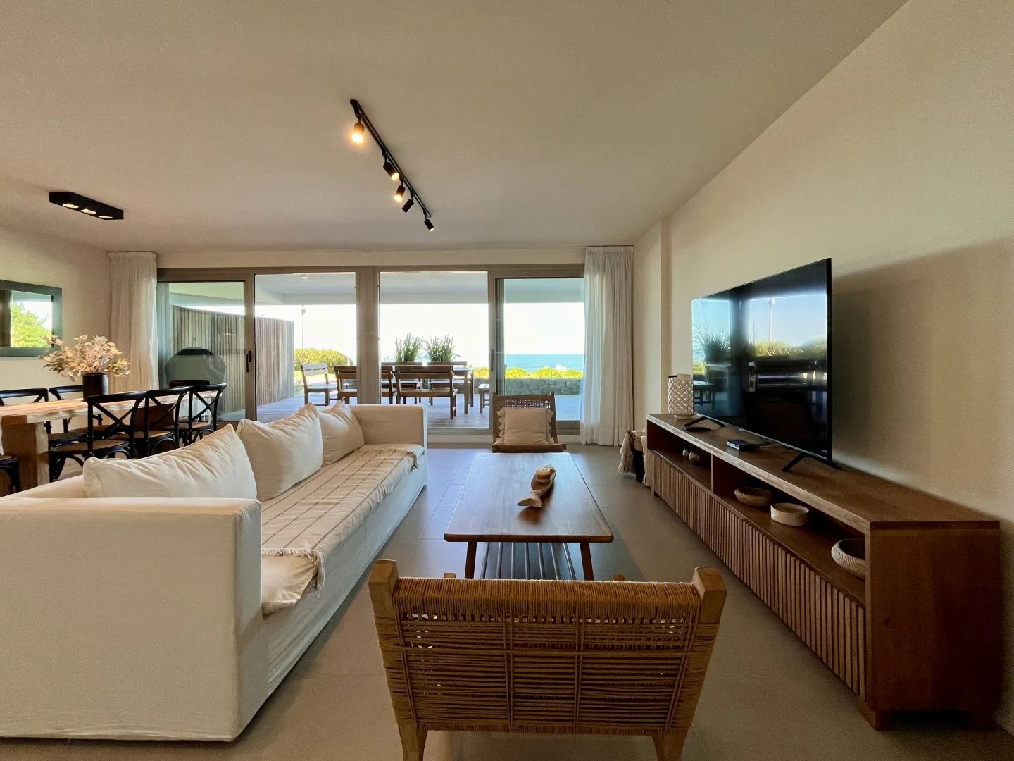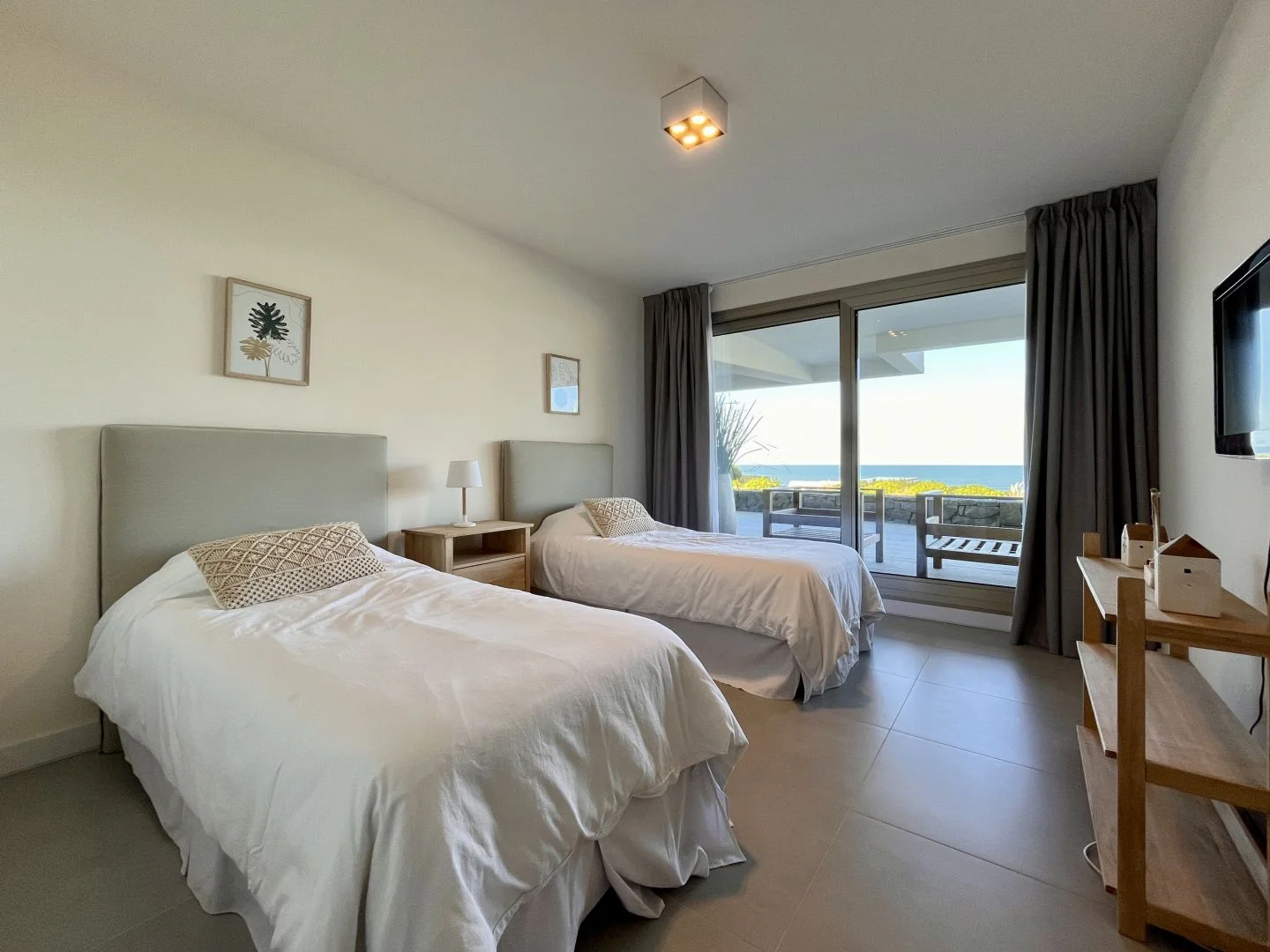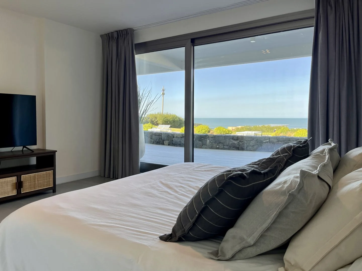 Este inmueble cuenta con tres amplios dormitorios en suite, cada uno con acceso a una vasta terraza que ofrece una vista panorámica del océano.