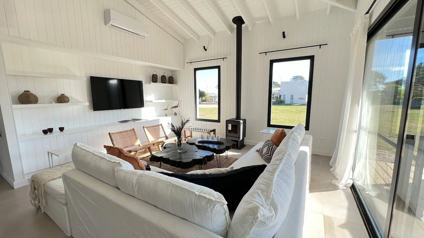 Calefacción piso radiante para el invierno y una estufa a leña.