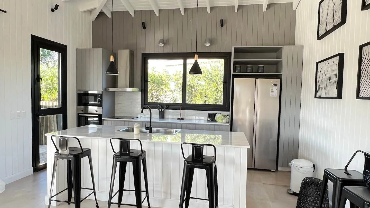 La casa cuenta con 4 suites. Living, comedor con cocina integrada y bien equipada con todos los electrodomésticos básicos y necesarios. Cuanta con lavavajillas, cafetera Nespresso. Tiene un Toilette.