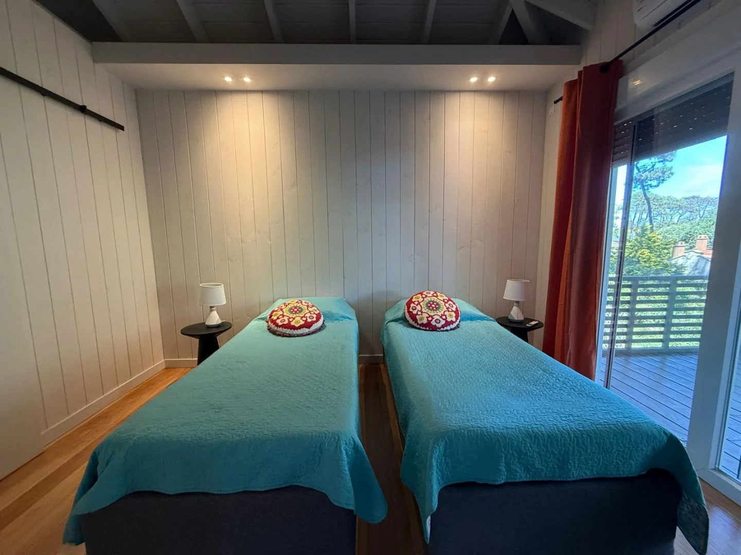 Dos dormitorios en suite, ambos con detalles de calidad y vistas al jardín.