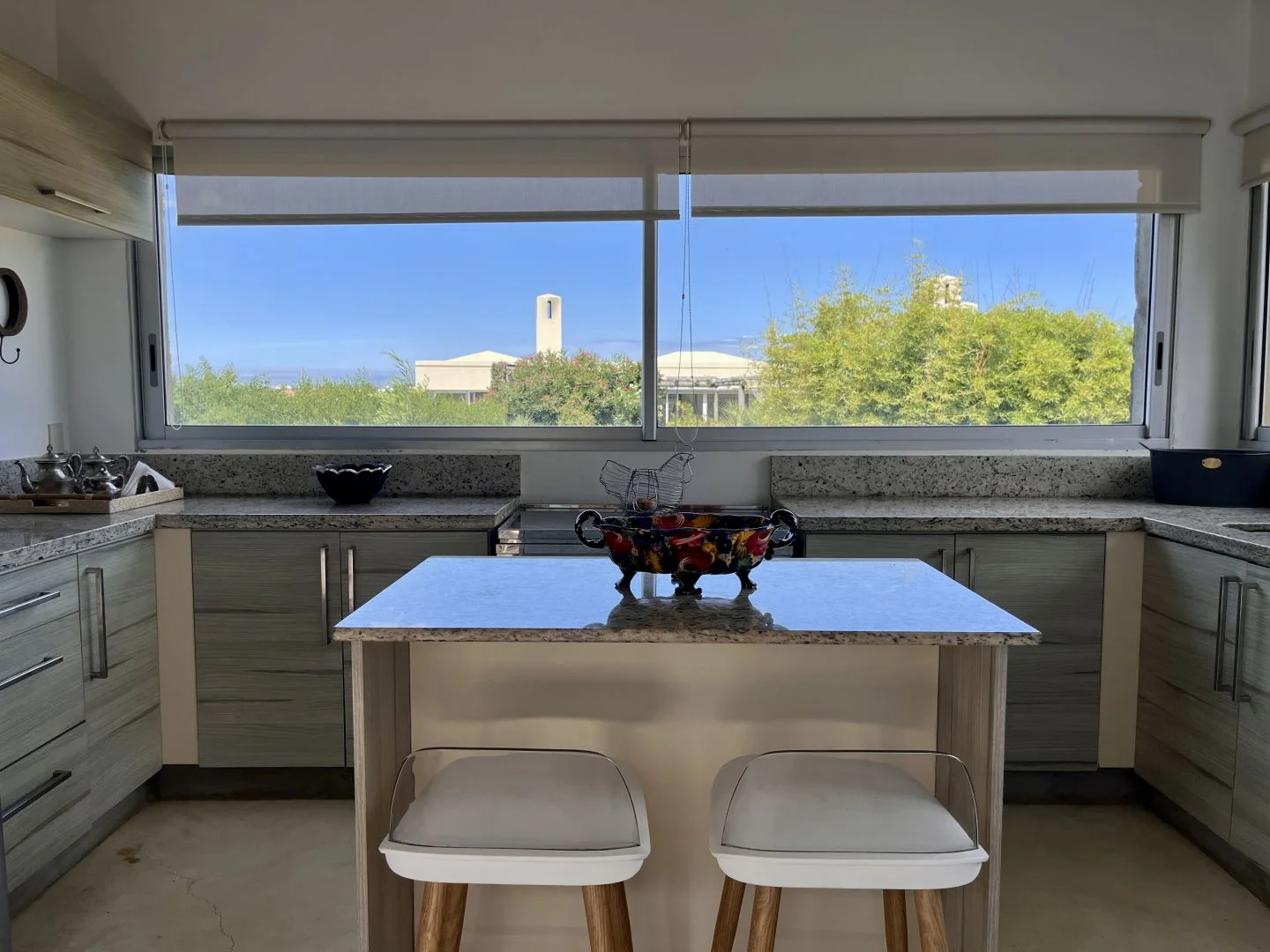 La casa cuenta con cinco dormitorios, incluyendo una espaciosa suite principal con vistas al jardín y al mar, y una dependencia de servicio para mayor comodidad. El diseño interior es luminoso con ventanas al norte y sur, y aireado, con amplios espacios abiertos que fluyen sin esfuerzo entre la sala de estar, el comedor y la cocina, creando un ambiente acogedor y funcional para la vida en familia y el entretenimiento.