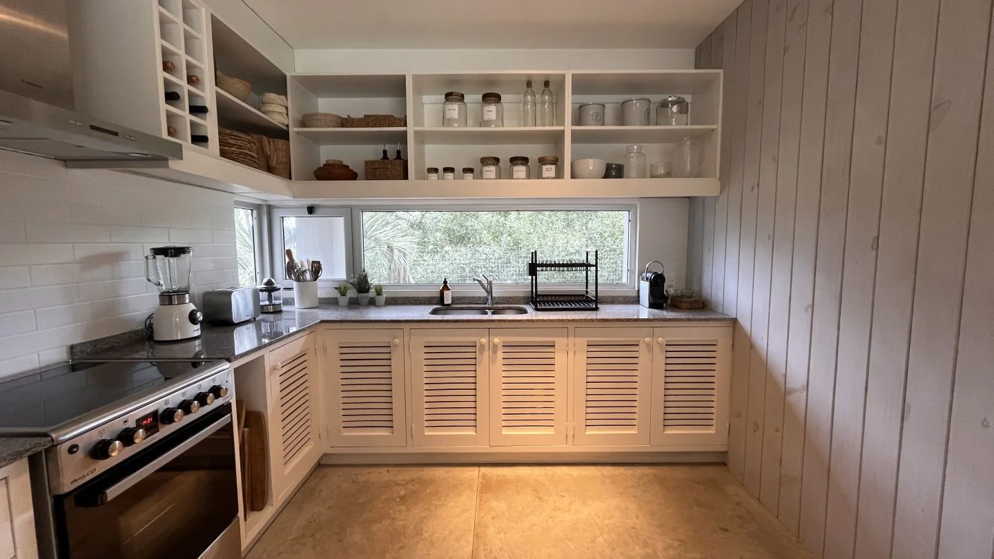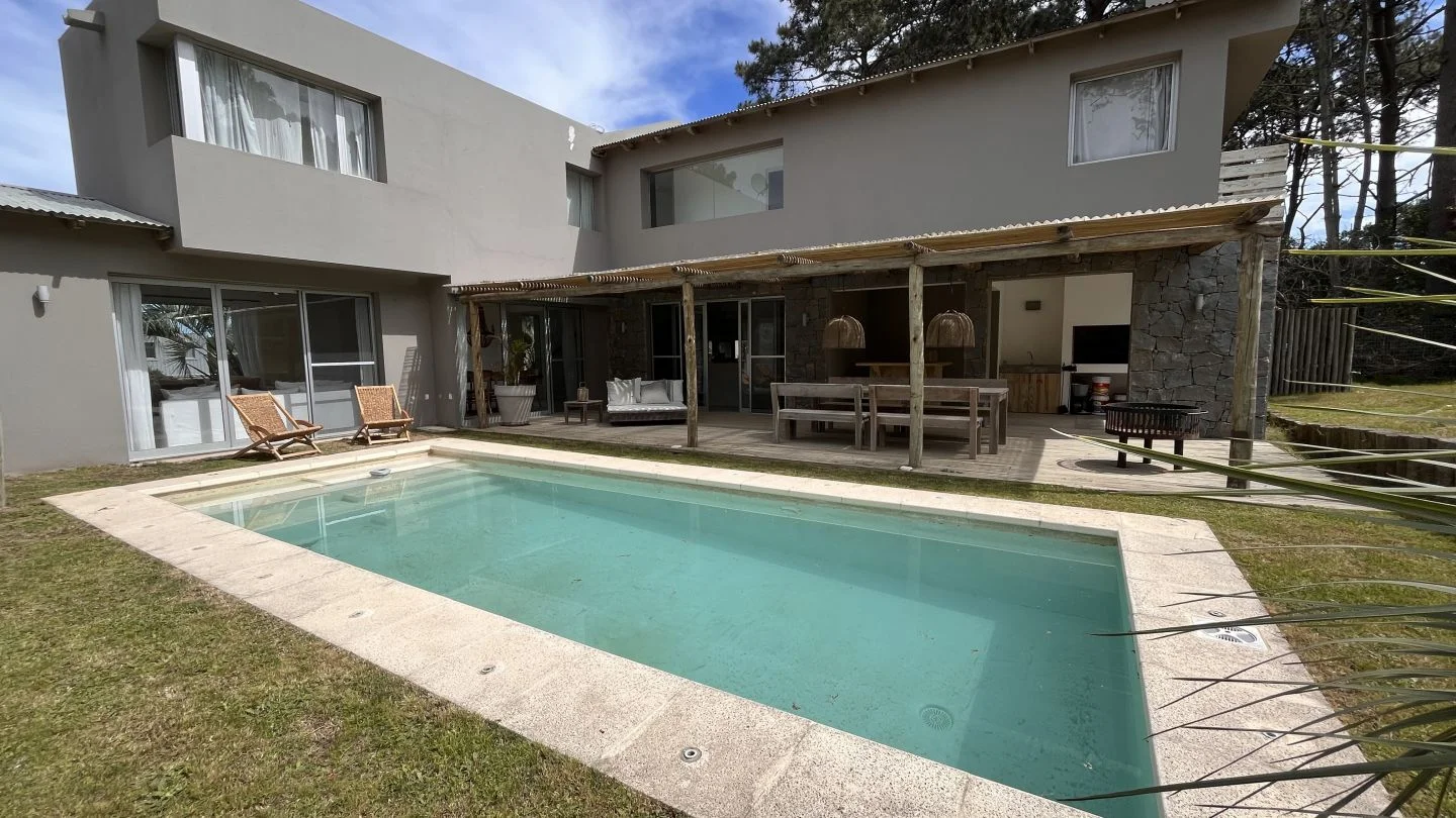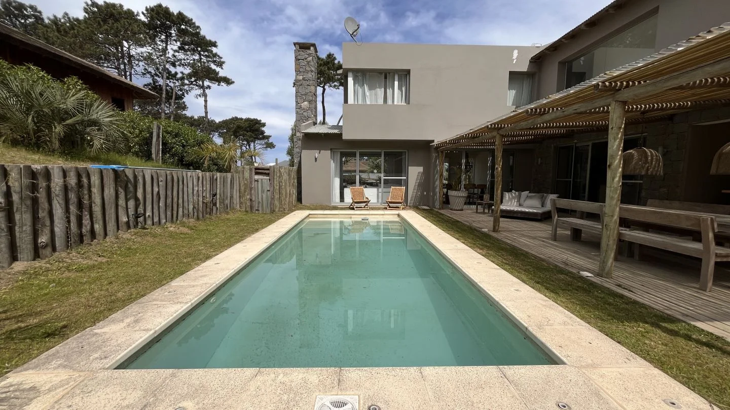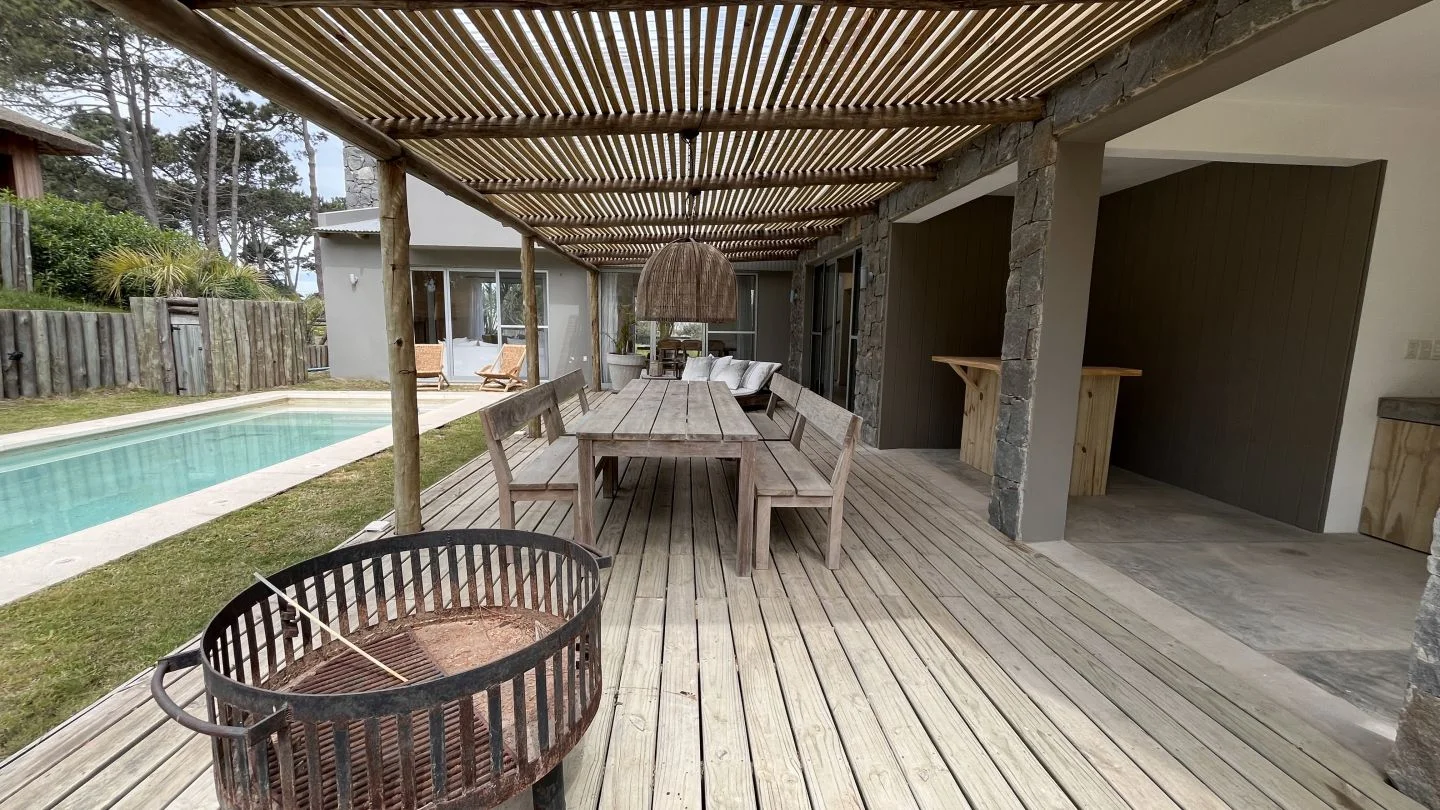 Distribuida en dos plantas, la propiedad cuenta con 3 dormitorios en suite, además de una práctica dependencia. En la primera planta, disfrutarás de un acogedor living comedor con estufa a leña, ideal para relajarte después de un día en la playa. La cocina, completamente definida, se abre a un amplio deck con pérgola y parrillero, perfecto para organizar asados y disfrutar de la naturaleza. El jardín, que incluye una hermosa piscina, es el espacio ideal para disfrutar del sol y refrescarte en los días cálidos.