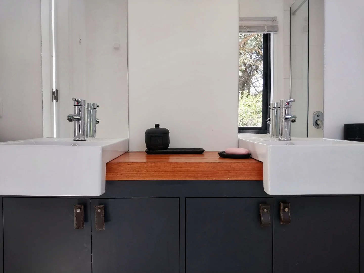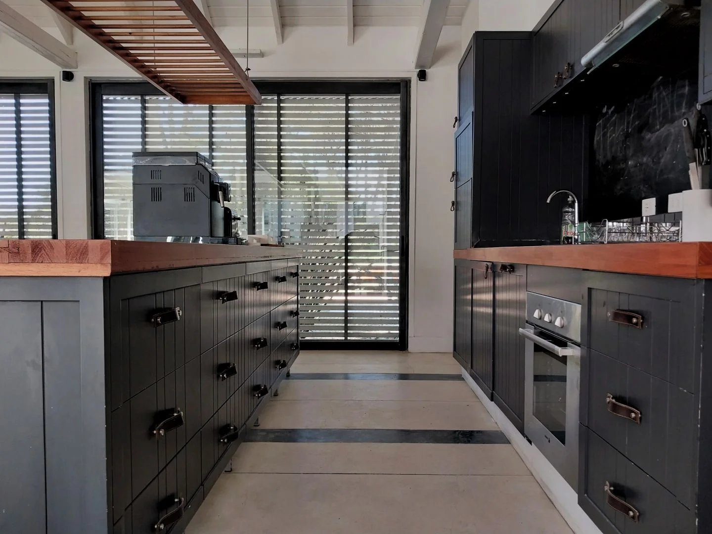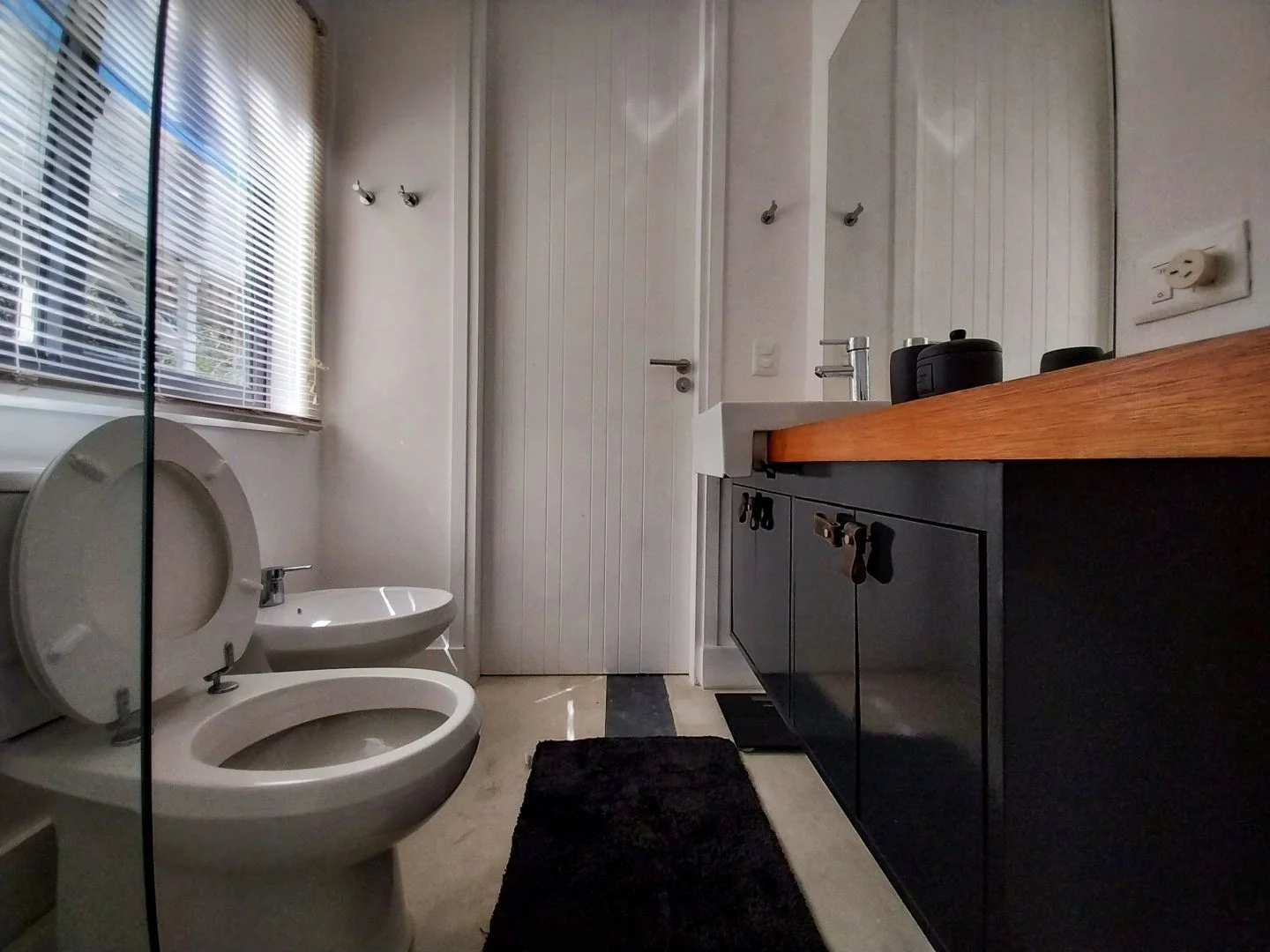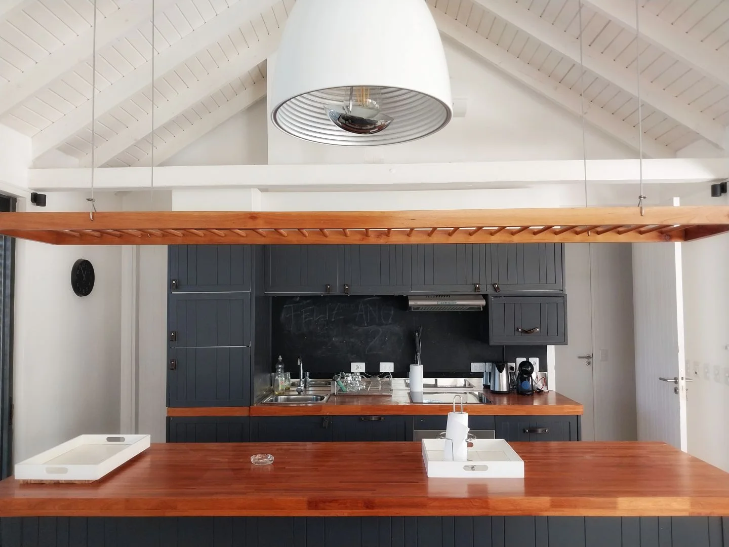 A través de las galerías, donde encontramos algunos livings exteriores, fogones, vamos al bloque de atrás donde está la sala de TV, las cuatro suites, una de ellas con vestidor, y dos kitchenette una en cada planta..