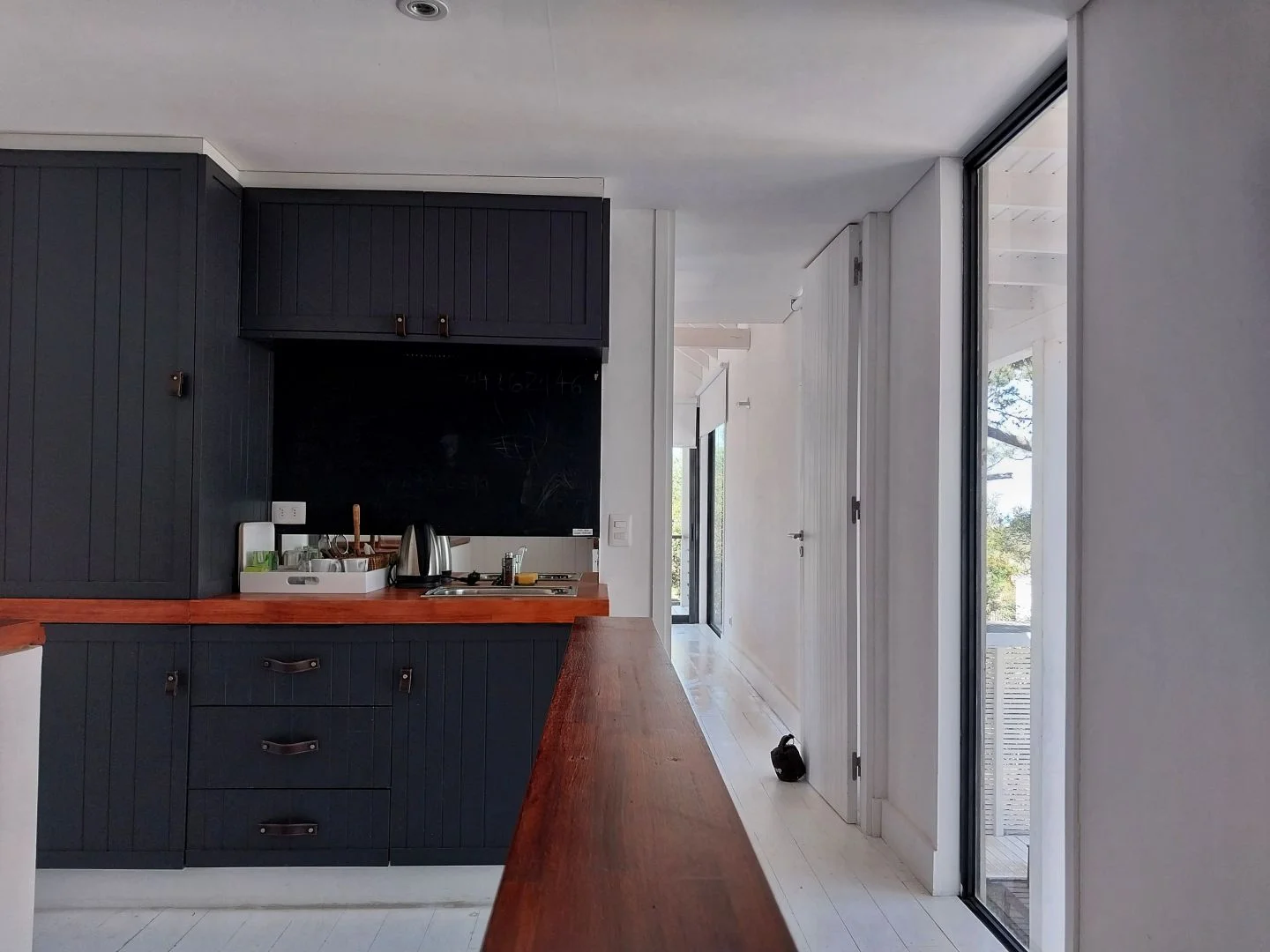 Desarrollada por el arquitecto Diego Montero. La casa se constituye en dos bloques, el del frente, tiene un living comedor y cocina con ventanales, pero con privacidad, un baño al lado de la dependencia de servicio con cuchetas, toilette y el lavadero.