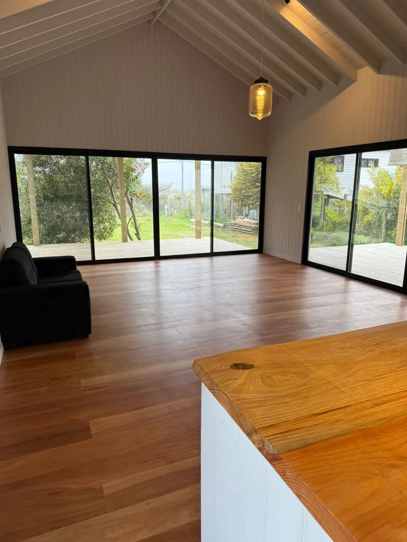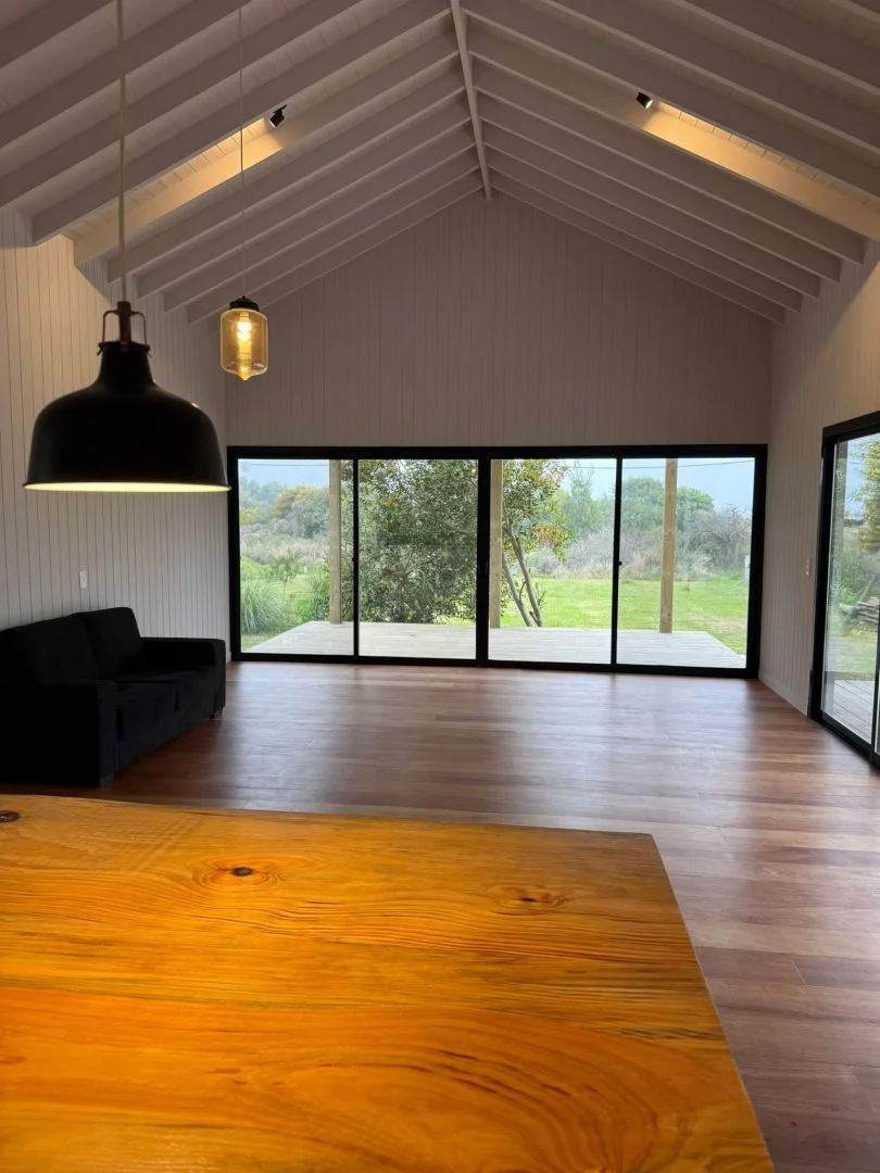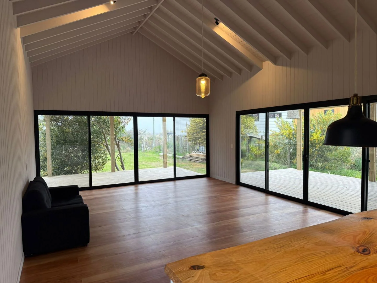 El living comedor es amplio y se integra perfectamente con el exterior, generando una sensación de continuidad entre el interior de la casa y el jardín. El diseño arquitectónico aprovecha al máximo la luz natural y la orientación del terreno, logrando espacios cálidos durante todo el año.