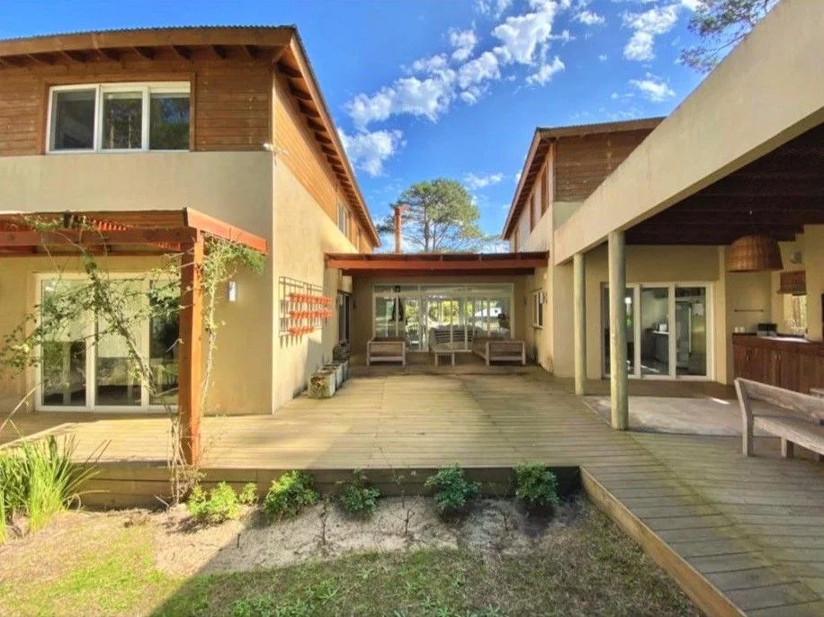 Venta de Casa 5 DORMITORIOS en PINAR DEL FARO, JOSE IGNACIO. Muy linda casa en barrio privado, espacios amplios, con buena capacidad, Pensada para familias numerosas, los dormitorios tienen muy buena independencia entre si . Cuenta con lavadero, dependencia de servicio con baño y cochera cerrada. Los ambientes son muy luminosos y cálidos. En el exterior tiene un parrillero techado amplio con comedor exterior y deck con living exterior.