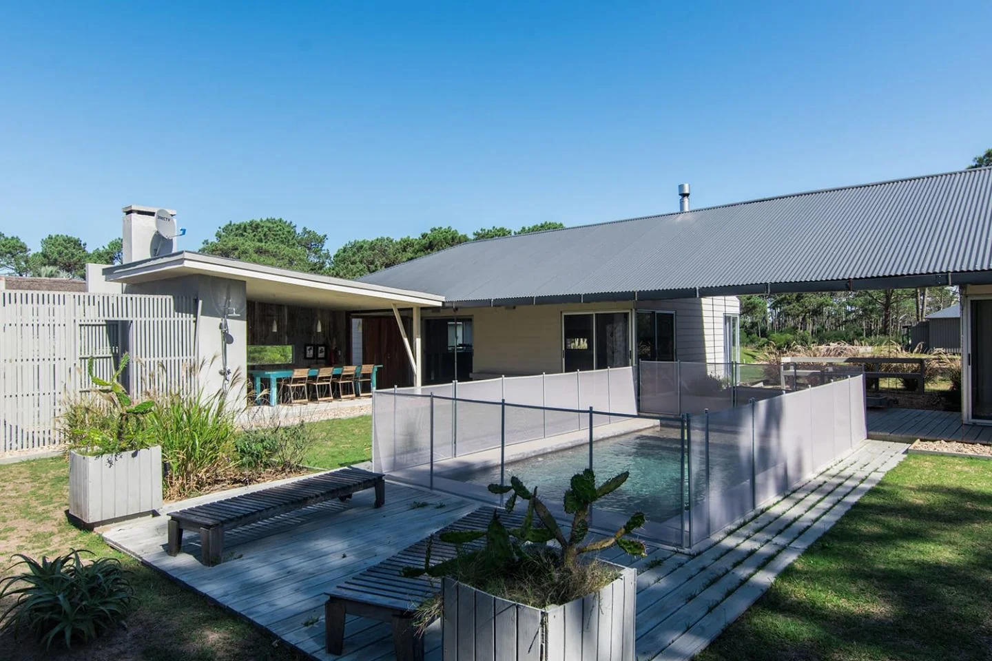 Espectacular casa de 4 dormitorios, 2 en suite , amplio estar -comedor con continuidad al área del parrillero y la piscina. 3 baños y un toilette.