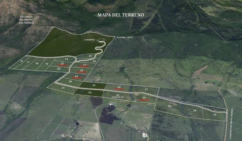 Cierras individuales, escrituración directa. Se distribuyen en el Valle y en la primera línea de Sierra. Ubicado en el corazón de la Cierra de las Animas. Opción de chacra con casa ya construida a estrenar.