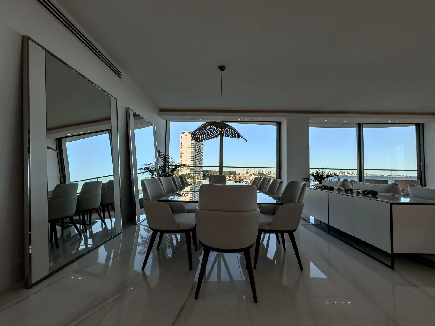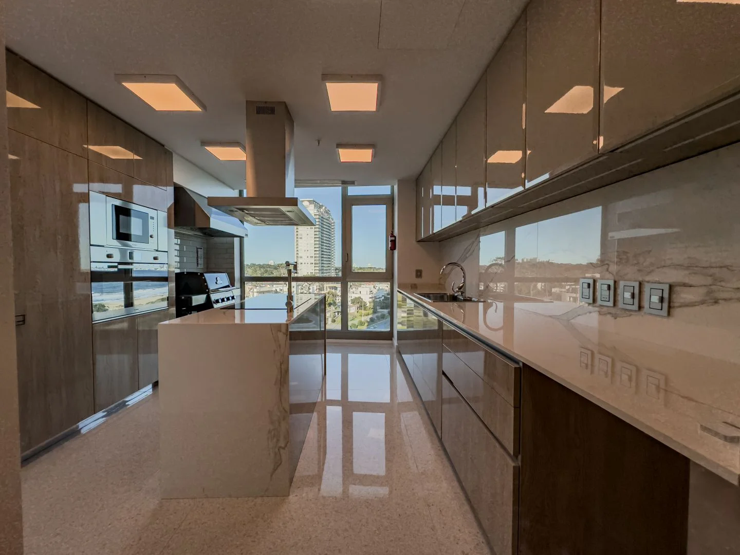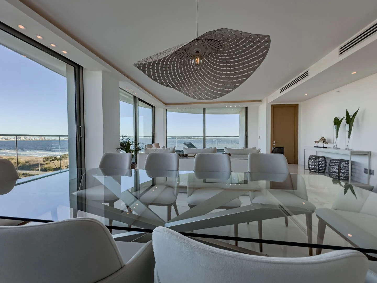 Espectacular apartamento de 4 dormitorios en suite, espacioso living comedor, cocina totalmente equipada, toilette, terraza con vista directa al mar y puesta del sol.