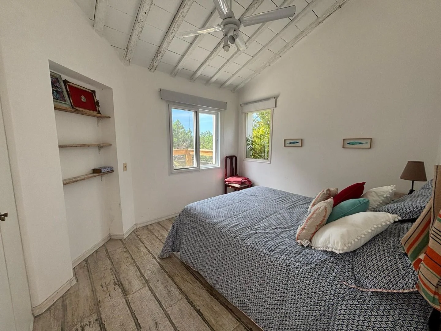 segundo dormitorio con cama doble, tercer dormitorio con 4 camas de 1 plaza, ambos comparten dos baños.