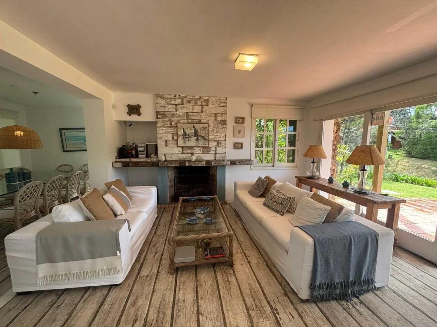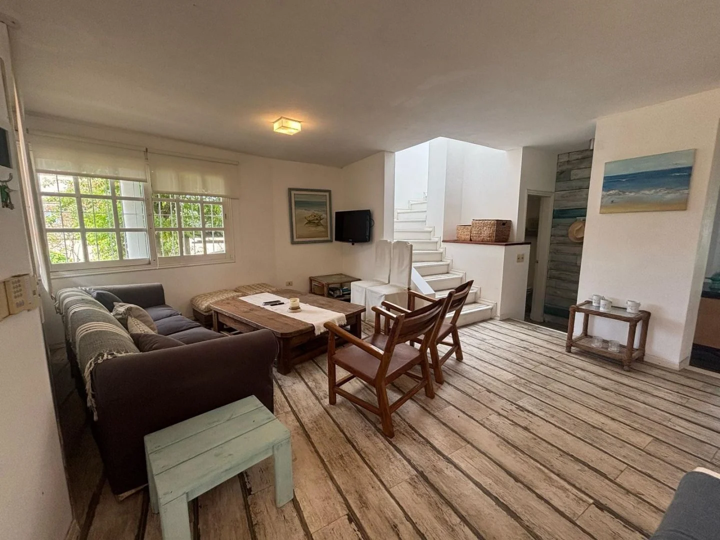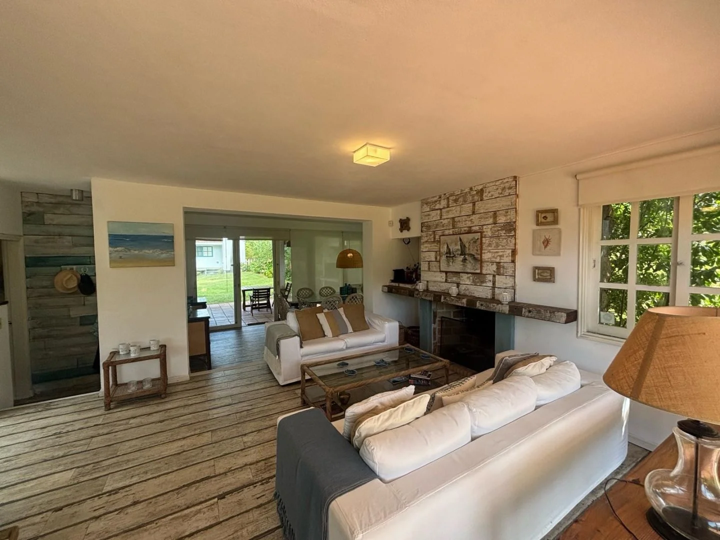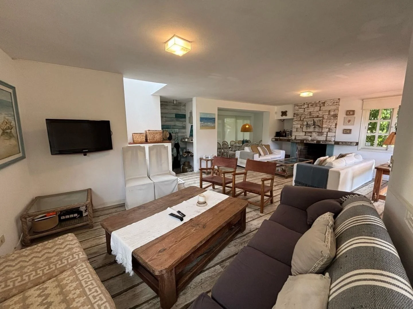 En planta baja nos encontramos con espacio de tv, al lado espacio social junto a estufa tradicional.