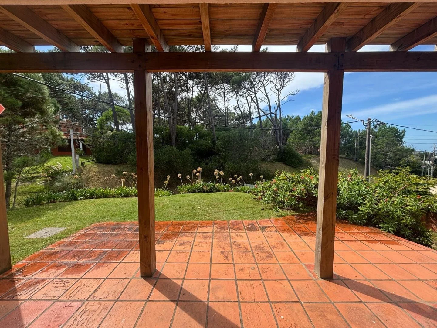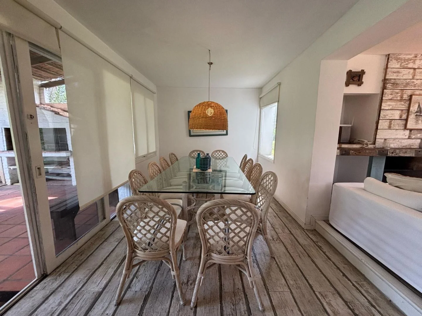 Continuando desde el comedor pasamos a la galería techada, donde se encuentra el parrillero y mesa para 12 personas ideal para disfrutar con familia y amigos.