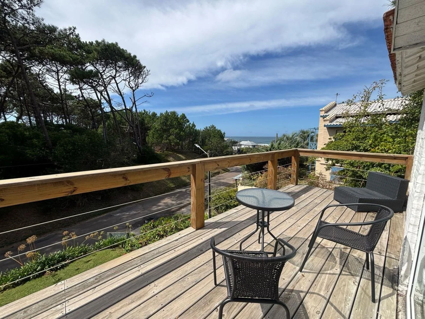 en planta alta, tres dormitorios el principal en suite con vista al mar y cama king size,