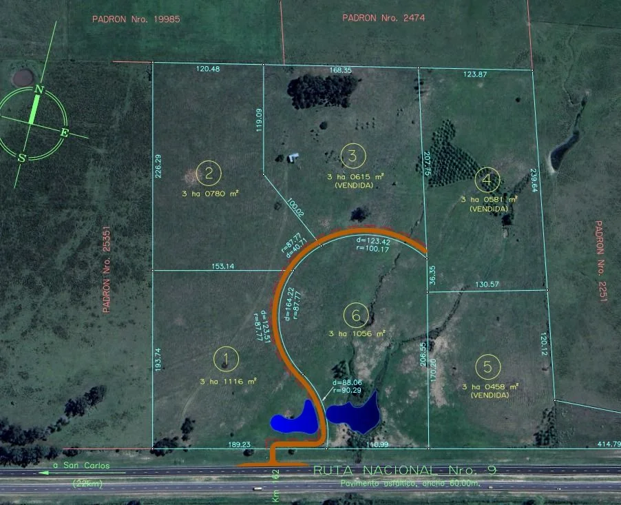 Se venden 3 chacras Turisticas de 3 hectáreas cada una (Lotes 1, 2 y 6) con excelente acceso directo por Ruta N.º 9, a solo 10 min de Pueblo de José Ignacio.