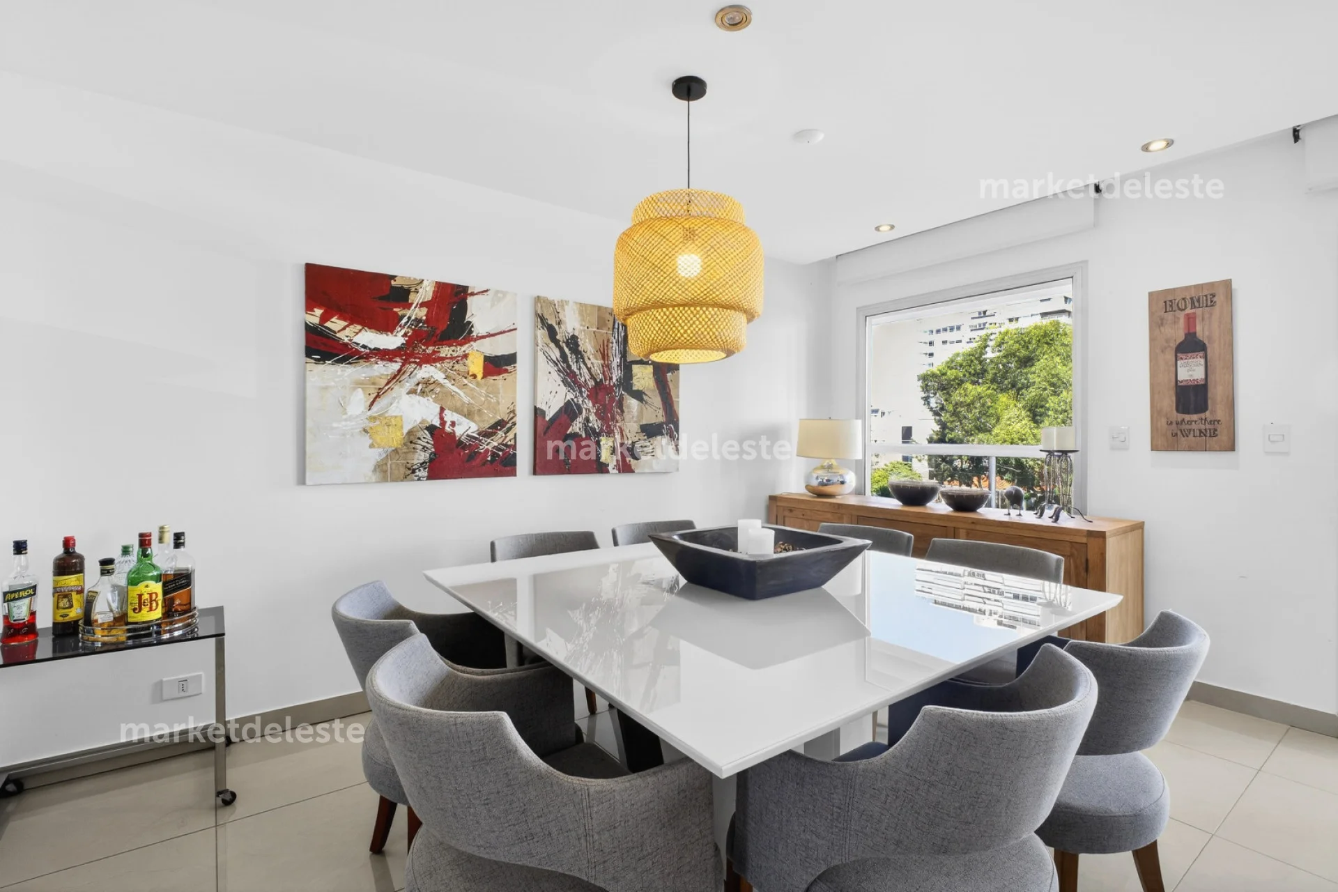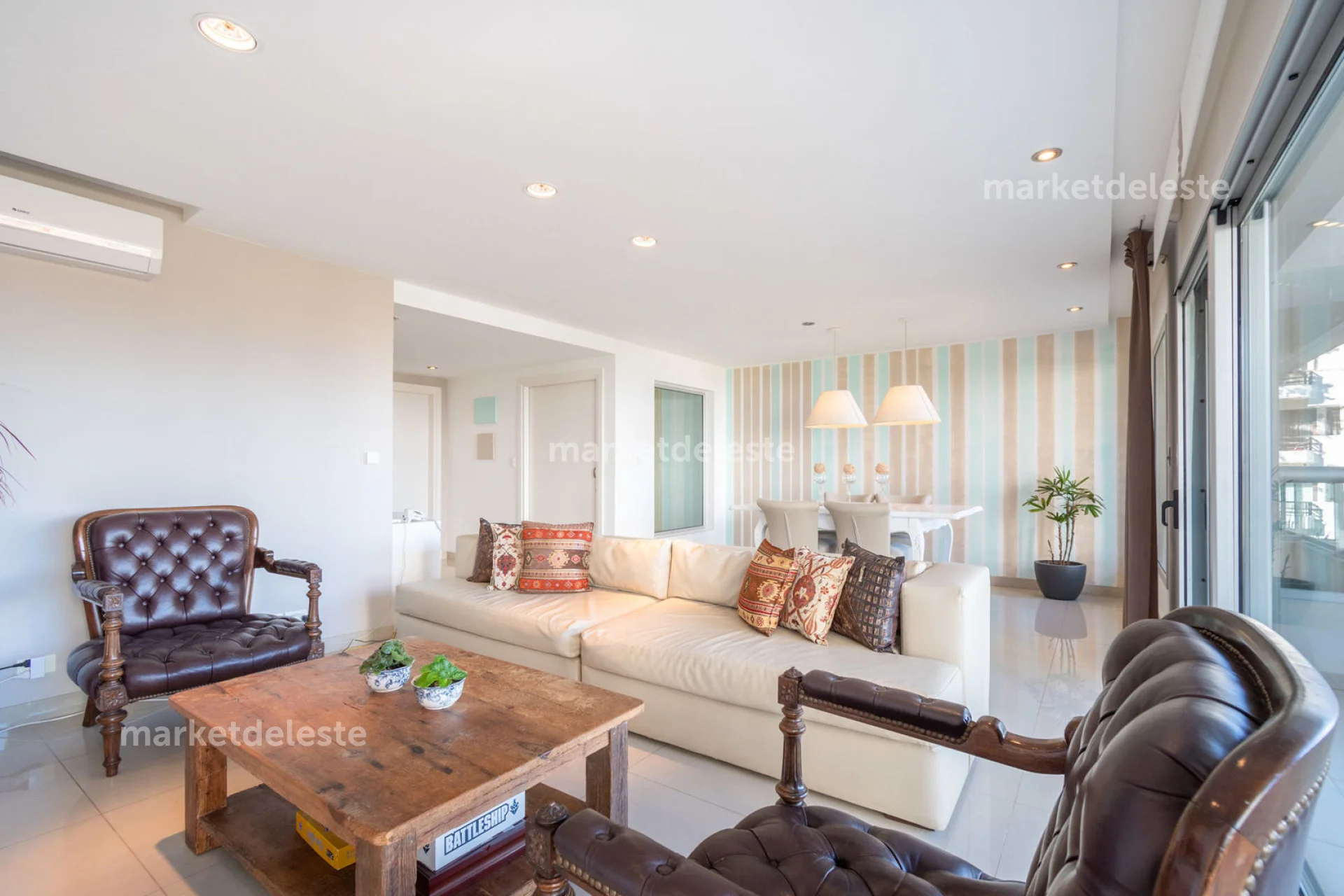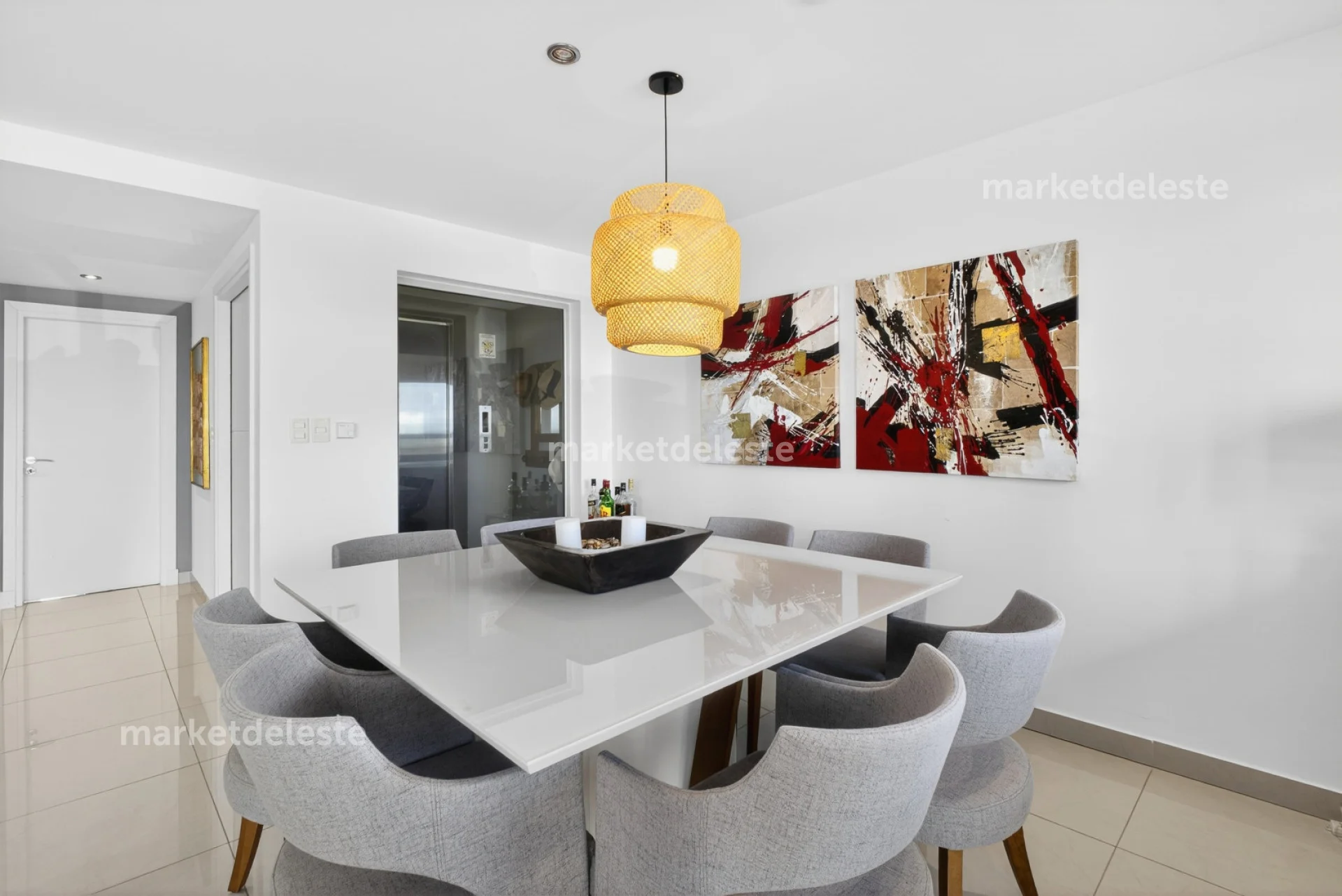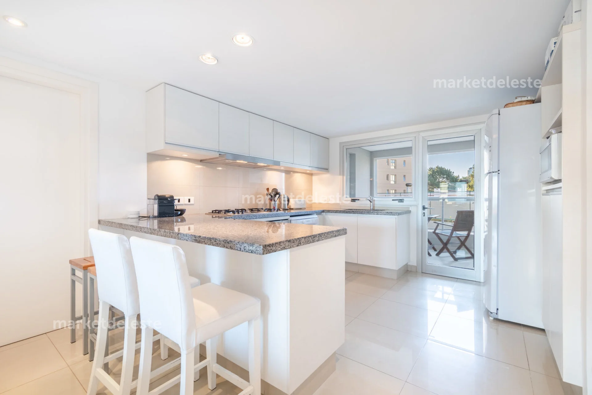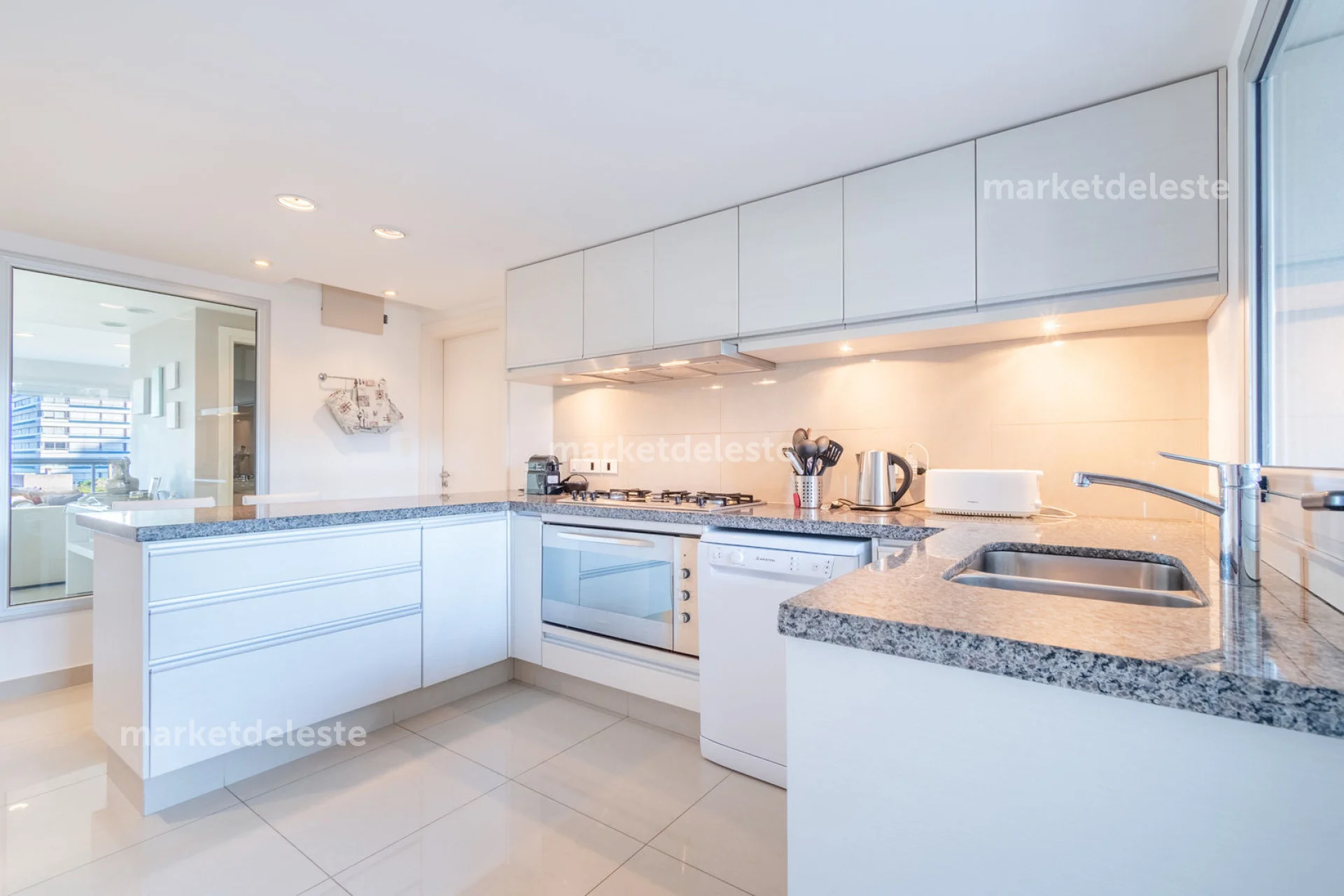 Amplio living comedor todo rodeado de ventanales con persianas eléctricas que conectan a su terraza con vista al mar. Cocina definida de gran tamaño con isla, terraza con parrilla, lavadero y dependencia de servicio. Tres dormitorios en suite, dos de ellos al frente con walk-in closet. Calefacción por losa radiante sectorizada y aire acondicionado en todos los ambientes.