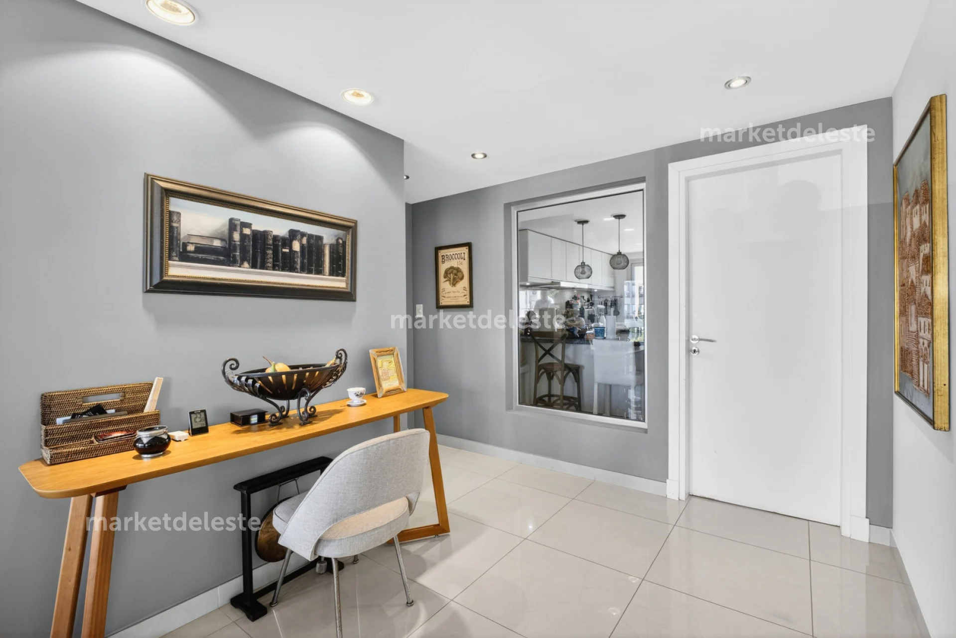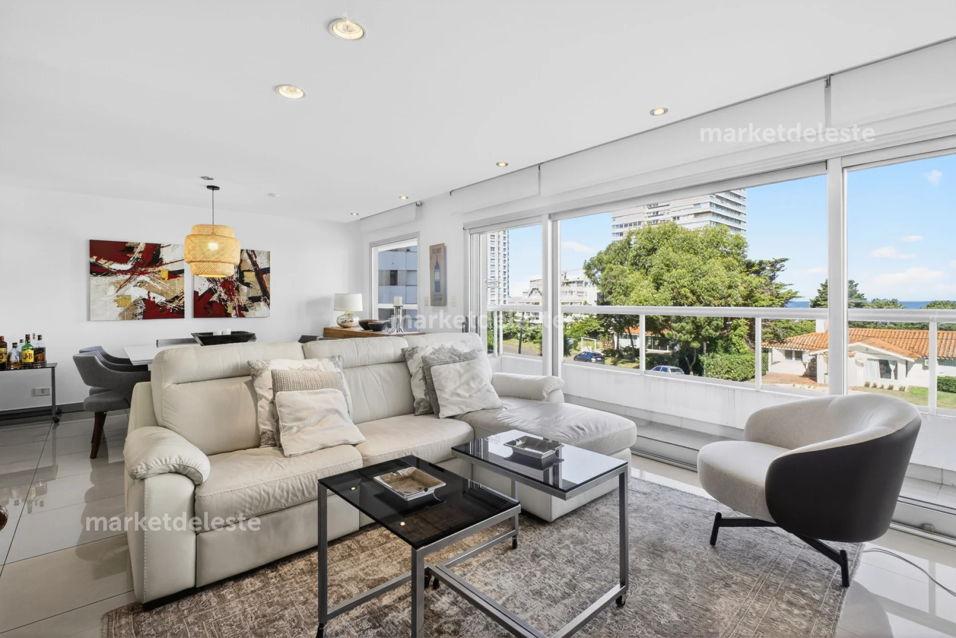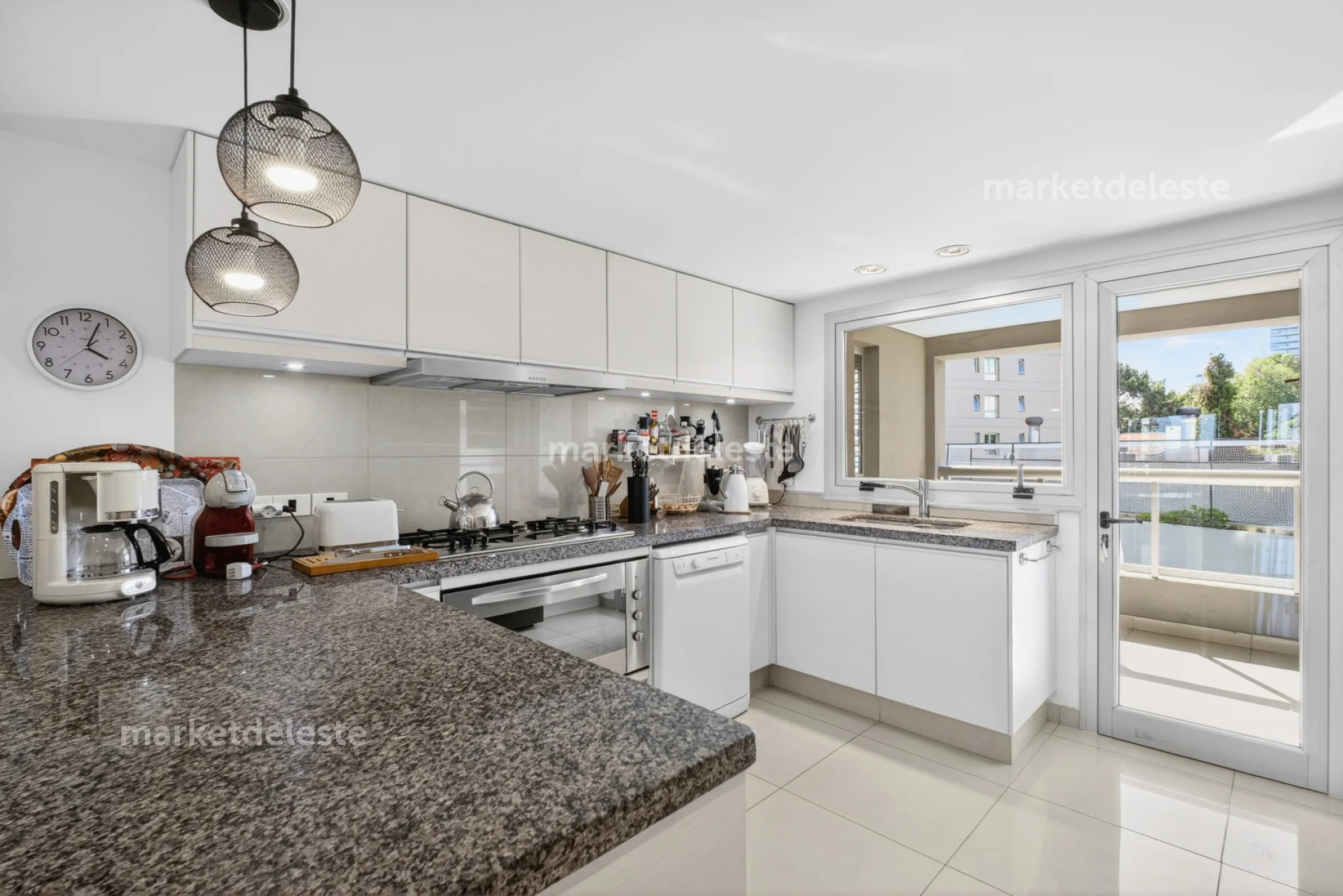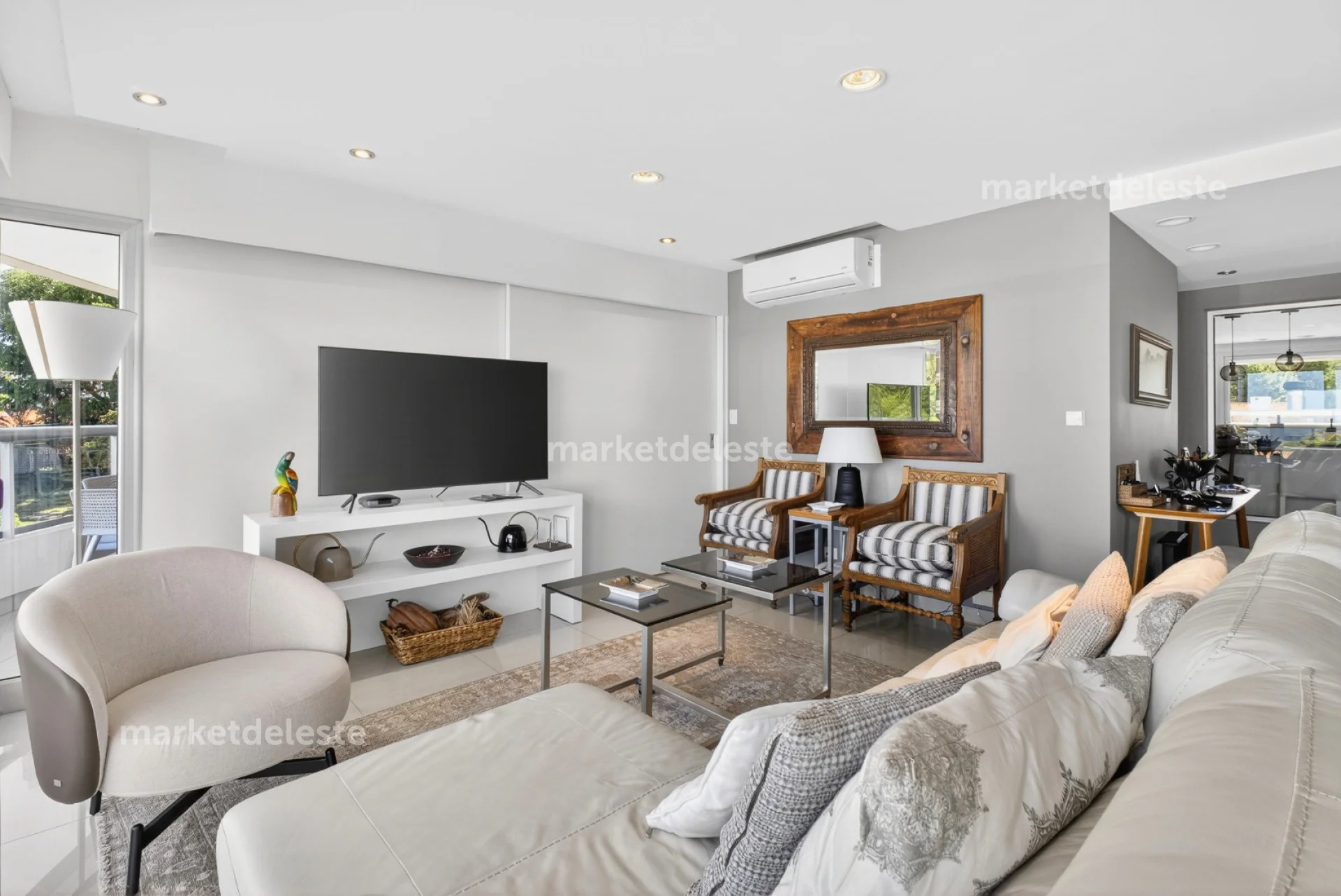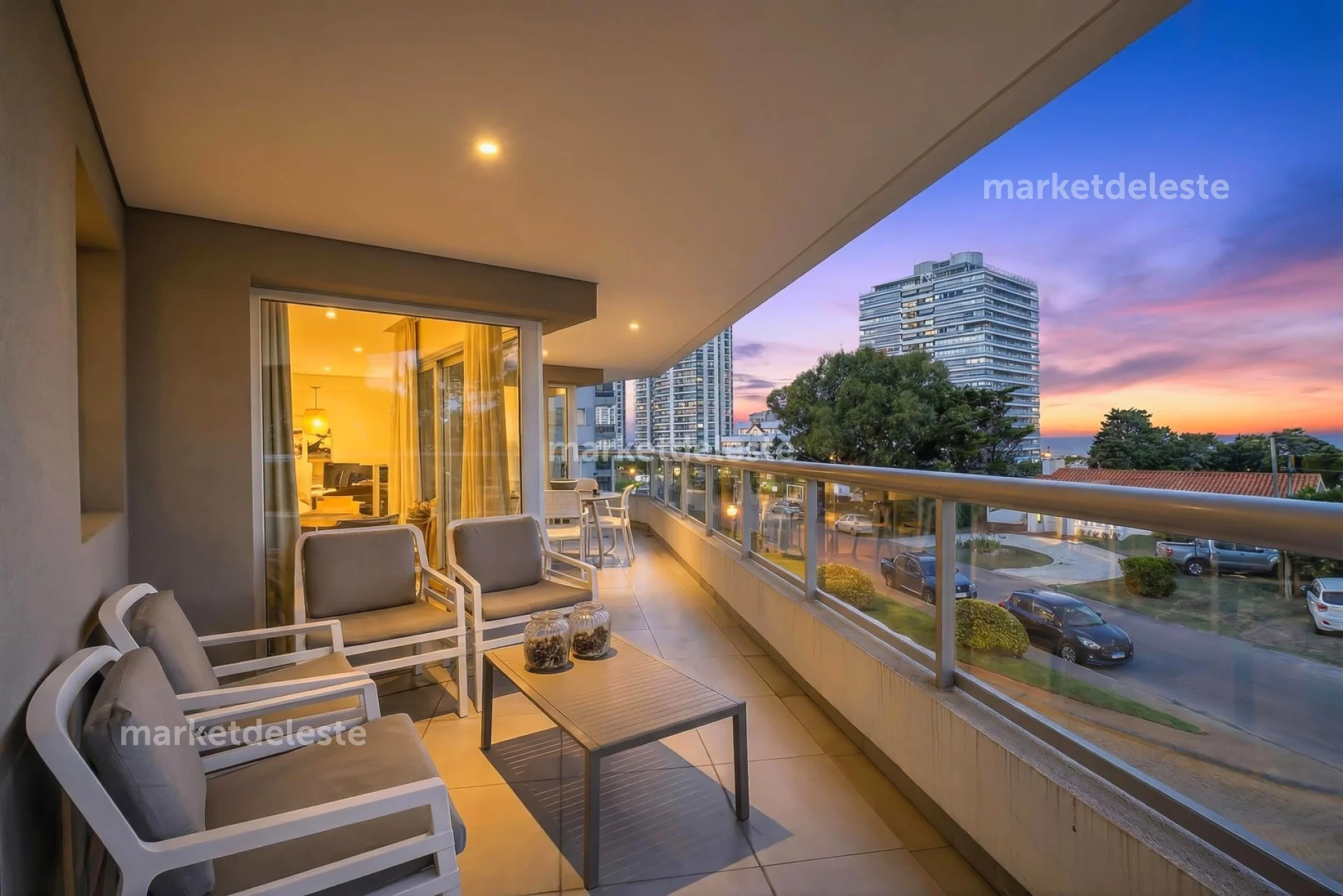 Amplio living comedor todo rodeado de ventanales con persianas eléctricas que conectan a su terraza con vista al mar. Cocina definida de gran tamaño con isla, terraza con parrilla, lavadero y dependencia de servicio. Tres dormitorios en suite, dos de ellos al frente con walk-in closet. Calefacción por losa radiante sectorizada y aire acondicionado en todos los ambientes.