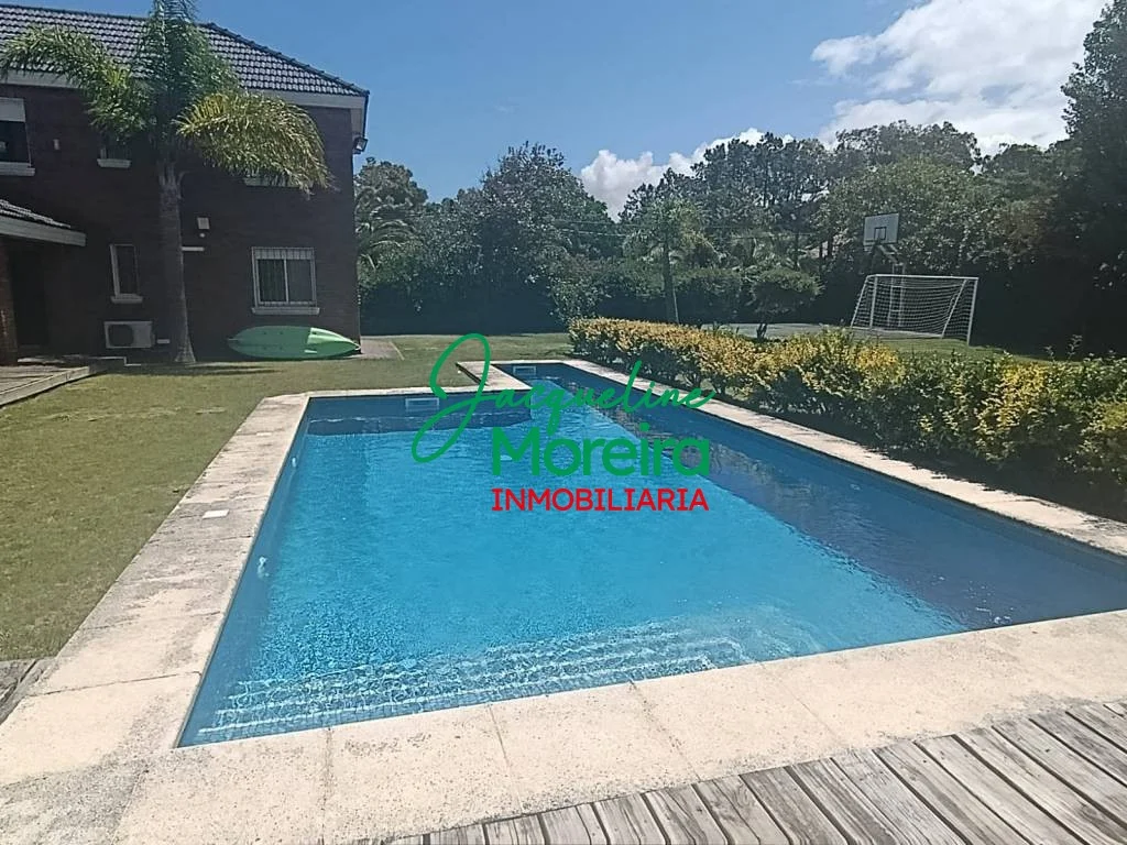 Continuando la barbacoa se encuentra la piscina de muy buen tamaño y materiales, también se puede disfrutar del jardín con canchas de football y basket. Sistema automático de riego en la totalidad de áreas verdes.