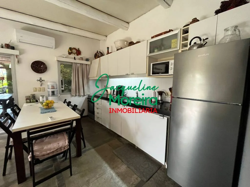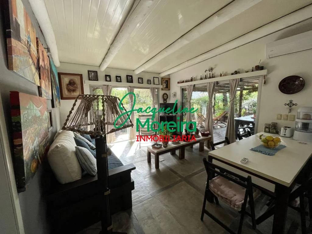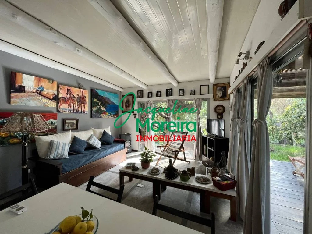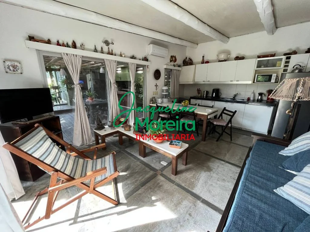 La casa se divide en dos módulos; principal con living, comedor y cocina totalmente equipada, todo en un mismo ambiente, con grandes puertas ventana hacia el jardín y al parrillero, que a parte de la gran vista aportan luminosidad y ventilación a todo el ambiente, 1 baño completo, y un cómodo dormitorio con placard empotrado.