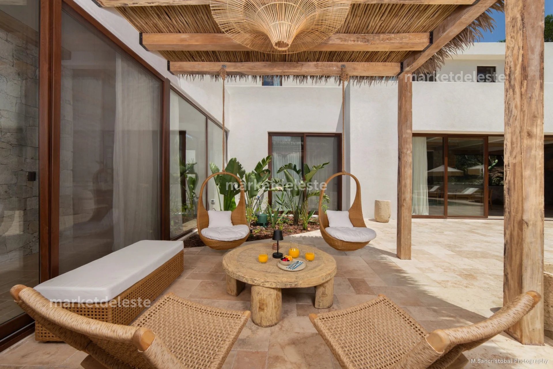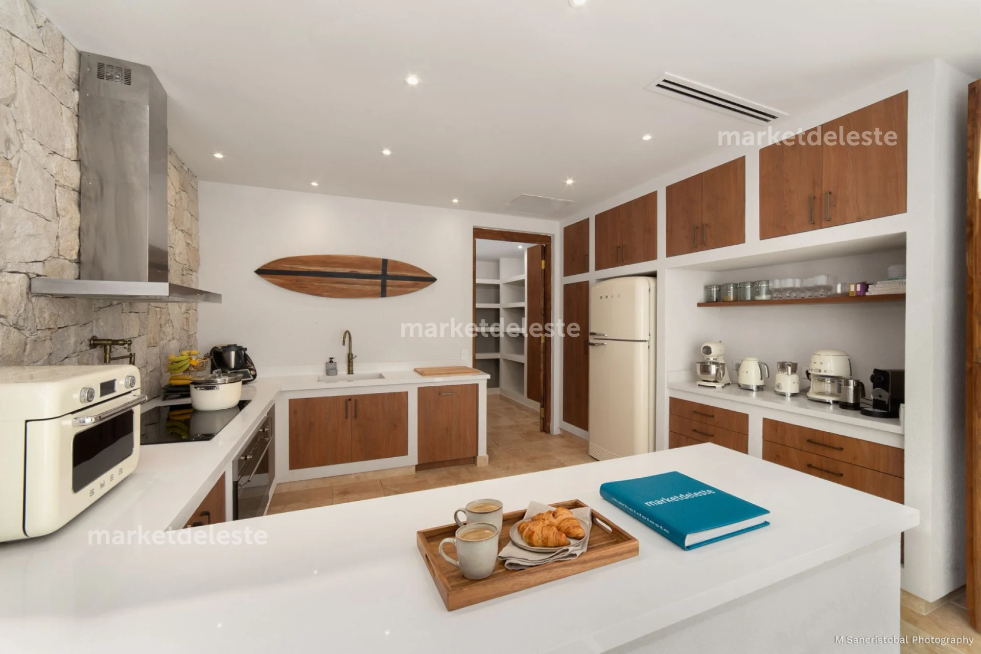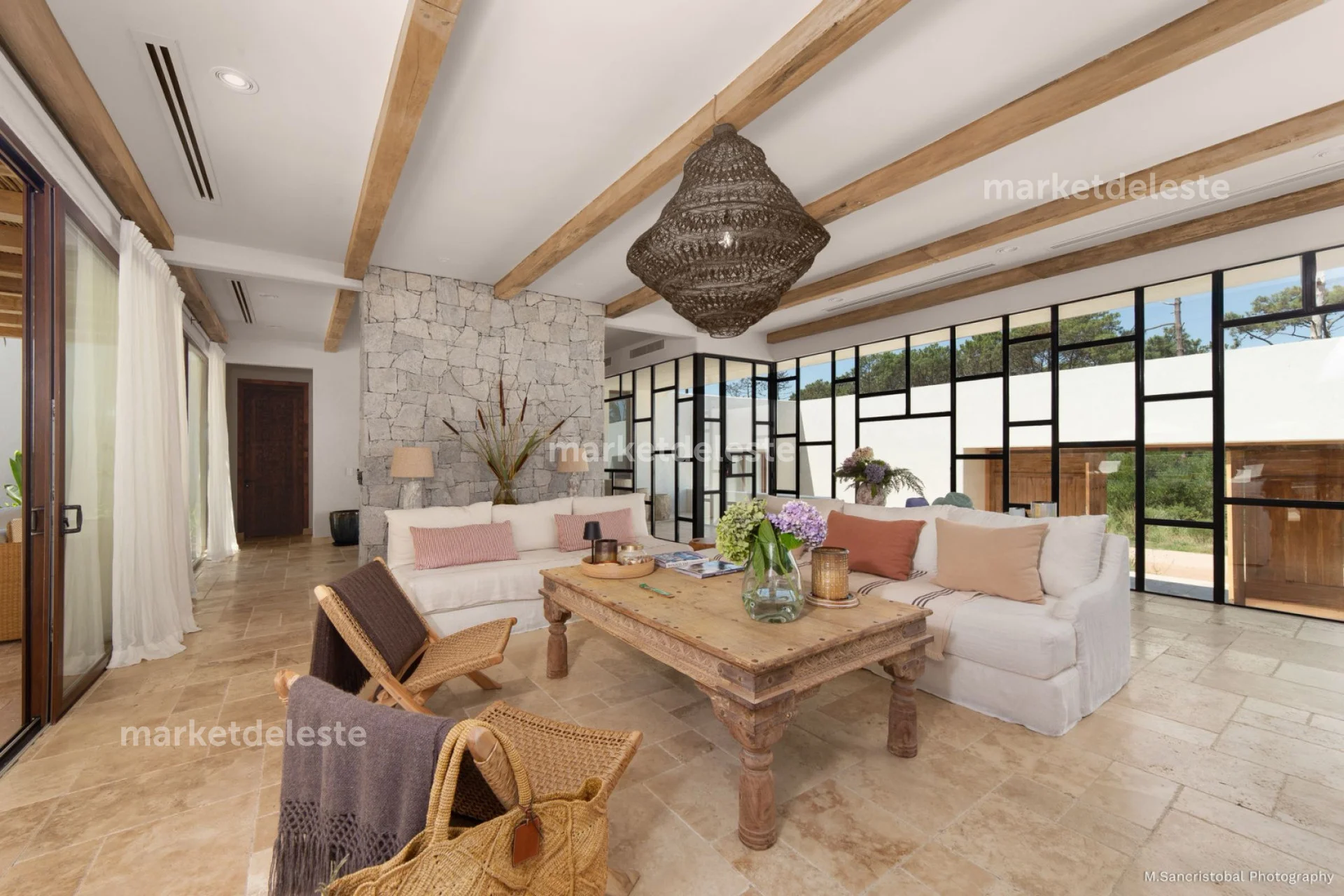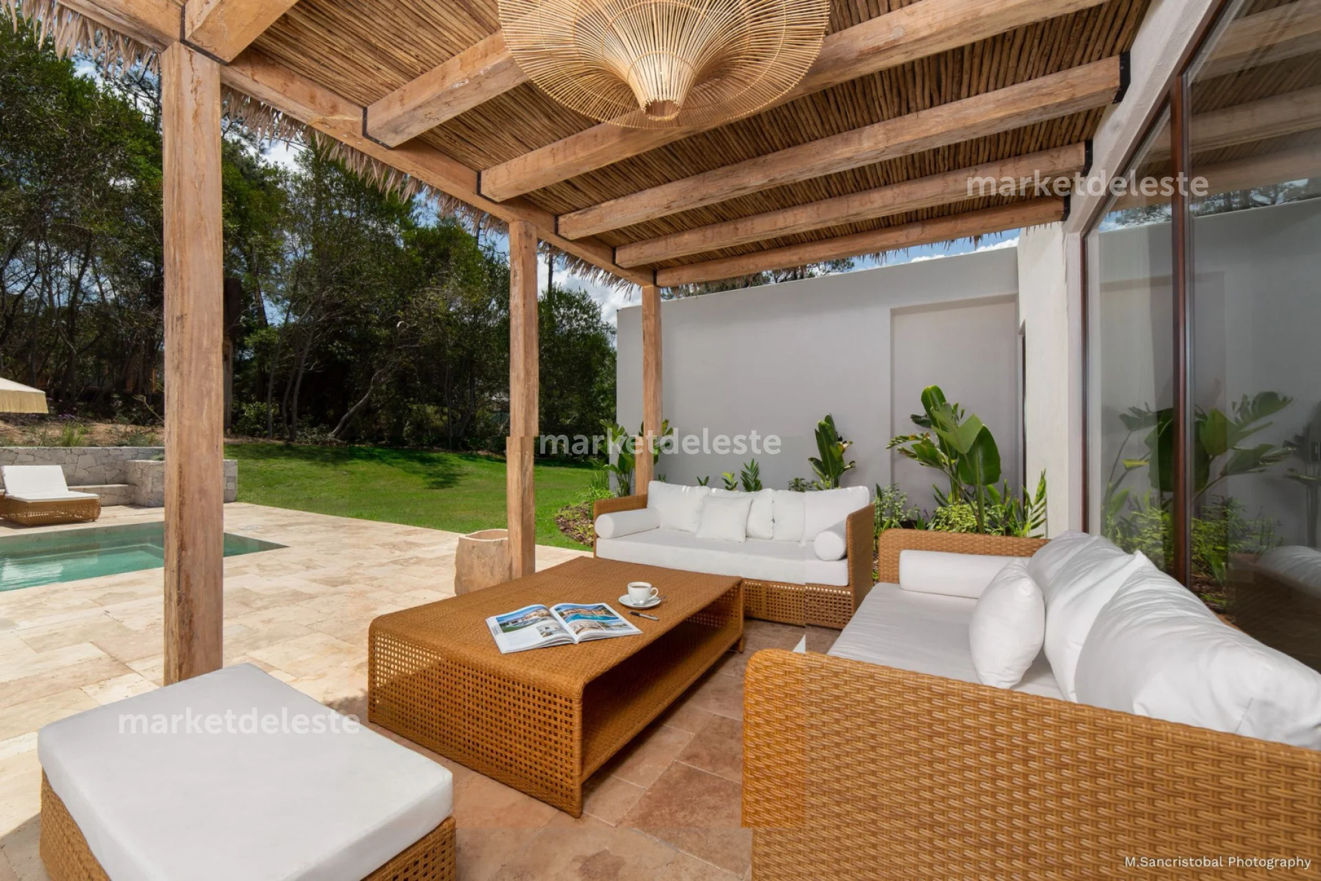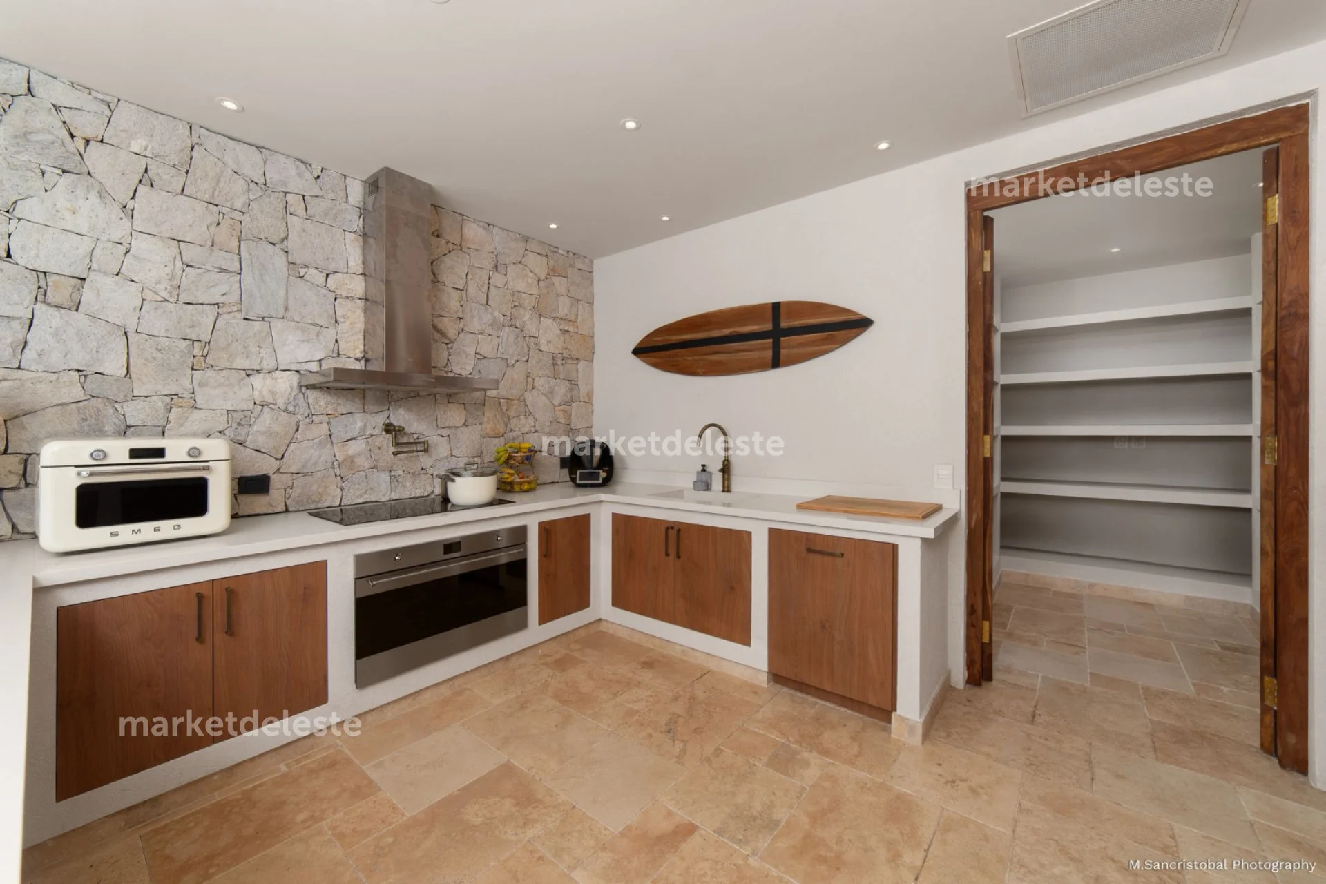 Calidad Constructiva y Detalles Únicos: Pisos interiores y exteriores en travertino, al igual que la piscina. Vigas de techo en teka, puertas talladas a mano con diseños únicos y a medida, bachas de piedra: Todo traído especialmente de Indonesia. Aproximadamente 15 macetas de piedra decorativas traídas especialmente. Grifería Robinett en cocina y toilette. Amplios placares y excelente capacidad de guardado en toda la propiedad. Sistema de musicalización integrado en área de piscina, parrillero y living. Sistema domótico: iluminación, aire acondicionado y música controlados mediante aplicación móvil.