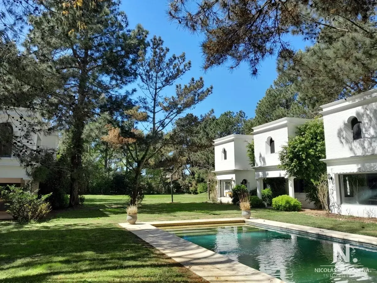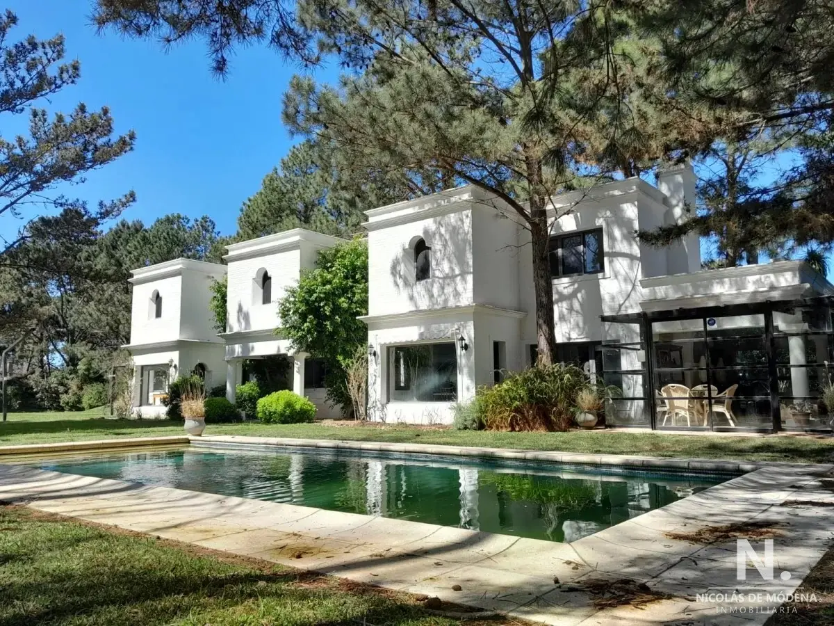En un lote de 3400 m2 esta espléndida propiedad cuenta con un espacioso living con hogar a leña de alto rendimiento y grandes ventanales que permiten disfrutar el jardín desde el interior de la casa. Comedor diario y estar. Cinco dormitorios en suite, más toilette y escritorio. Amplia cocina definida, completamente equipada.