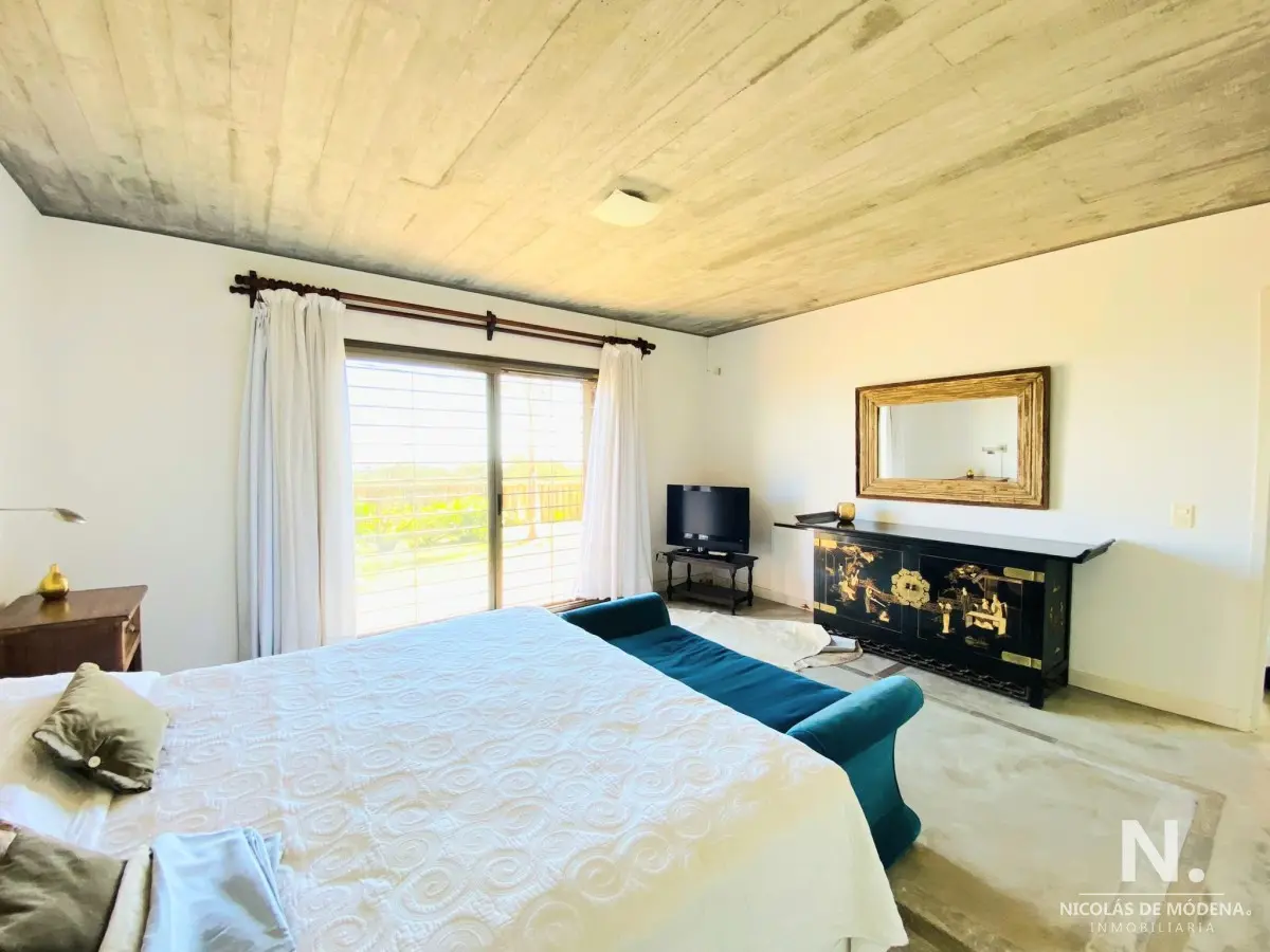 Planta baja dormitorio principal en suite con salida directa al jardín y la piscina + dos dormitorios en suite, todos cuentan con vista al mar.
