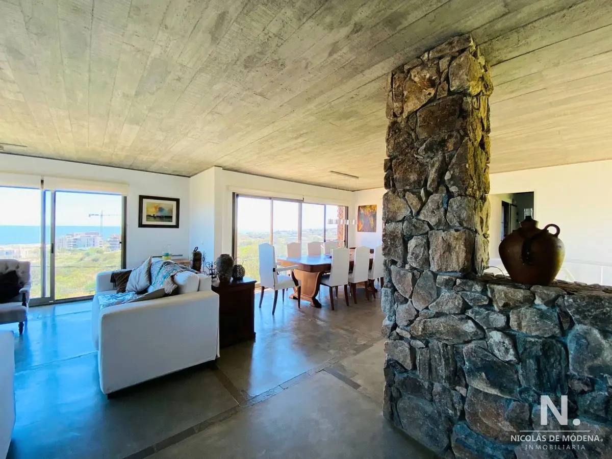 En planta alta living comedor con vista al mar el cual se comunica directamente con el parrillero, cocina definida con dependencia de servicio y toilett.