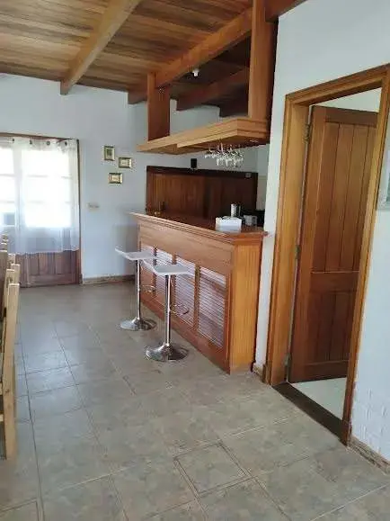 La casa, con 20 años de antigüedad, ha sido diseñada con una orientación oeste que permite disfrutar de impresionantes atardeceres. Sus múltiples comodidades incluyen aire acondicionado, calefacción, conexión a Internet, cable TV, y un sistema de alarma para mayor seguridad. Además, el espacio exterior cuenta con un jardín, un quincho con parrilla, y un solarium perfecto para los días soleados. La propiedad también permite mascotas, lo que la convierte en una opción ideal para familias.