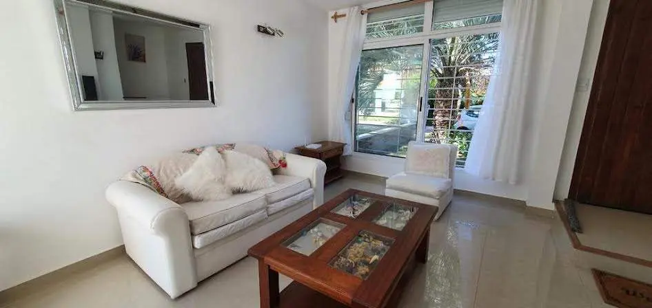 La distribución de la casa incluye 3 acogedores dormitorios, 2 baños funcionales y una cocina completamente equipada, perfecta para quienes disfrutan de la cocina. Entre sus características adicionales, se destacan el aire acondicionado, calefacción, chimenea, y una variedad de servicios como agua corriente, gas natural, internet y televisión por cable. El inmueble cuenta con un atractivo jardín, un patio ideal para disfrutar al aire libre, y un solárium que ofrece un espacio perfecto para relajarse. Además, se permite la tenencia de mascotas, lo que la convierte en una opción excelente para familias.