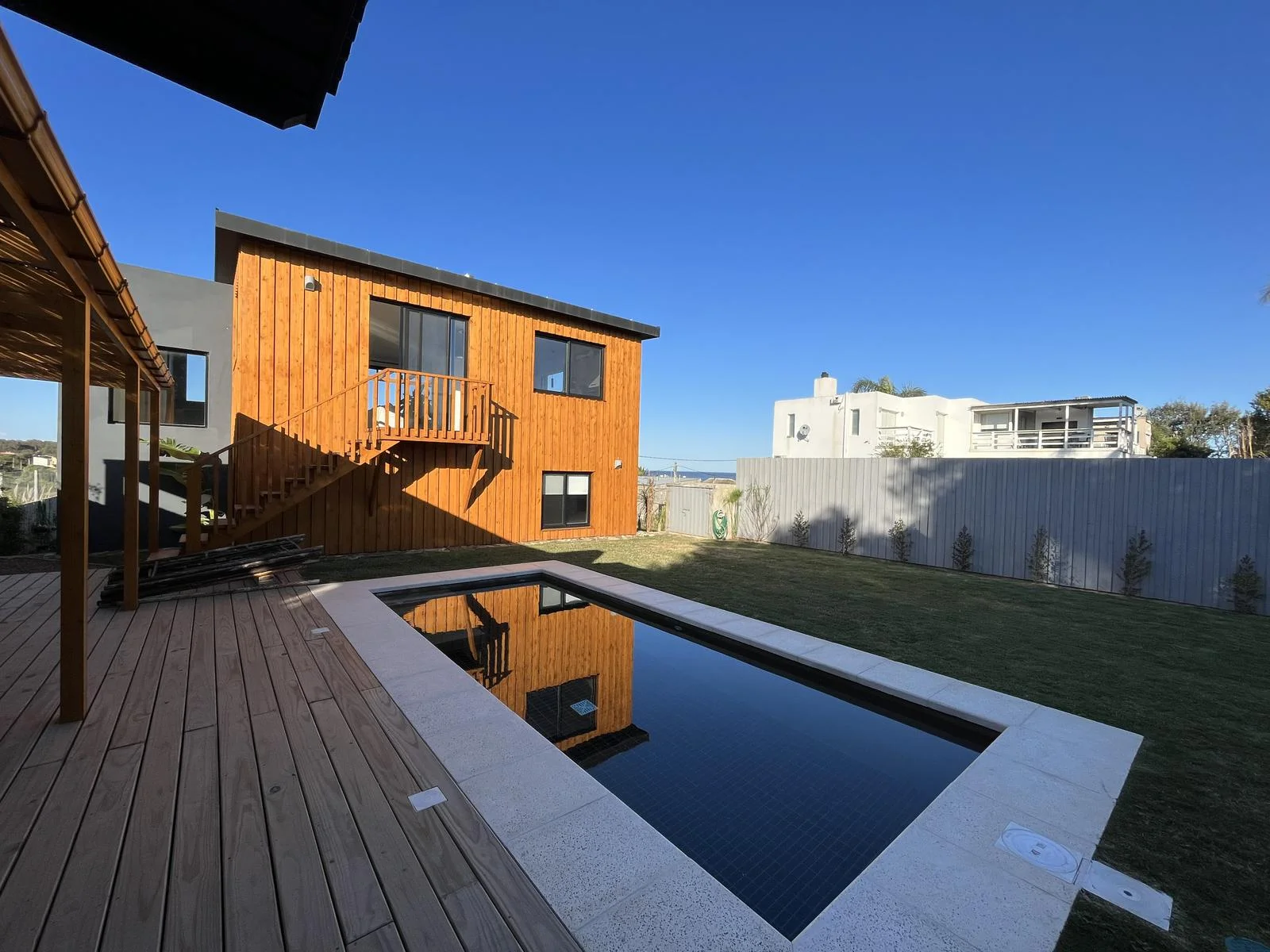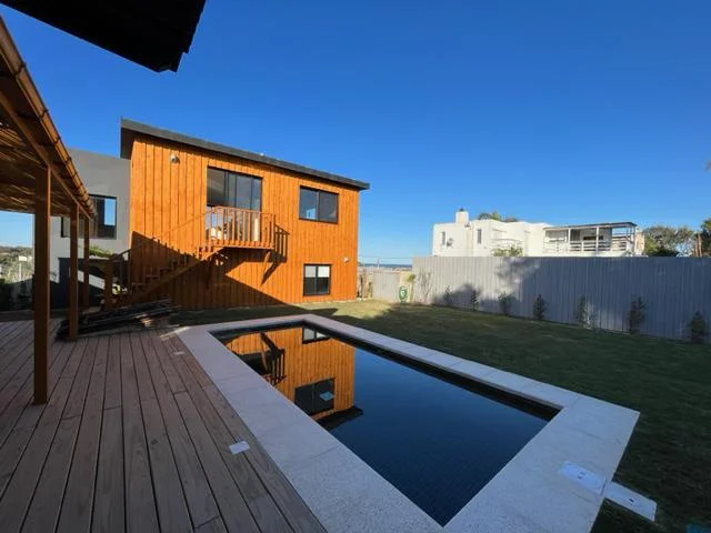 Casa de diseño en Altos de Punta Piedras alquiler Casa en Alquiler Temporario en Altos de Punta piedras , a una cuadra del mar. A nivel planta 3 dormitorios, ppal en suite, amplio baño. En planta alta living y comedor con vista al mar, terraza, cocina. Soleado jardin con piscina, parrillero y lavadero y lugar para guardar articulos de playa y bicicletas. Una calida y alegre casa para disfrutar en familia del verano.
