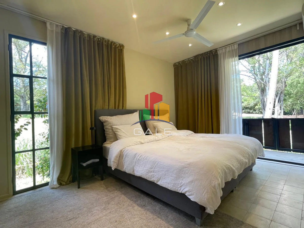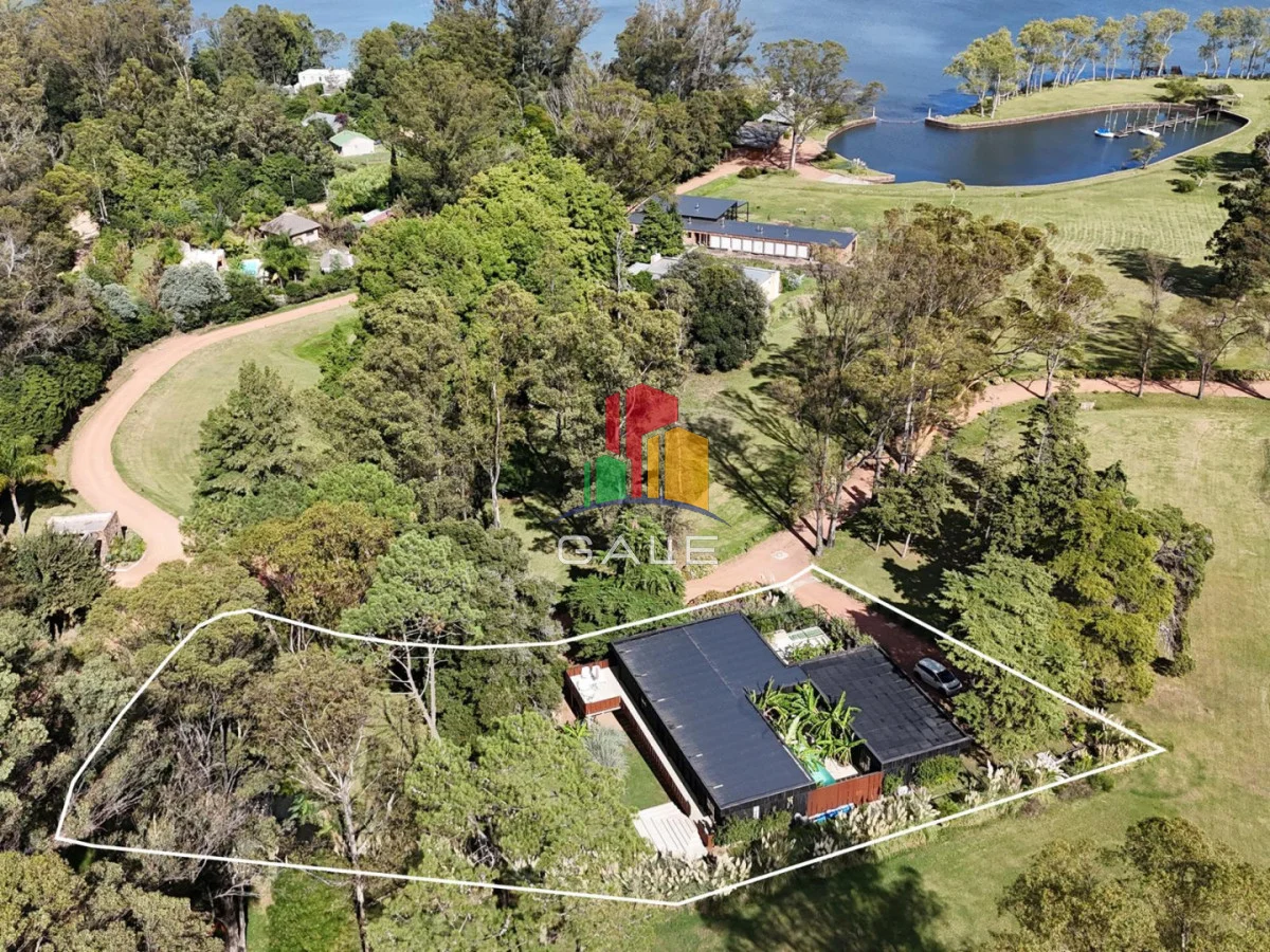 La propiedad se ubica entre distintas especies arbóreas en un entorno idílico con vistas a la laguna y al barrio.