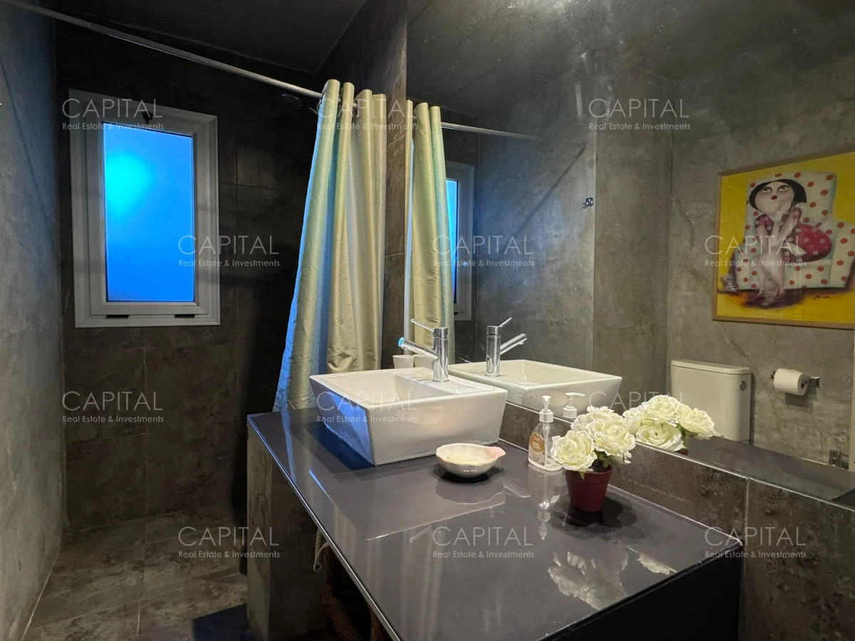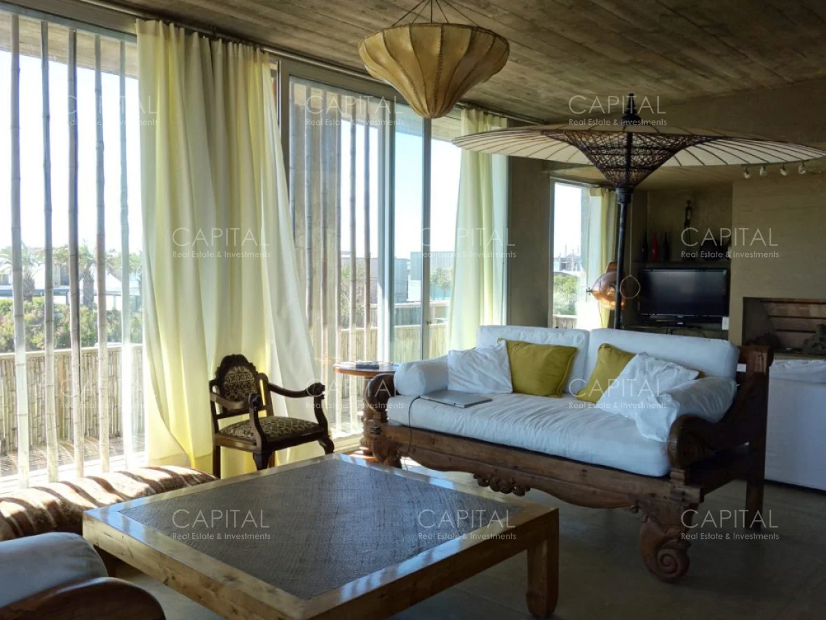 Amplio living comedor en planta alta con hermosa vista al mar. Cocina americana full equipe. Master suite con vestidor, 1 dormitorio en suite, 1 toilette, lugar para refrescarse en terraza superior. En planta baja 4 dormitorios en suite con frigo bar en cada uno de ellos. Living comedor y cocina completa, barbacoa, piscina y dependencia de servicio completa