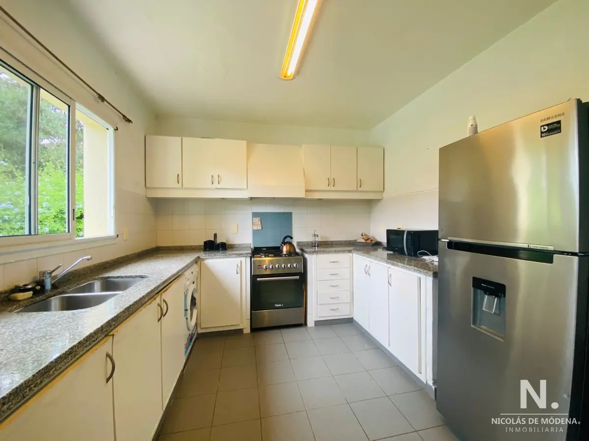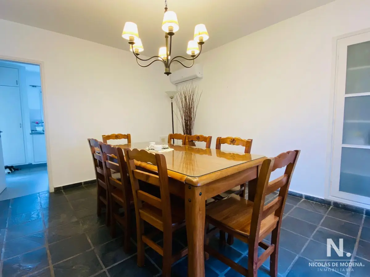 Amplia casa con 3 dormitorios en suite a pocas cuadras de la playa . Gran galería con parrillero, toilette, piscina cercada, jardín cercado, aire acondicionado. Alarma con servicio de vigilancia 24 horas. ALARMA, WIFI, TV CABLE, LAVARROPAS, AIRE ACONDICIONADO Por mas información quedamos a las ordenes Referencia Interna : Tera-8084