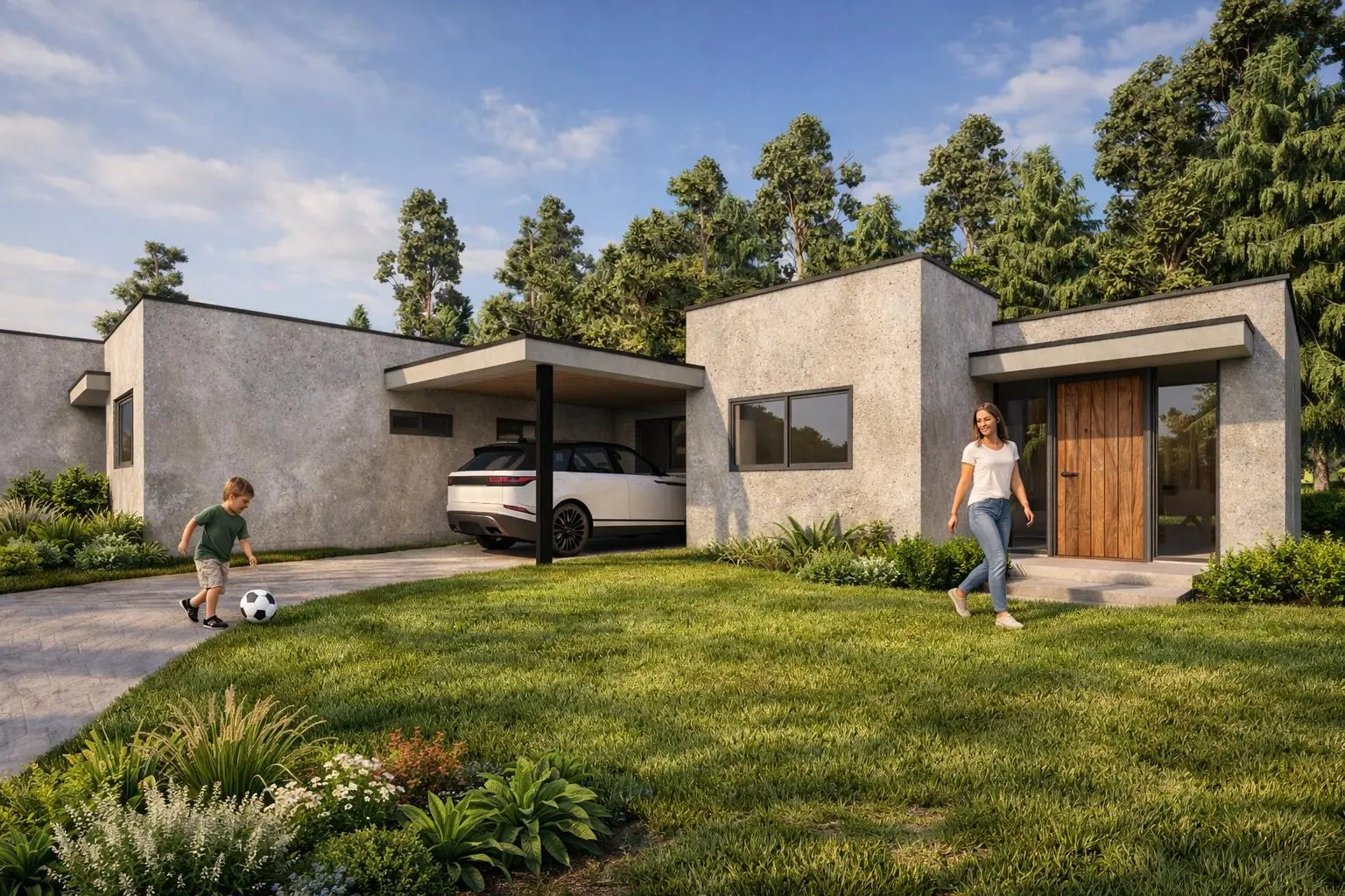 Cochera con Pérgola , brindando protección para tu vehículo con un toque estético superior.