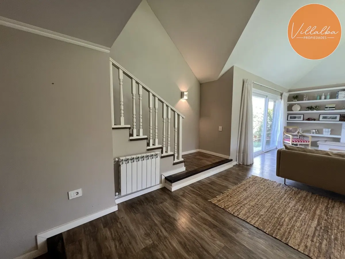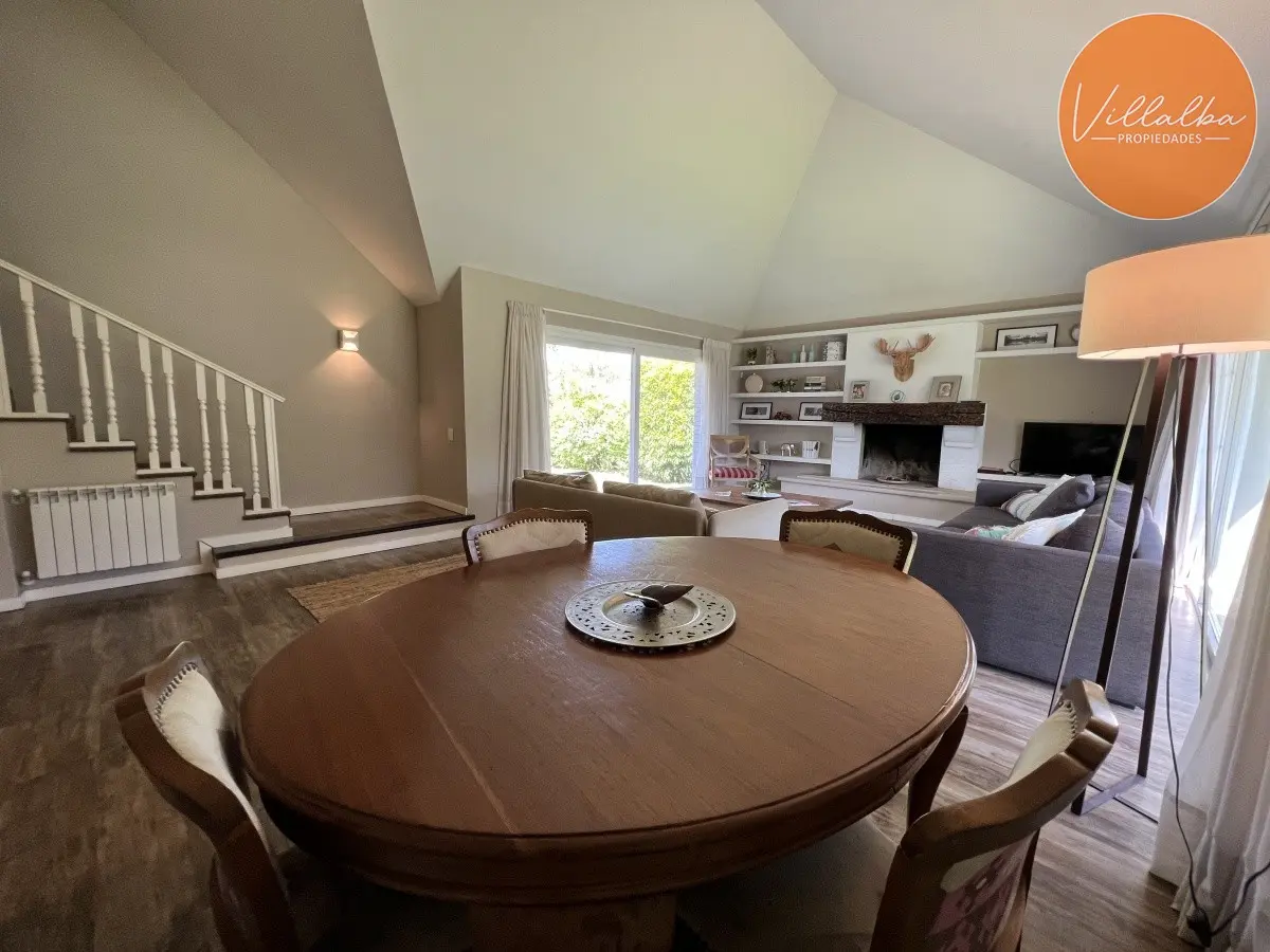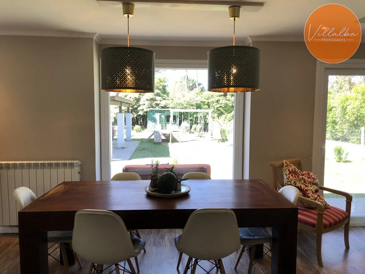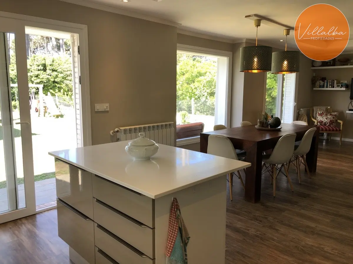 En un terreno de 1050 metros y 350 metros construidos en 2 plantas, cuenta con amplio living con estufa a leña, cocina integrada a estar diario con vista al jardín, 4 dormitorios, 2 en planta baja uno de ellos en suite con vestidor, y otros 2 en planta alta con 1 baño. Amplio parrillero con baño, piscina climatizada, área de juegos para niños, terreno cercado.