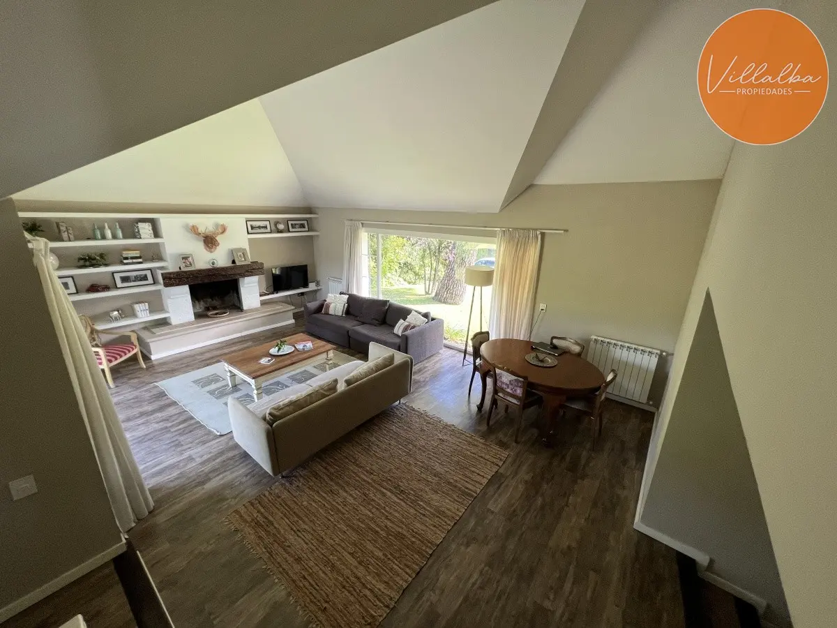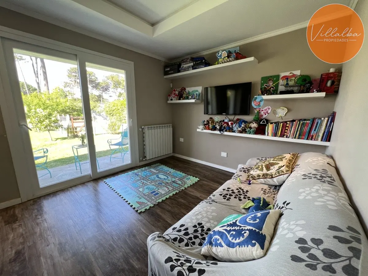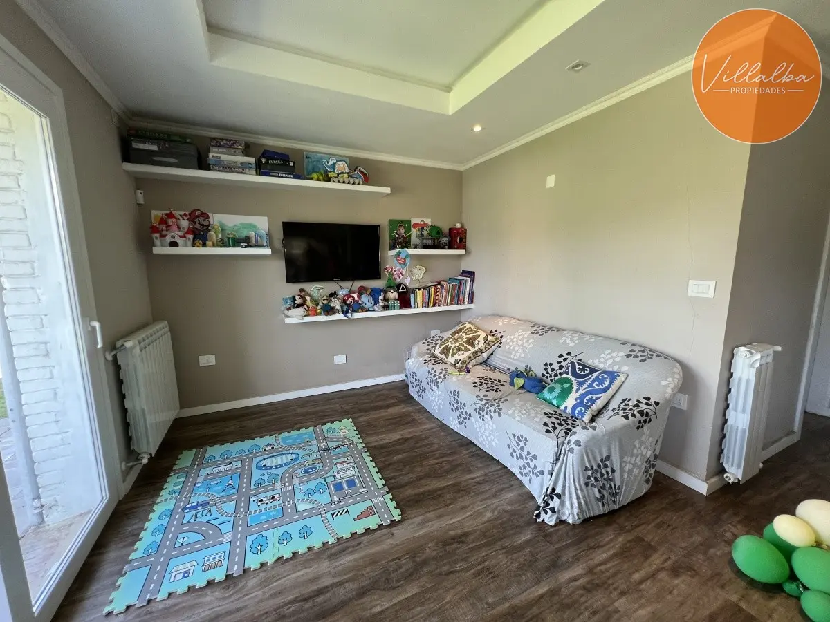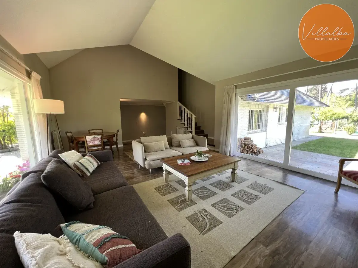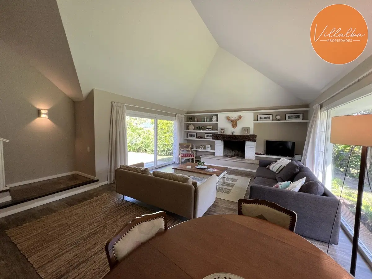 En un terreno de 1050 metros y 350 metros construidos en 2 plantas, cuenta con amplio living con estufa a leña, cocina integrada a estar diario con vista al jardín, 4 dormitorios, 2 en planta baja uno de ellos en suite con vestidor, y otros 2 en planta alta con 1 baño. Amplio parrillero con baño, piscina climatizada, área de juegos para niños, terreno cercado.