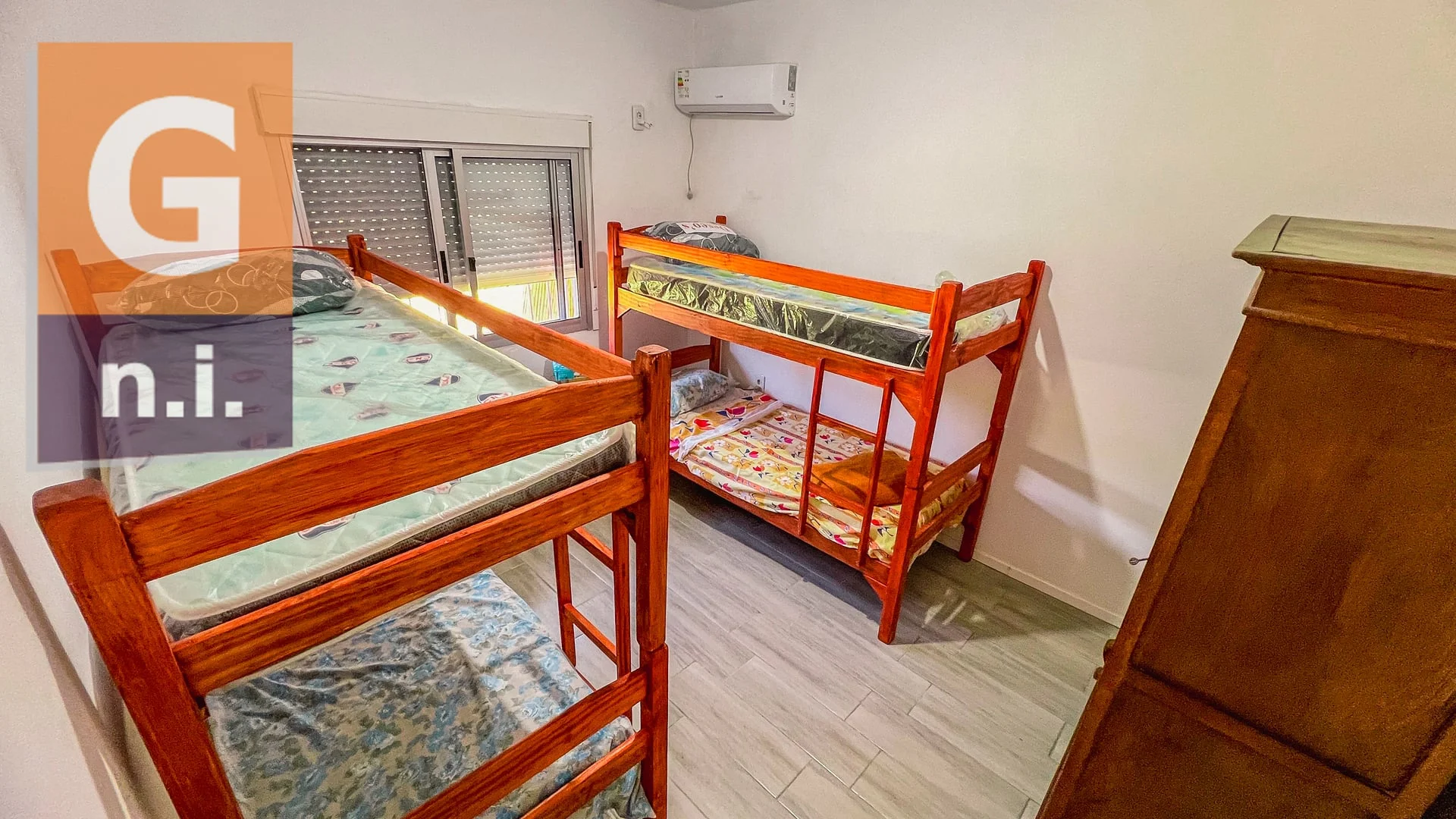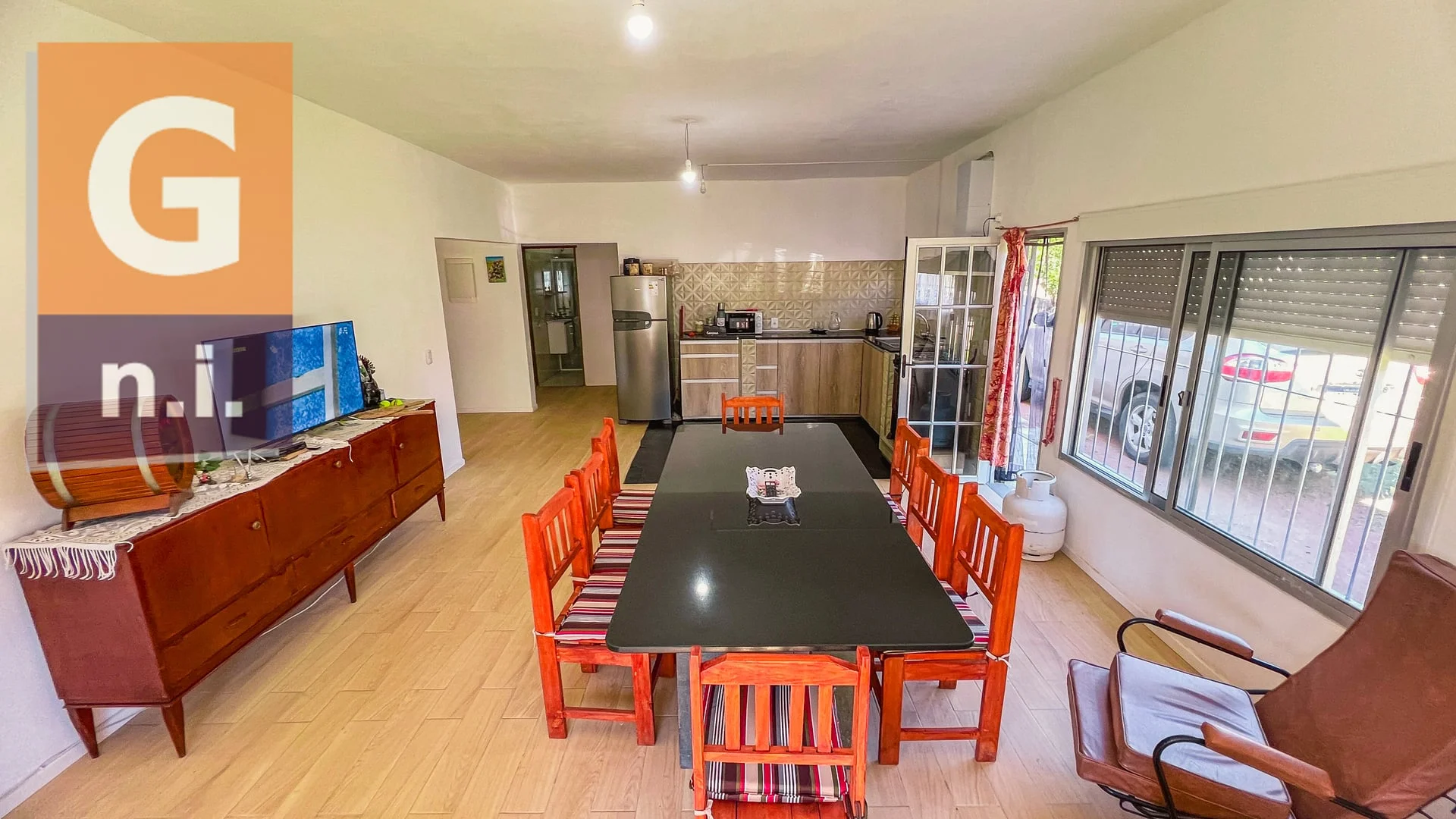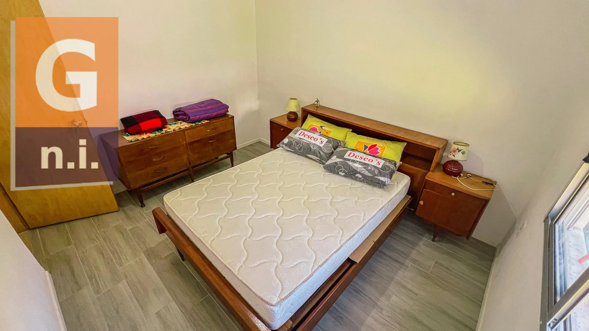La propiedad se desarrolla en una sola planta y cuenta con un amplio living comedor con cocina integrada, tres dormitorios, dos de ellos matrimoniales (uno de ellos con baño suite) y un tercer dormitorio con dos camas cuchetas, además de un baño social completo.