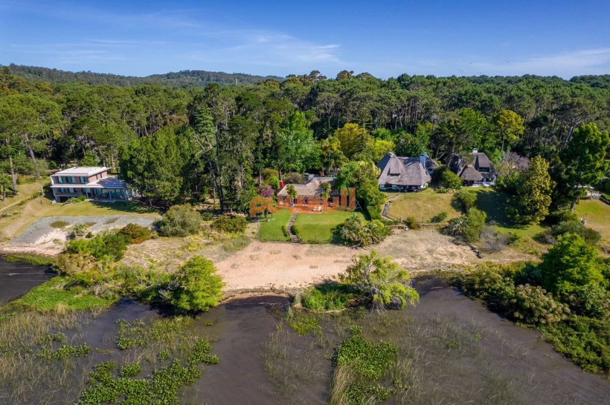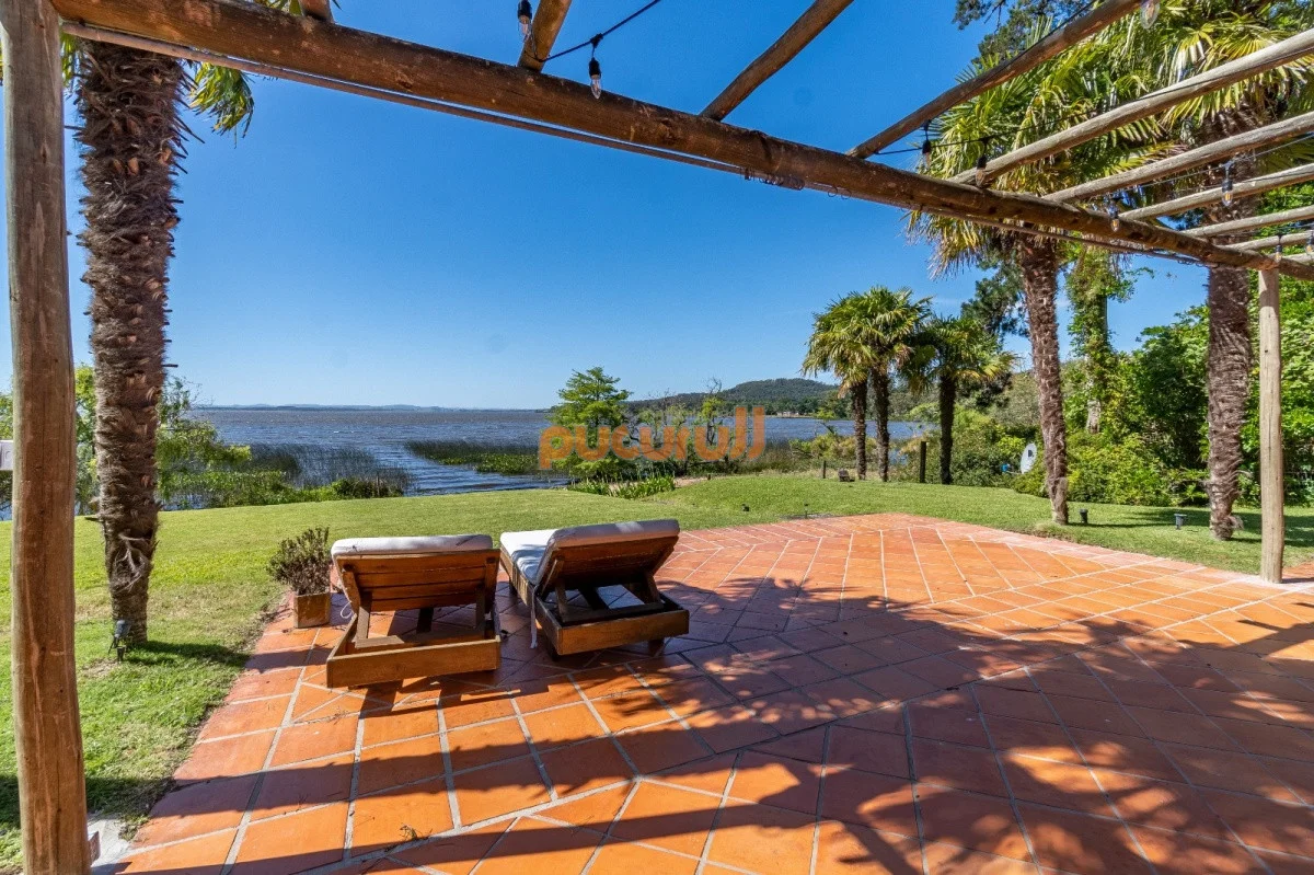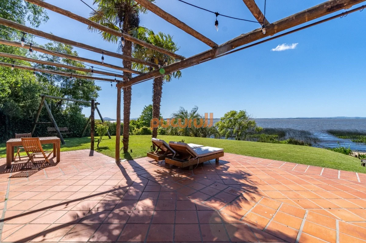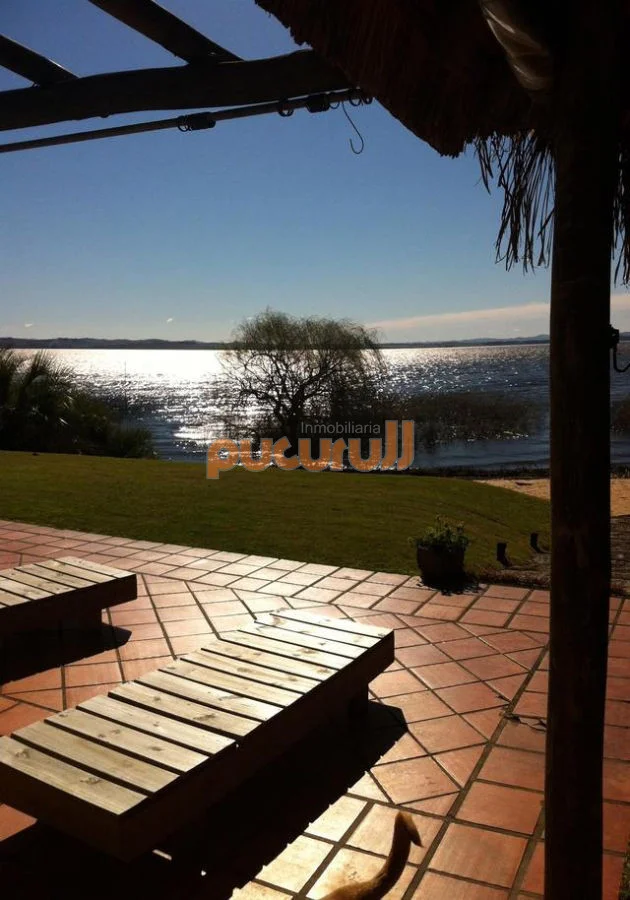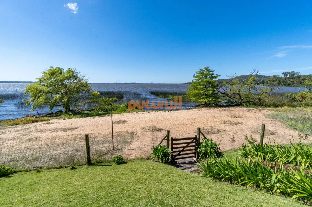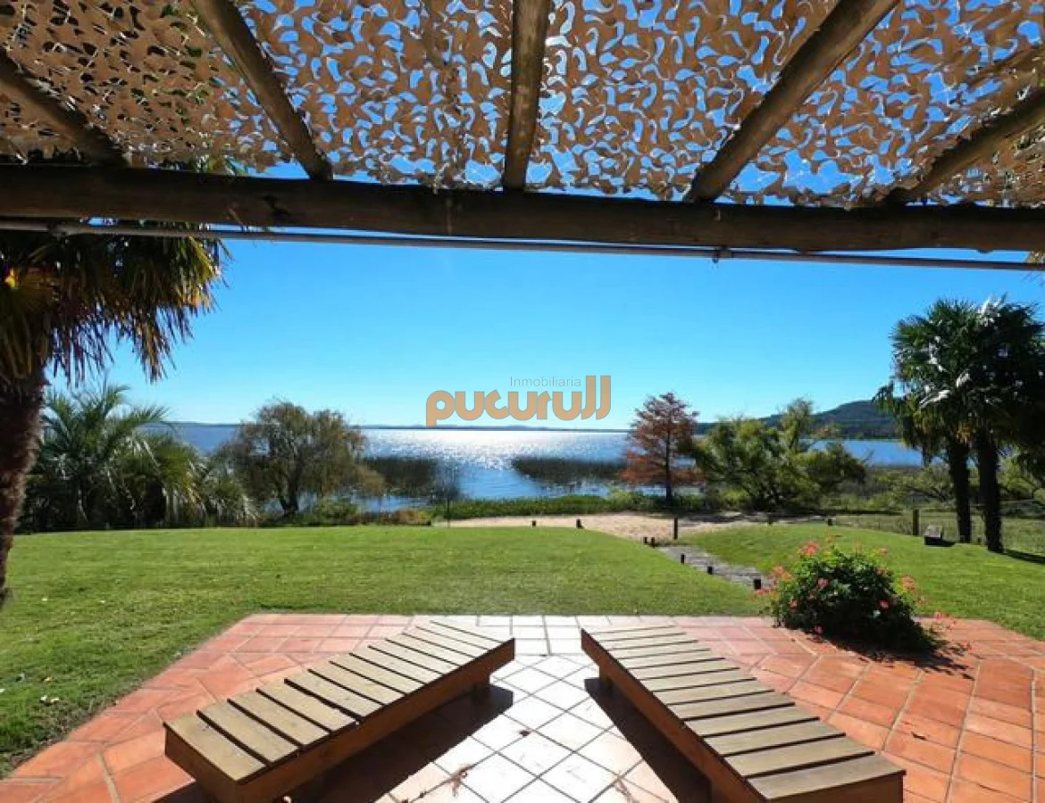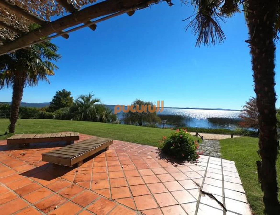 Directamente sobre la Laguna con playita! Preciosa cabaña. Muy bien equipada. Amplio living-comedor, galería con hermosa vista, 3 dormitorios, 2 baño (1 en suite). En planta alta: playroom +1 dormitorio +1 baño. Gran parrillero techado. Serv. Garaje
