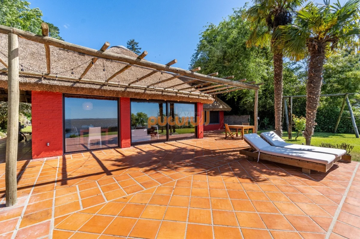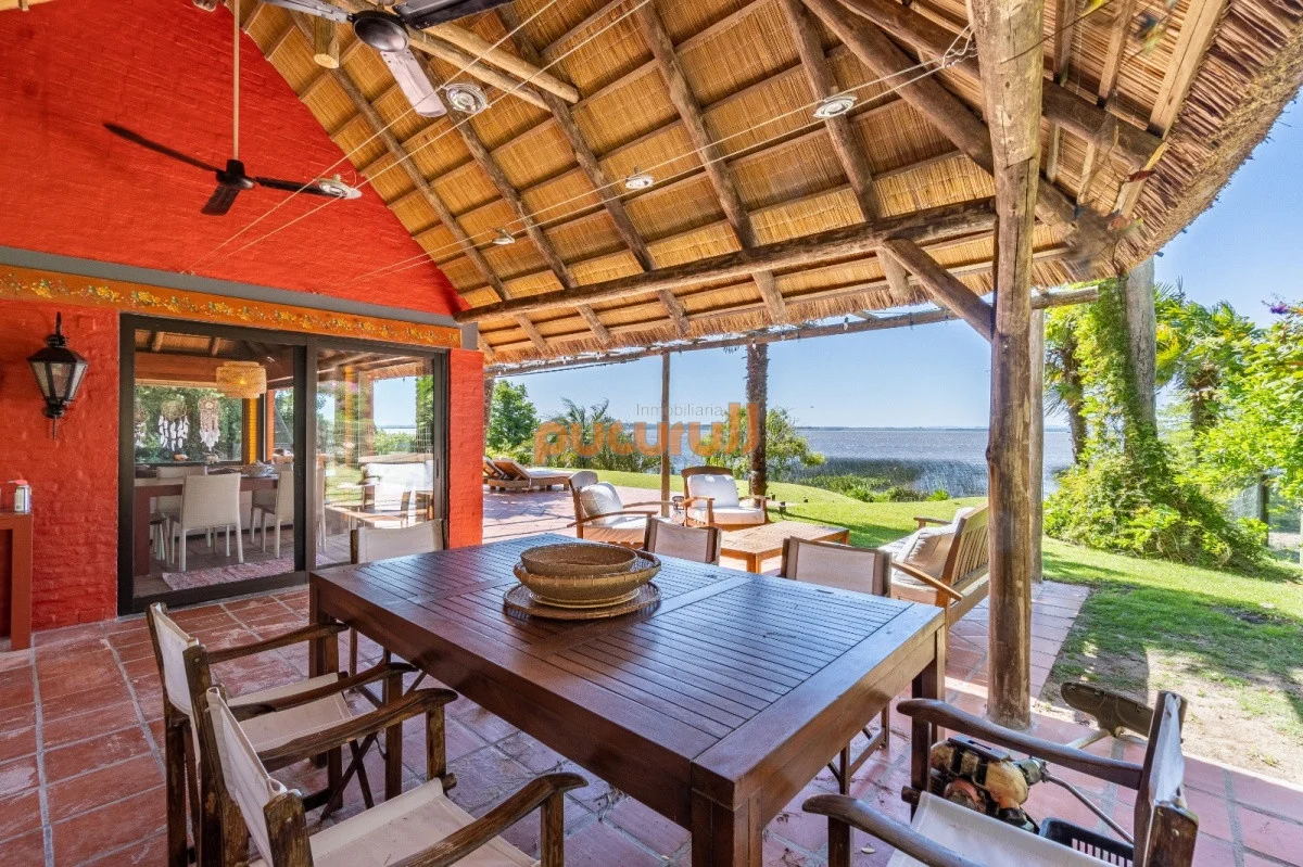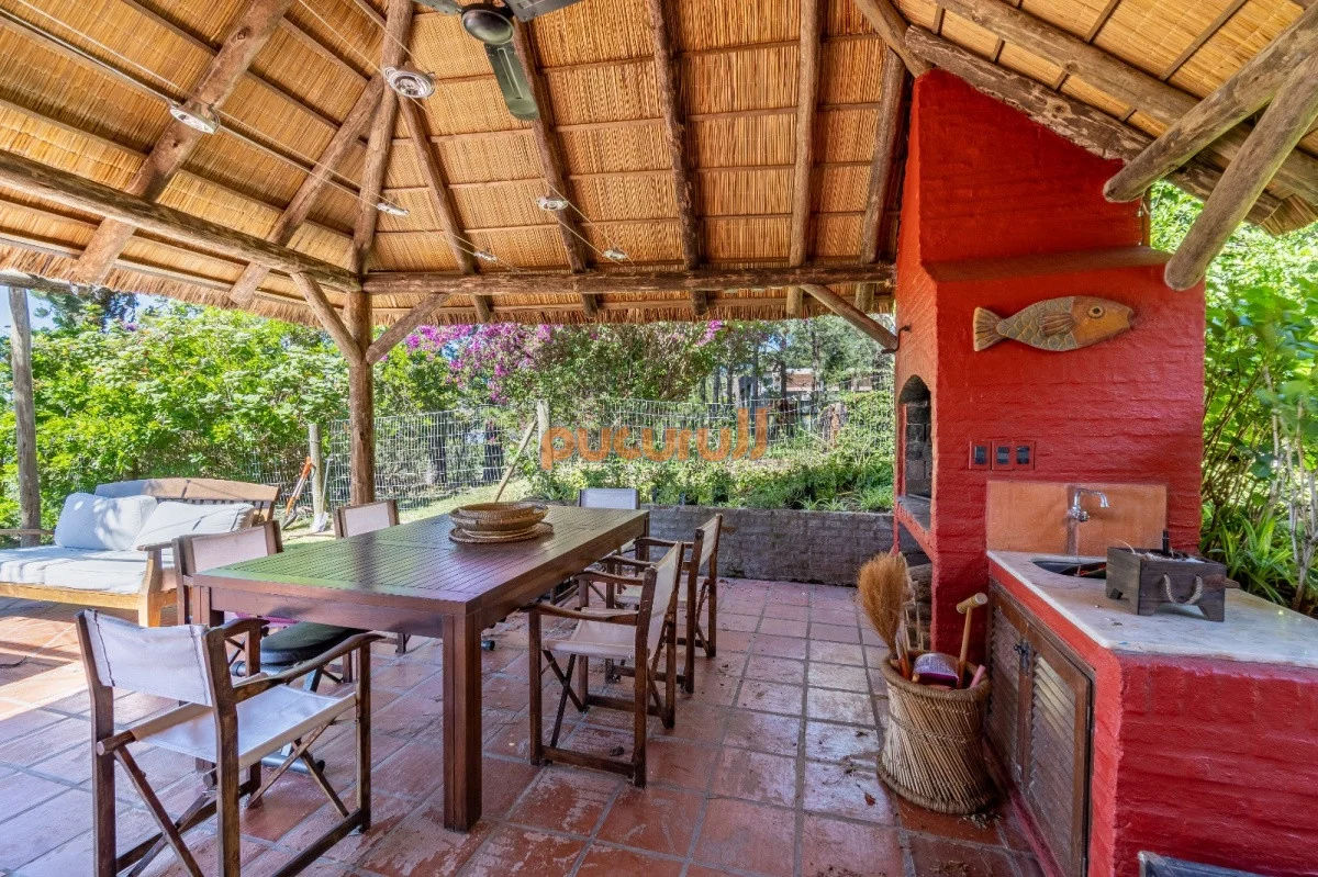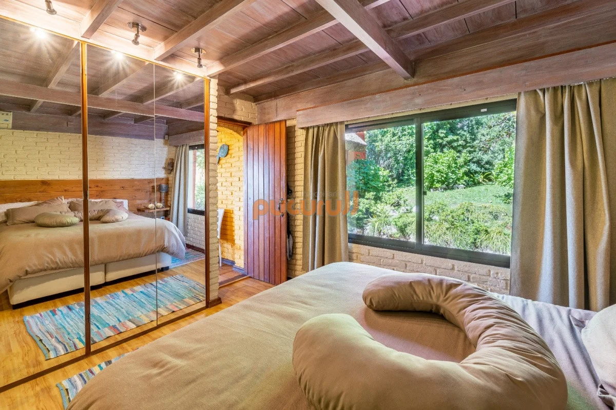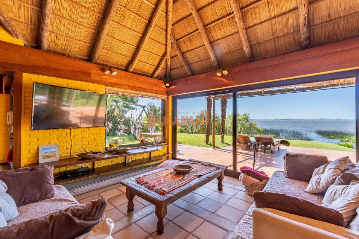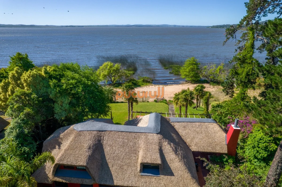 Directamente sobre la Laguna con playita! Preciosa cabaña. Muy bien equipada. Amplio living-comedor, galería con hermosa vista, 3 dormitorios, 2 baño (1 en suite). En planta alta: playroom +1 dormitorio +1 baño. Gran parrillero techado. Serv. Garaje
