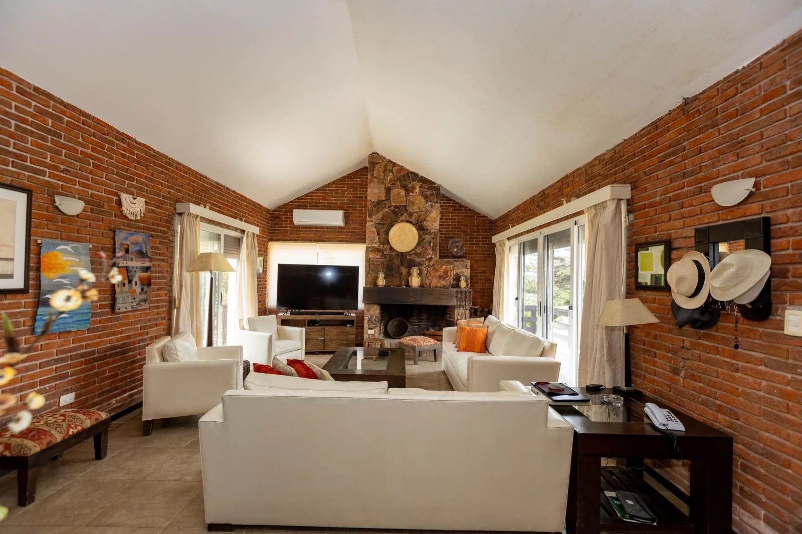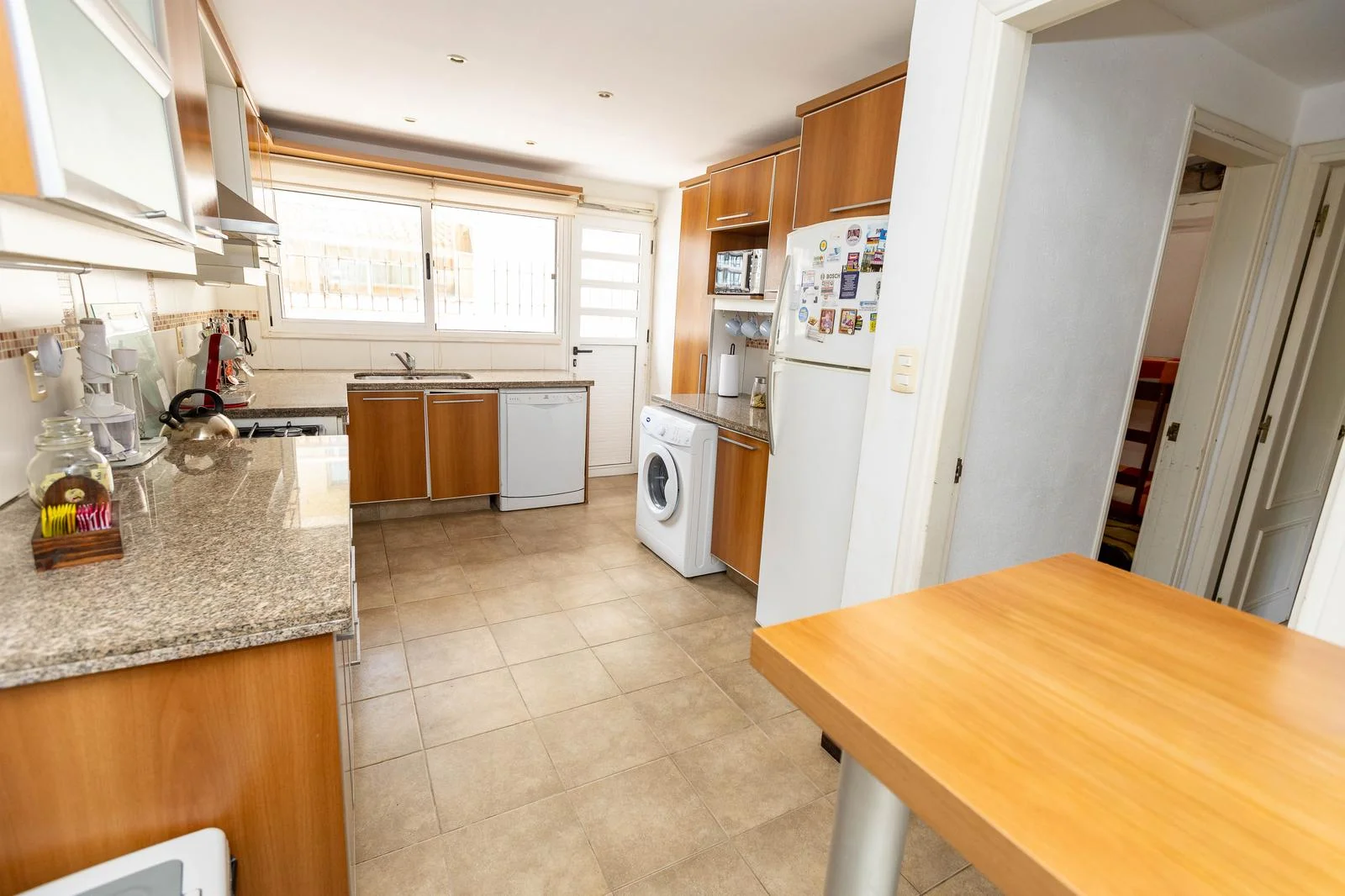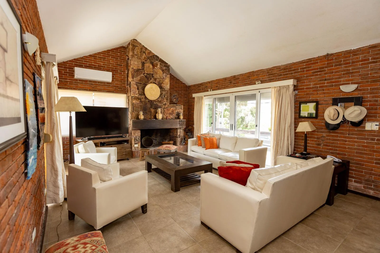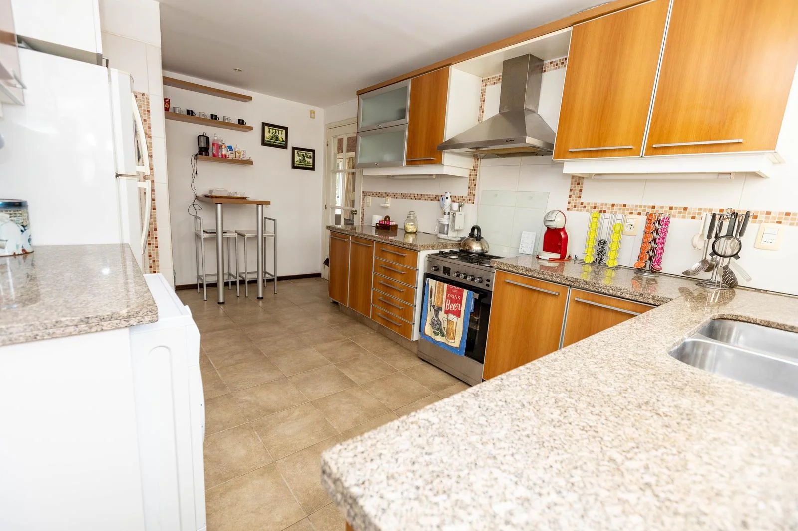 La casa ofrece un amplio y luminoso living con estufa a leña, ideal para disfrutar todo el año. Cuenta con comedor diario independiente y una cocina espaciosa, funcional y bien distribuida.