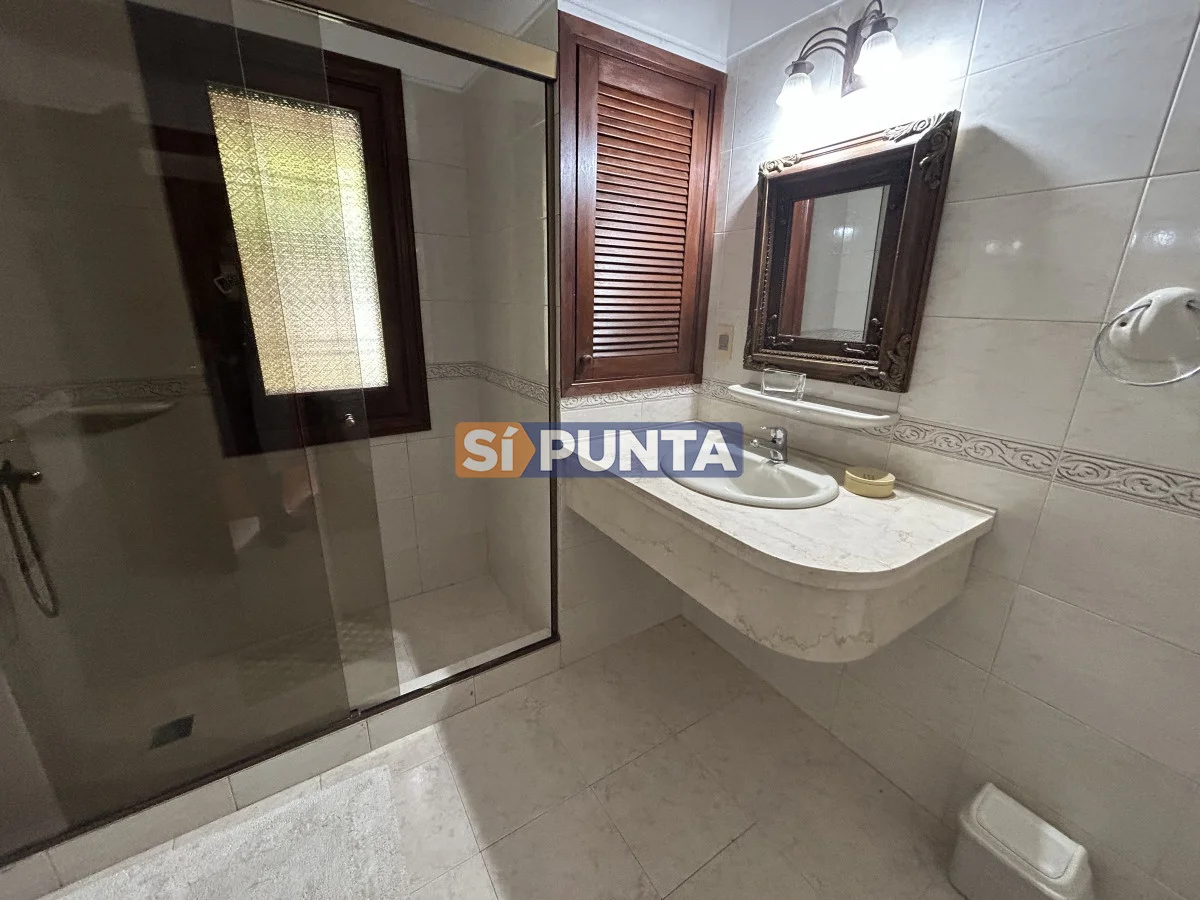 Casa en venta en Rincón del Indio, a tan solo unas cuadras de la playa, en una de las áreas más exclusivas de Punta del Este. Con una construcción de estilo tradicional, esta residencia ofrece comodidades modernas que incluyen calefacción por losa radiante y piscina