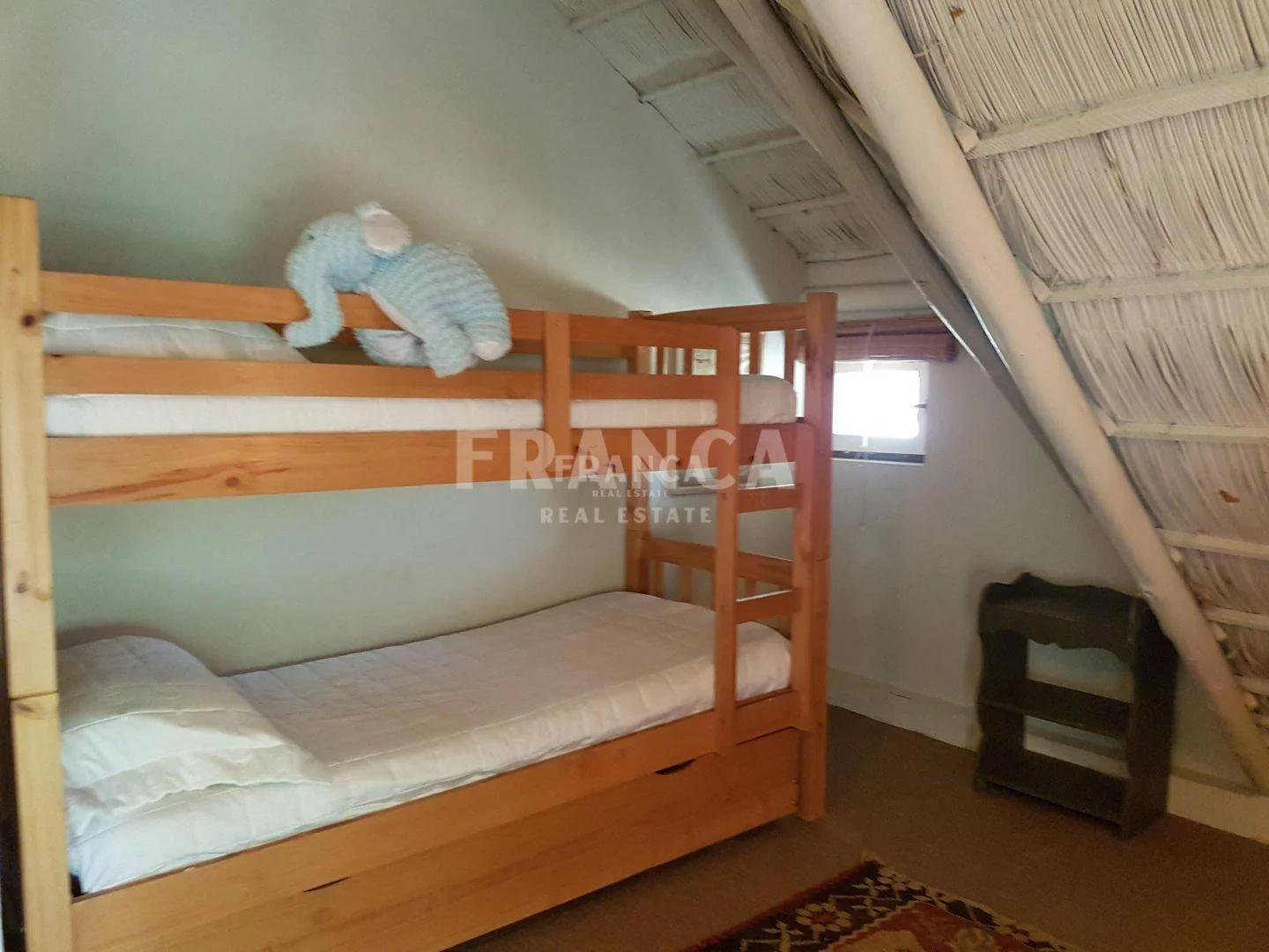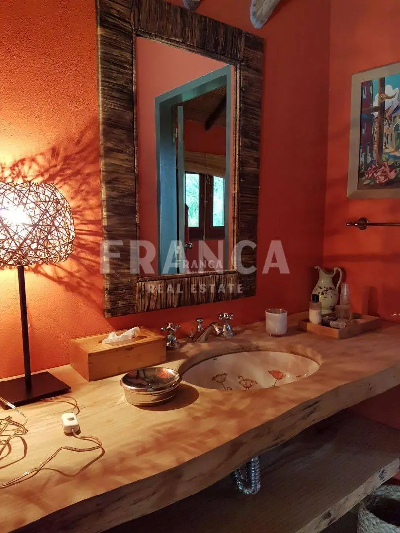 Esta casa rodeada de arboles y con un jardín encantador que la rodea consta de 3 dormitorios en planta alta , Abajo otro dormitorio con su baño. Y en otro bloque: dos dormitorios que comparten un baño.